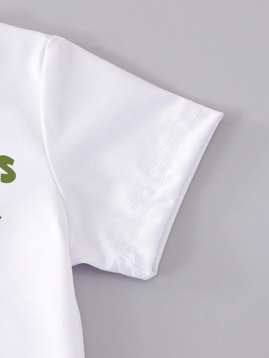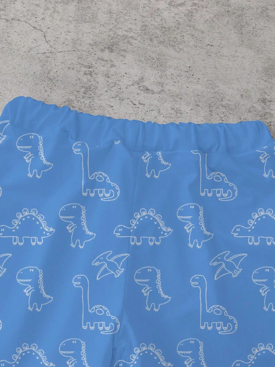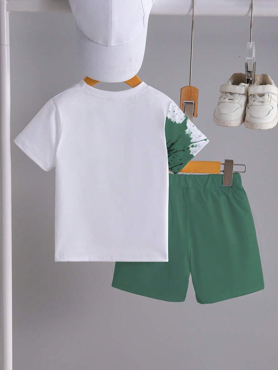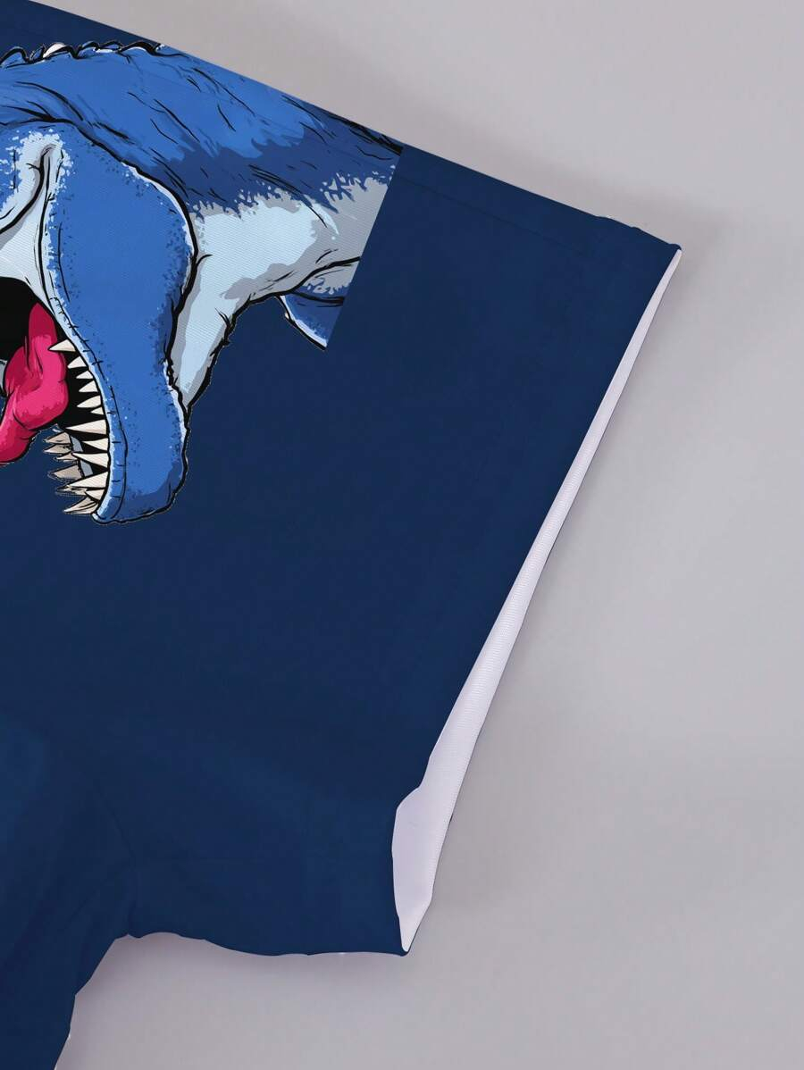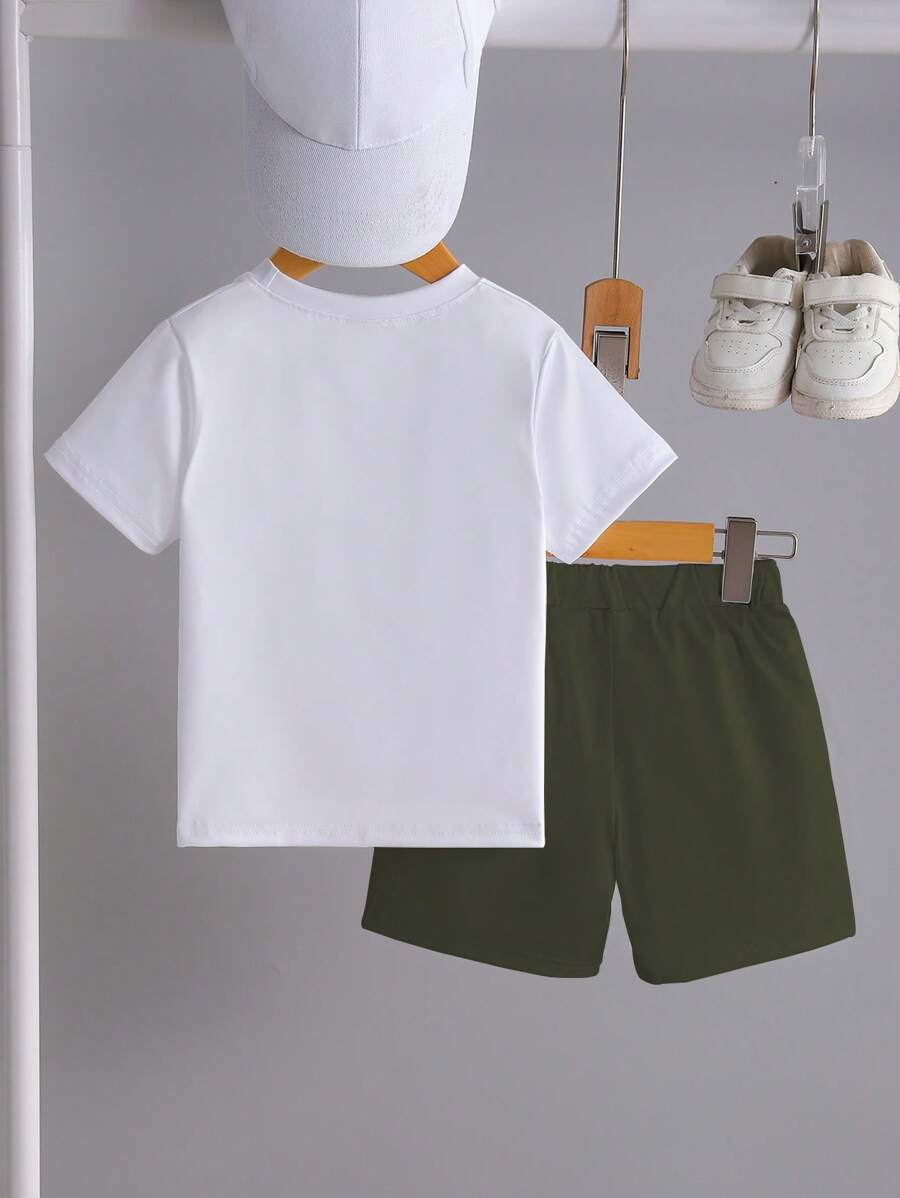 SHEIN 1 Set Toddler Boys Cartoon Dinosaur Print Short Sleeve T-Shirt And Shorts Set, Lightweight For Daily Wear, Suitable For Spring/Summer Dinosaur Clothes For Boys Summer Holiday YB00009