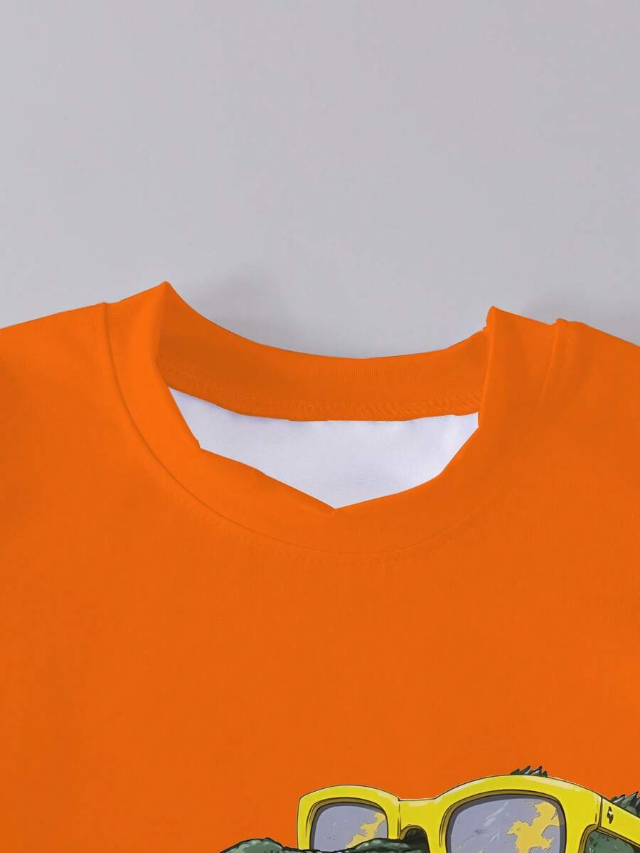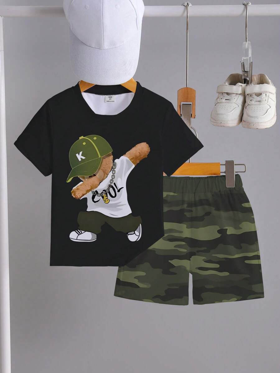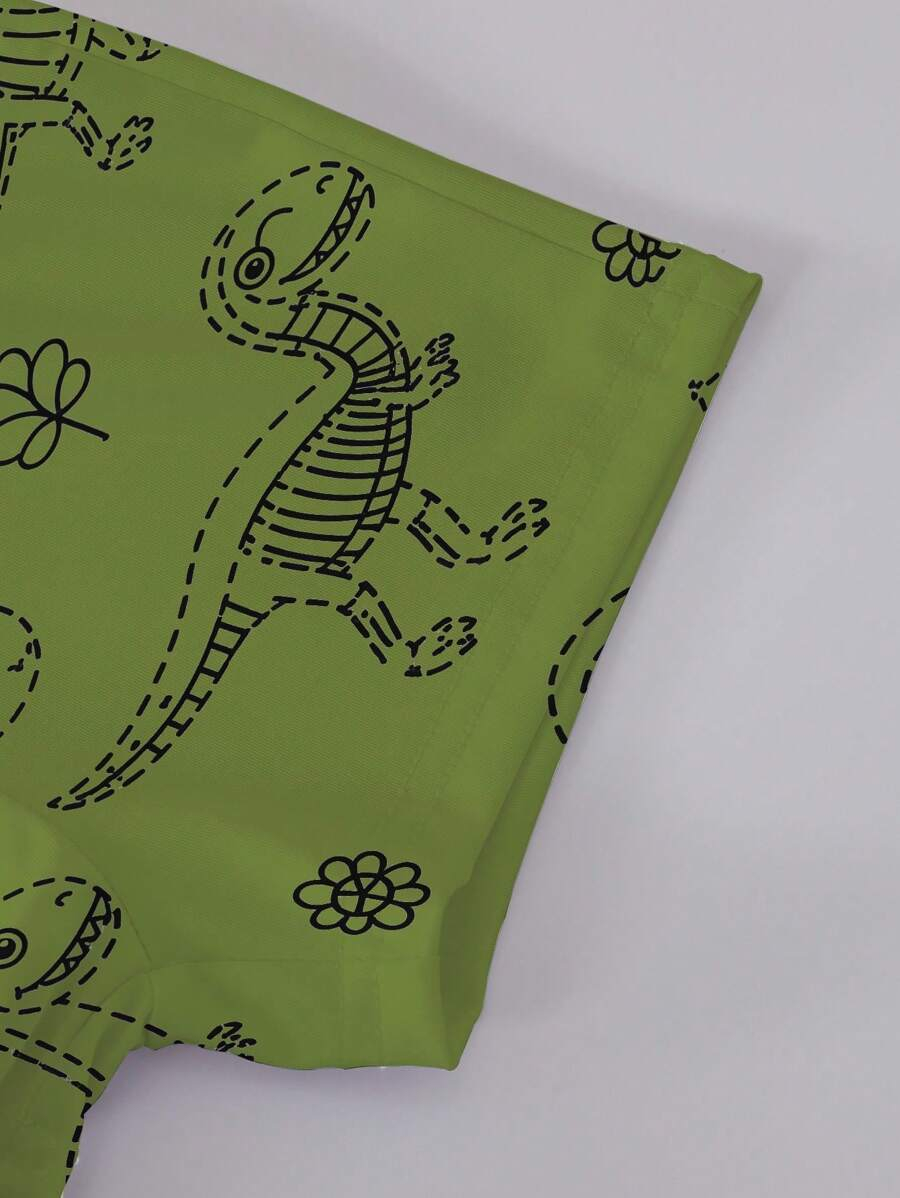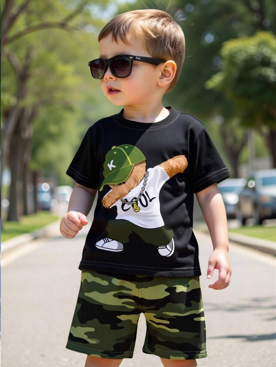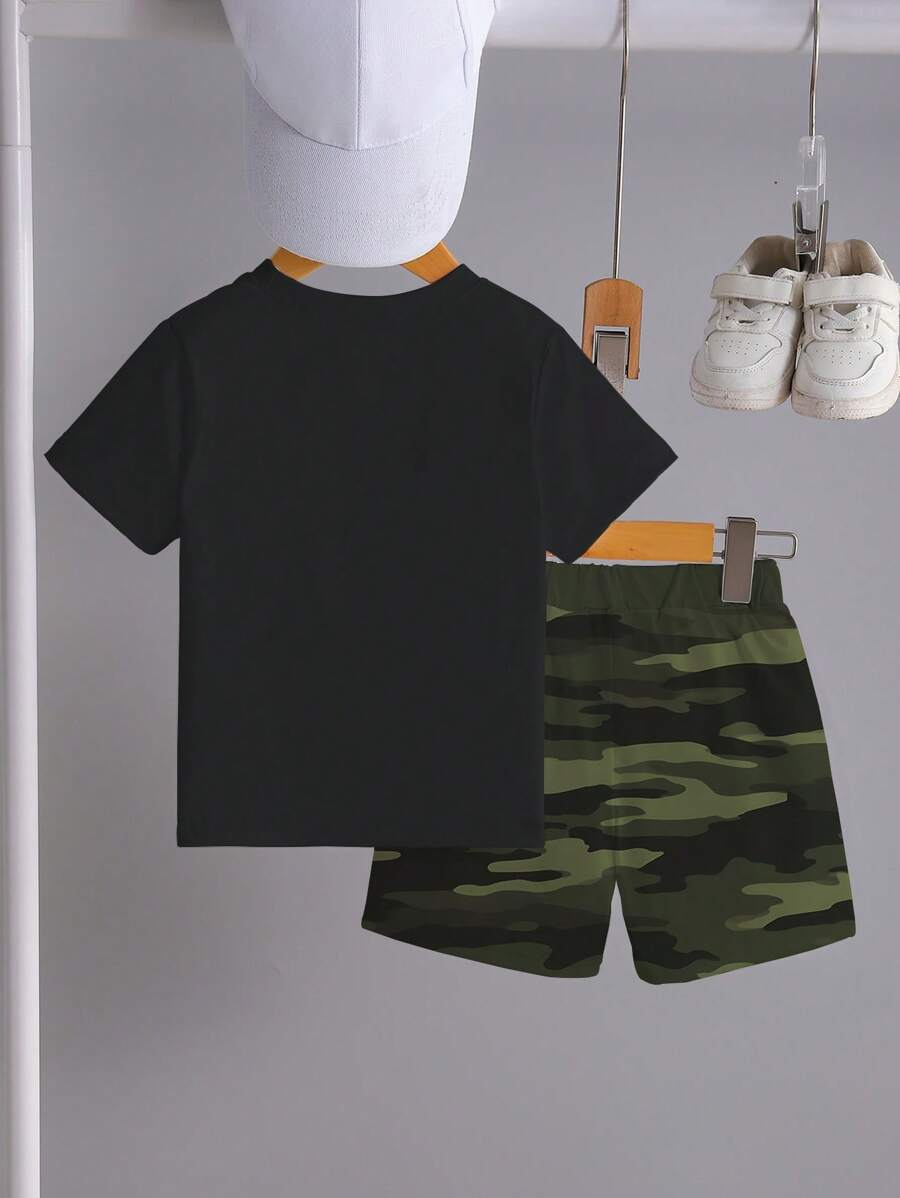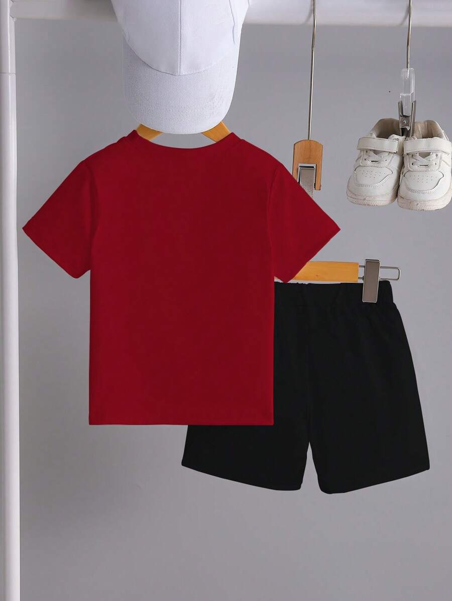 SHEIN 1 Set Toddler Boys Cartoon Dinosaur Print Short Sleeve T-Shirt And Shorts Set, Lightweight For Daily Wear, Suitable For Spring/Summer Dinosaur Clothes For Boys Summer Holiday YB00009