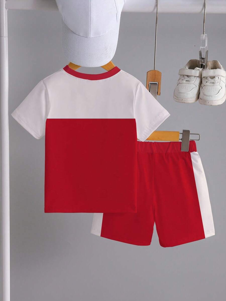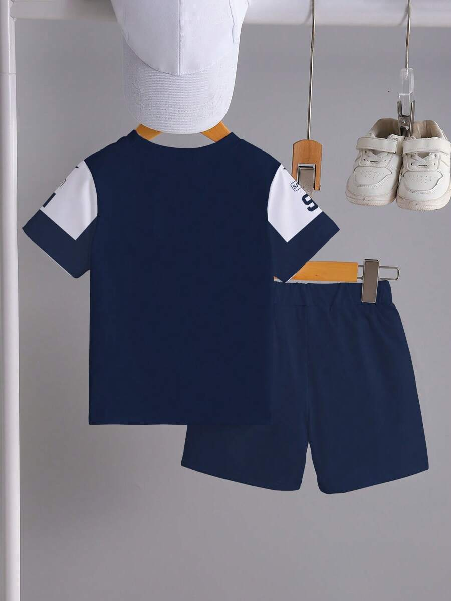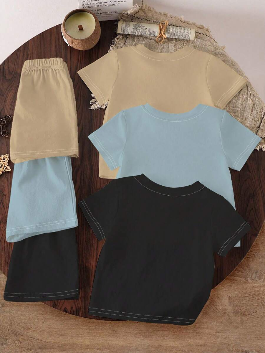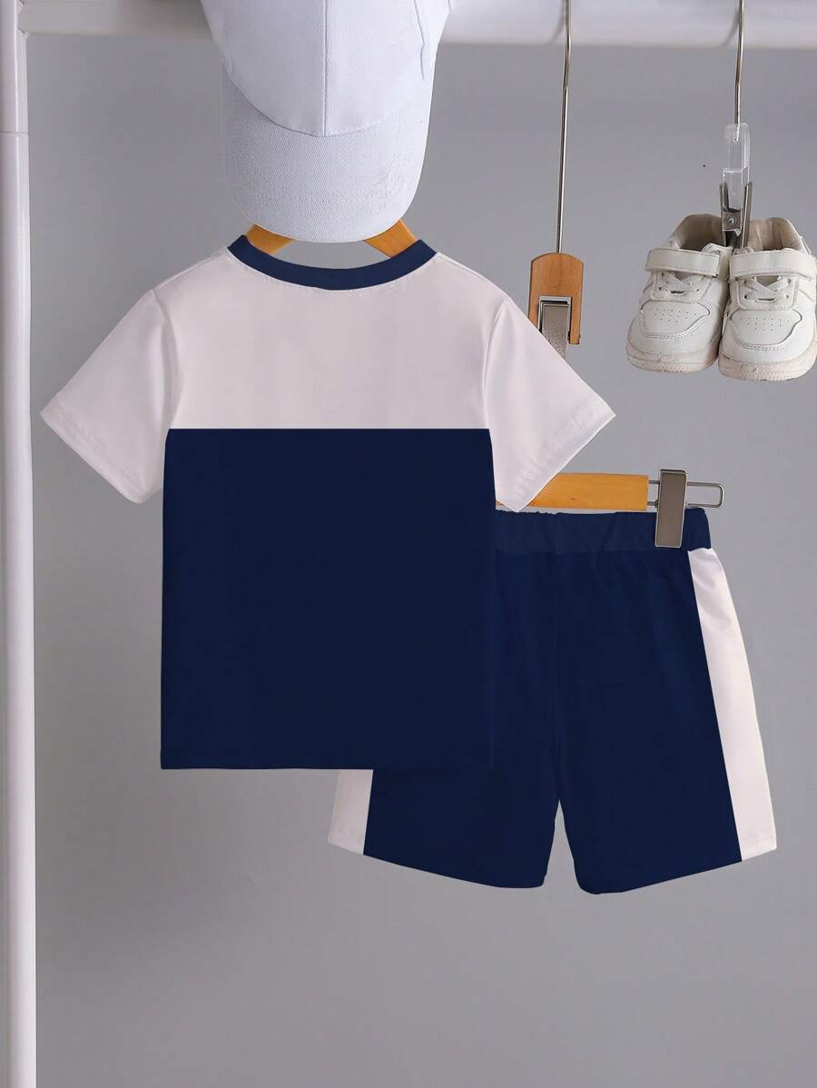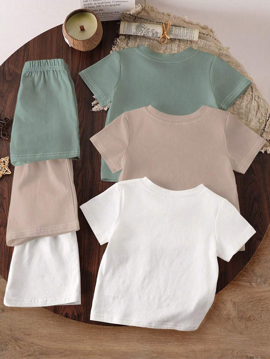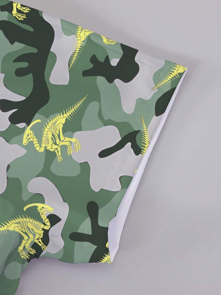 SHEIN 1 Set Toddler Boys Cartoon Dinosaur Print Short Sleeve T-Shirt And Shorts Set, Lightweight For Daily Wear, Suitable For Spring/Summer Dinosaur Clothes For Boys Summer Holiday YB00009