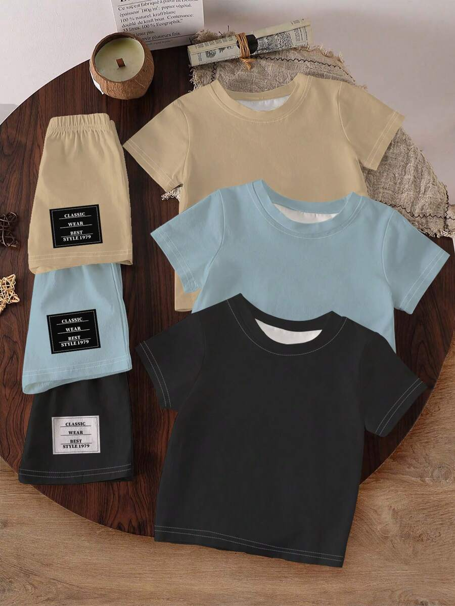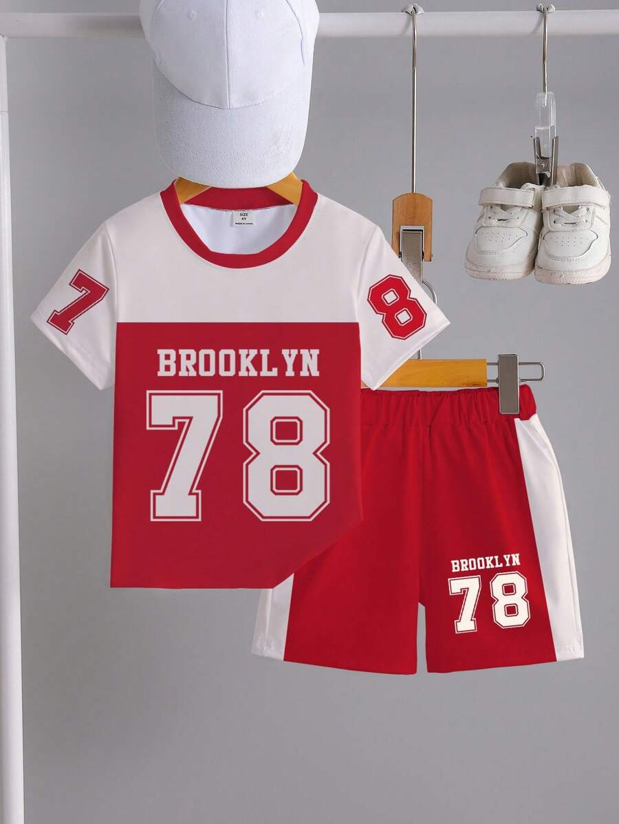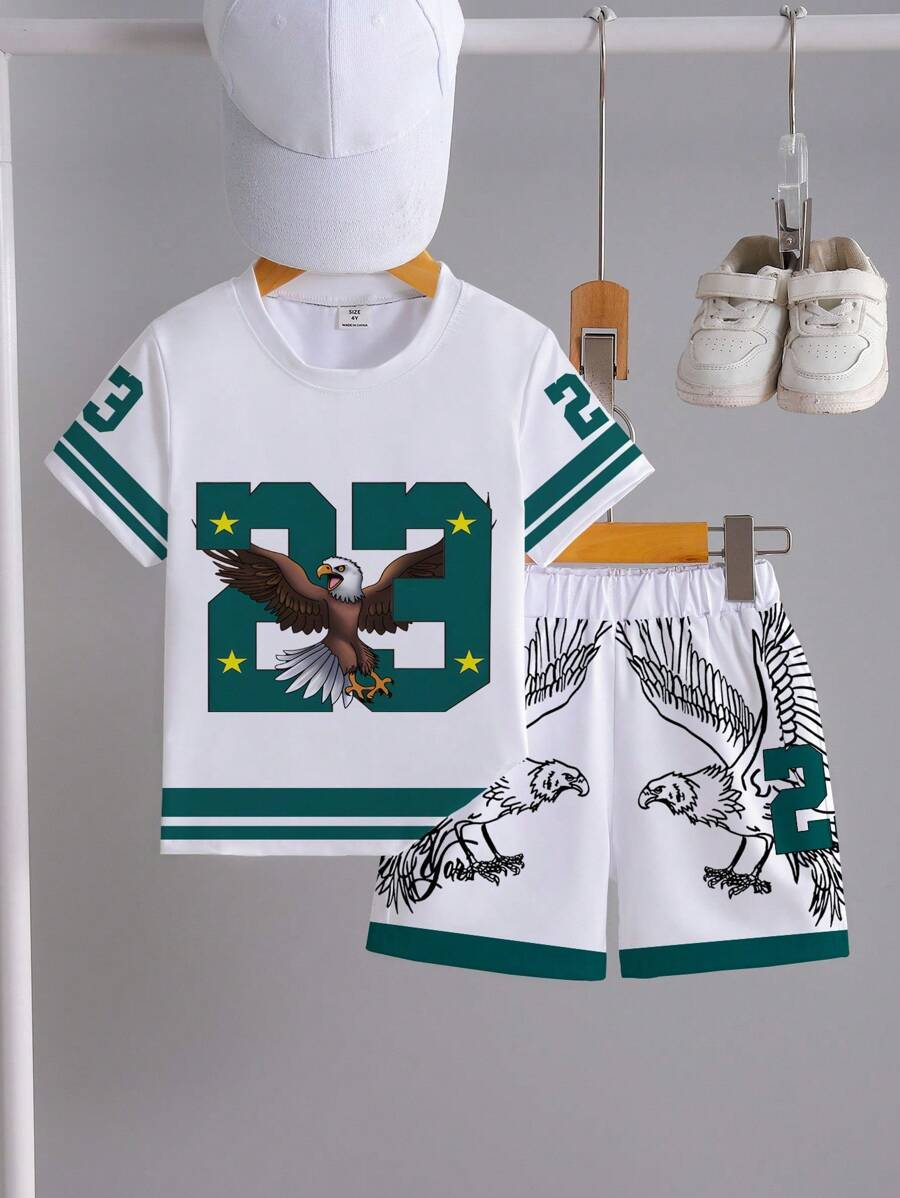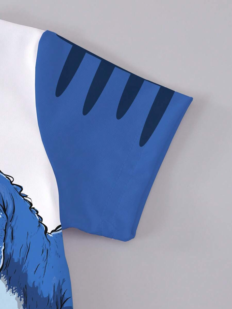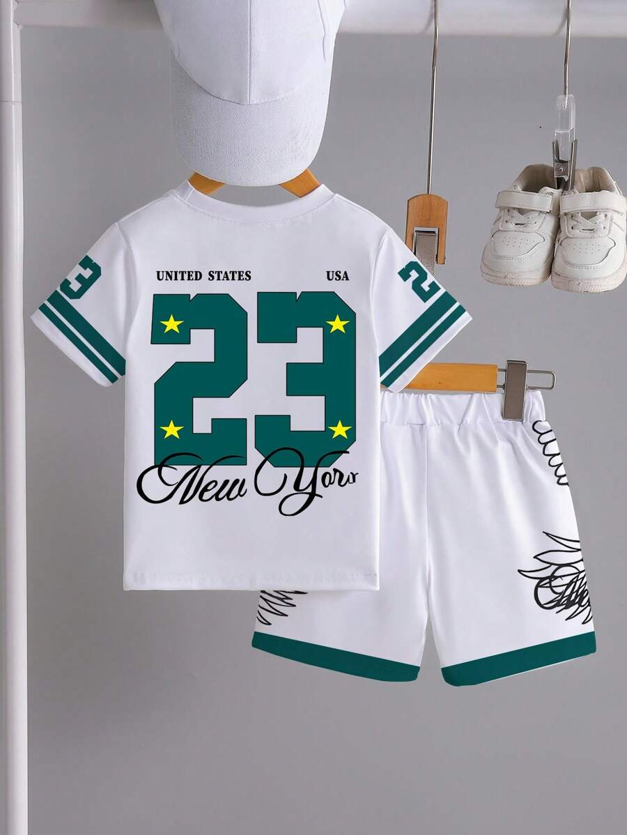 SHEIN 1 Set Toddler Boys Cartoon Dinosaur Print Short Sleeve T-Shirt And Shorts Set, Lightweight For Daily Wear, Suitable For Spring/Summer Dinosaur Clothes For Boys Summer Holiday YB00009