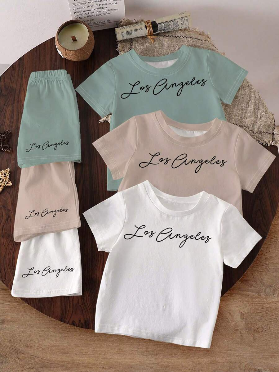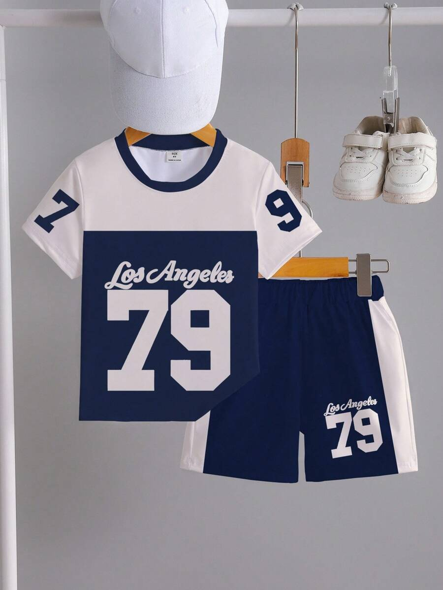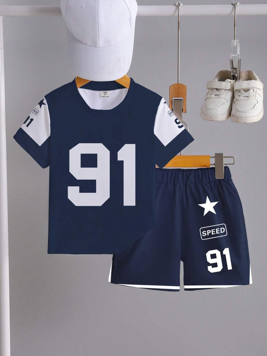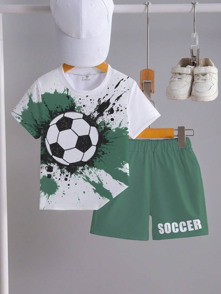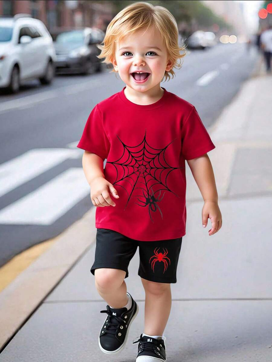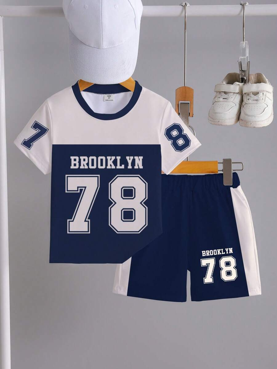 SHEIN 1 Set Toddler Boys Cartoon Dinosaur Print Short Sleeve T-Shirt And Shorts Set, Lightweight For Daily Wear, Suitable For Spring/Summer Dinosaur Clothes For Boys Summer Holiday YB00009