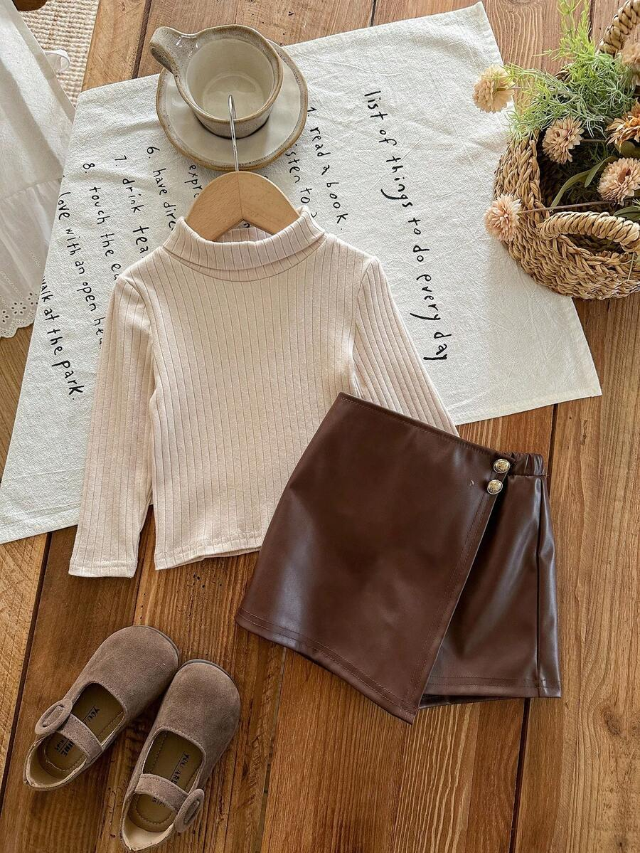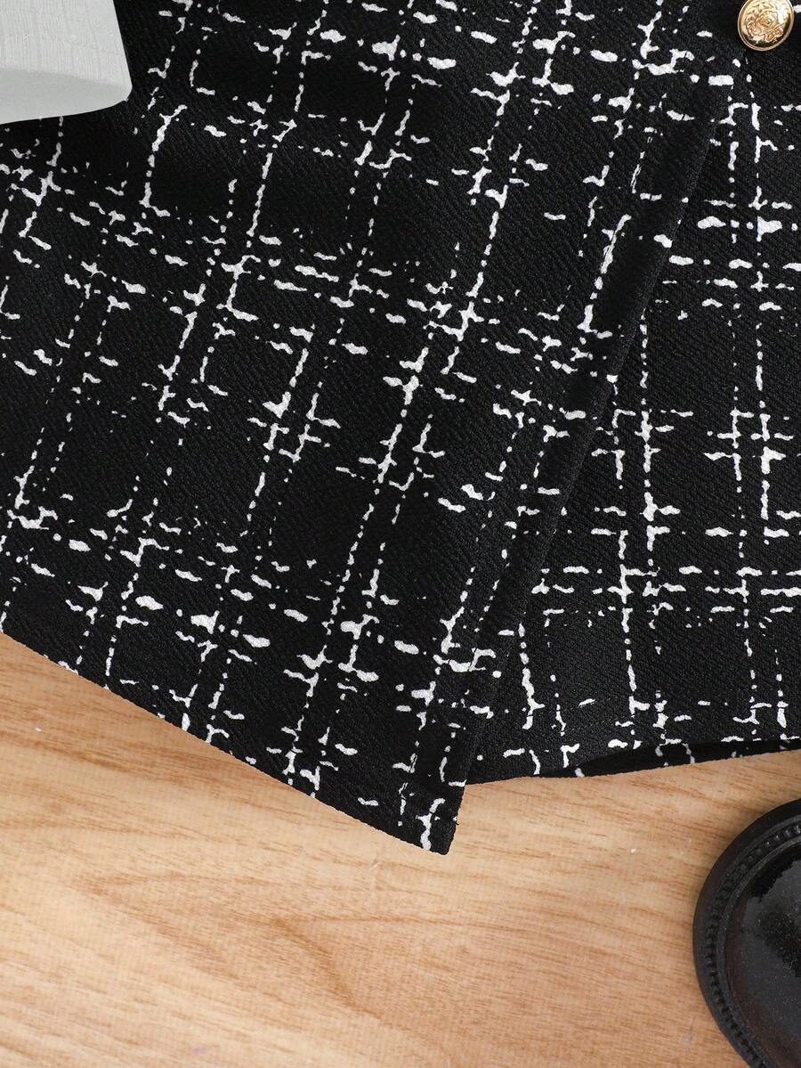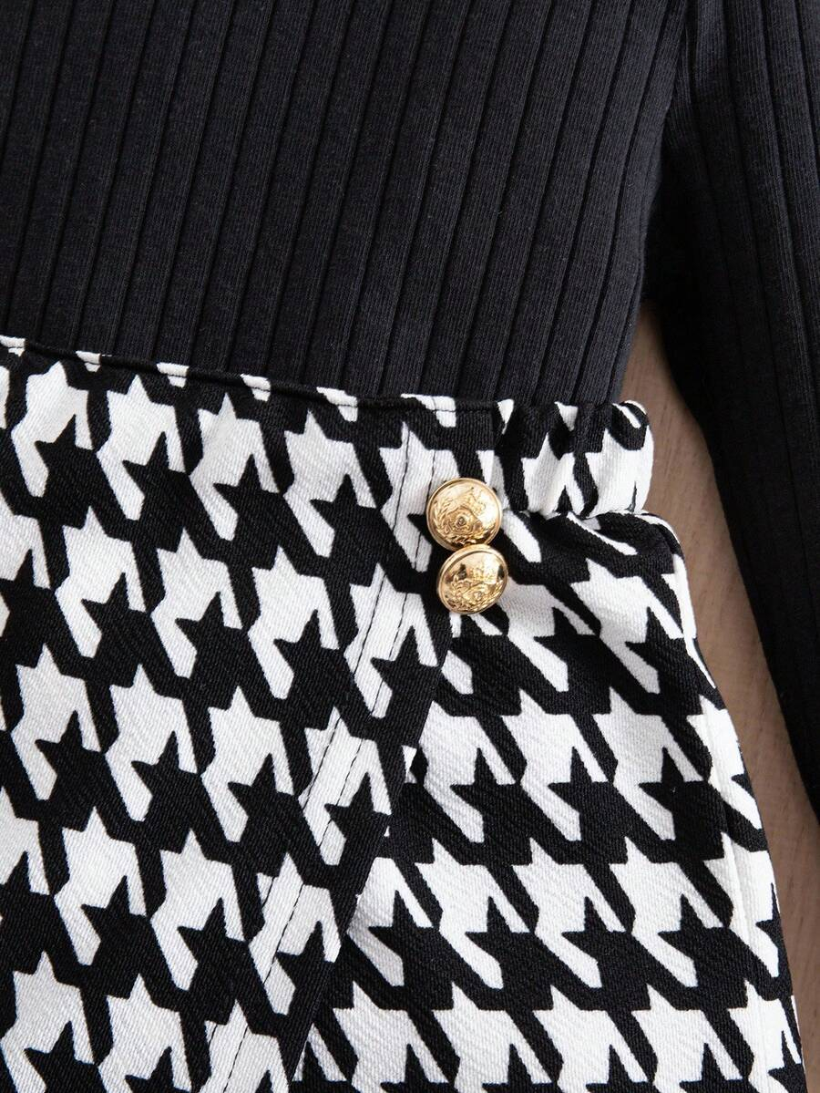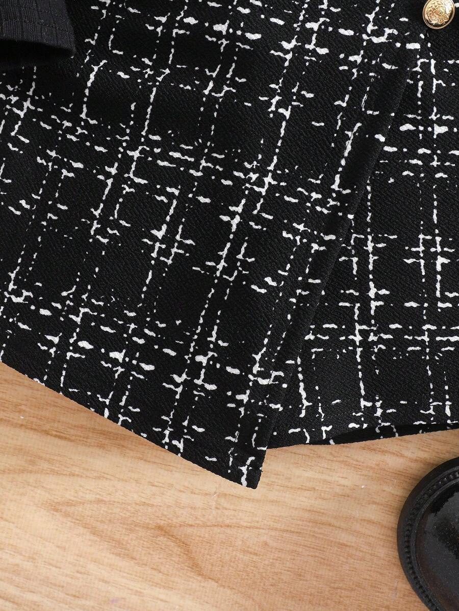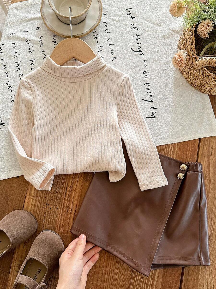 SHEIN 2pcs Baby Girl Knit Black Long Sleeve Shirt And Plaid Elastic Waist Shorts Set, Autumn/Winter WNTD0003