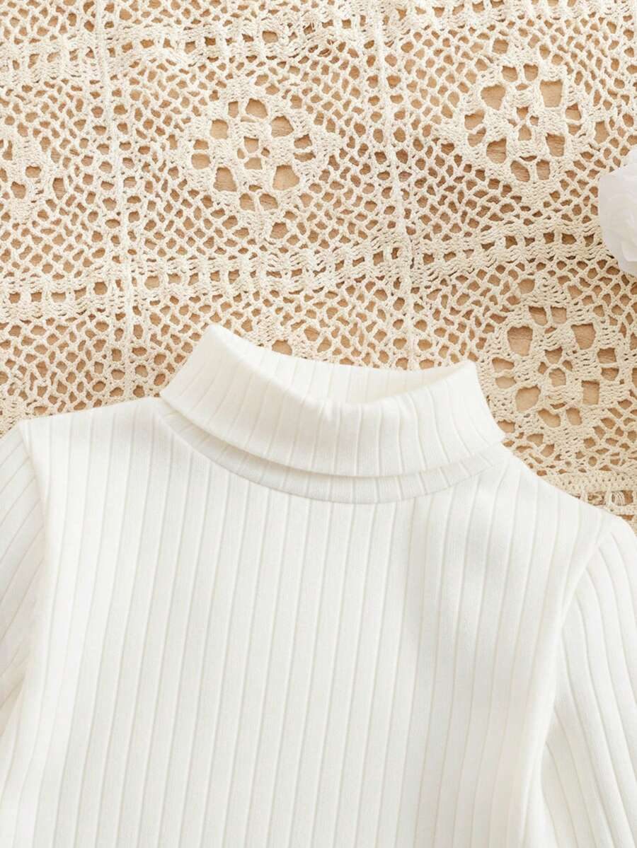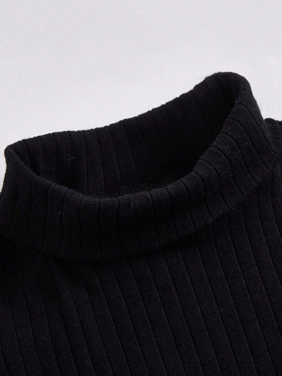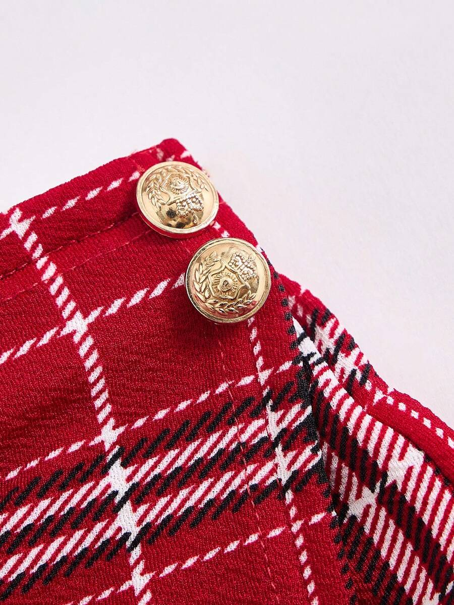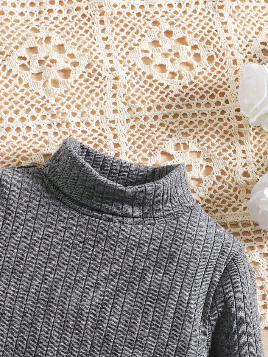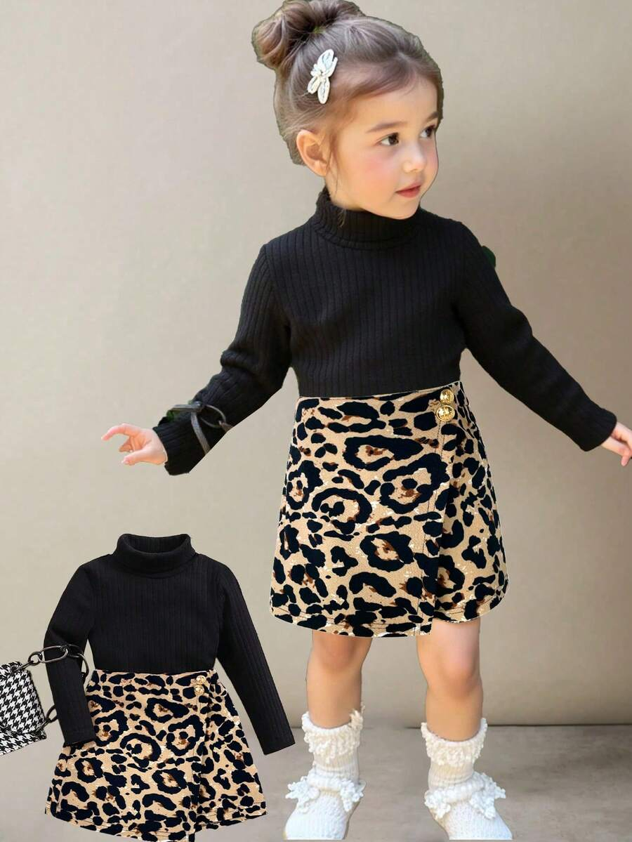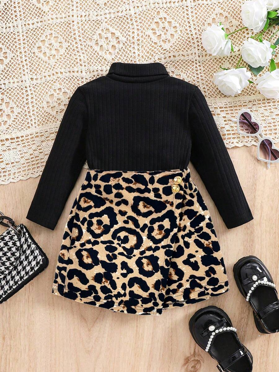 SHEIN 2pcs Baby Girl Knit Black Long Sleeve Shirt And Plaid Elastic Waist Shorts Set, Autumn/Winter WNTD0003