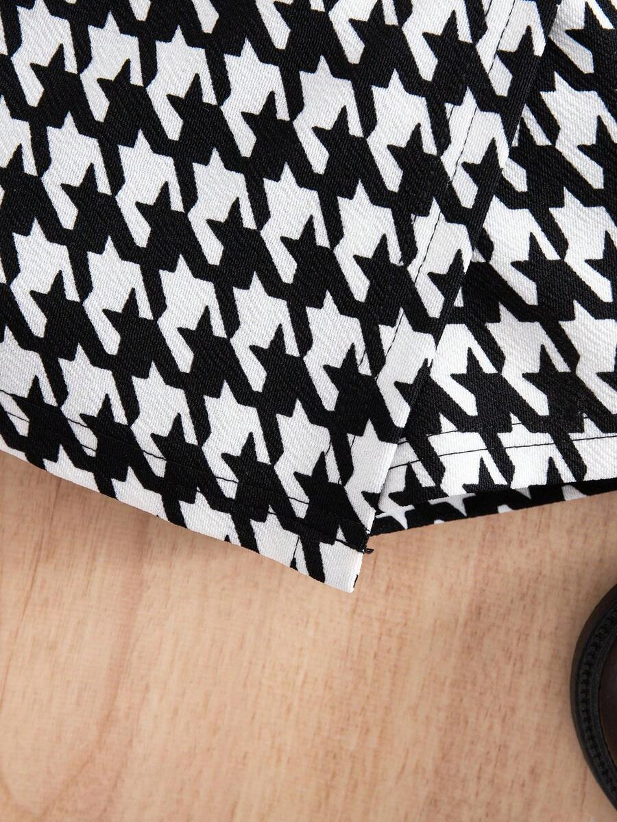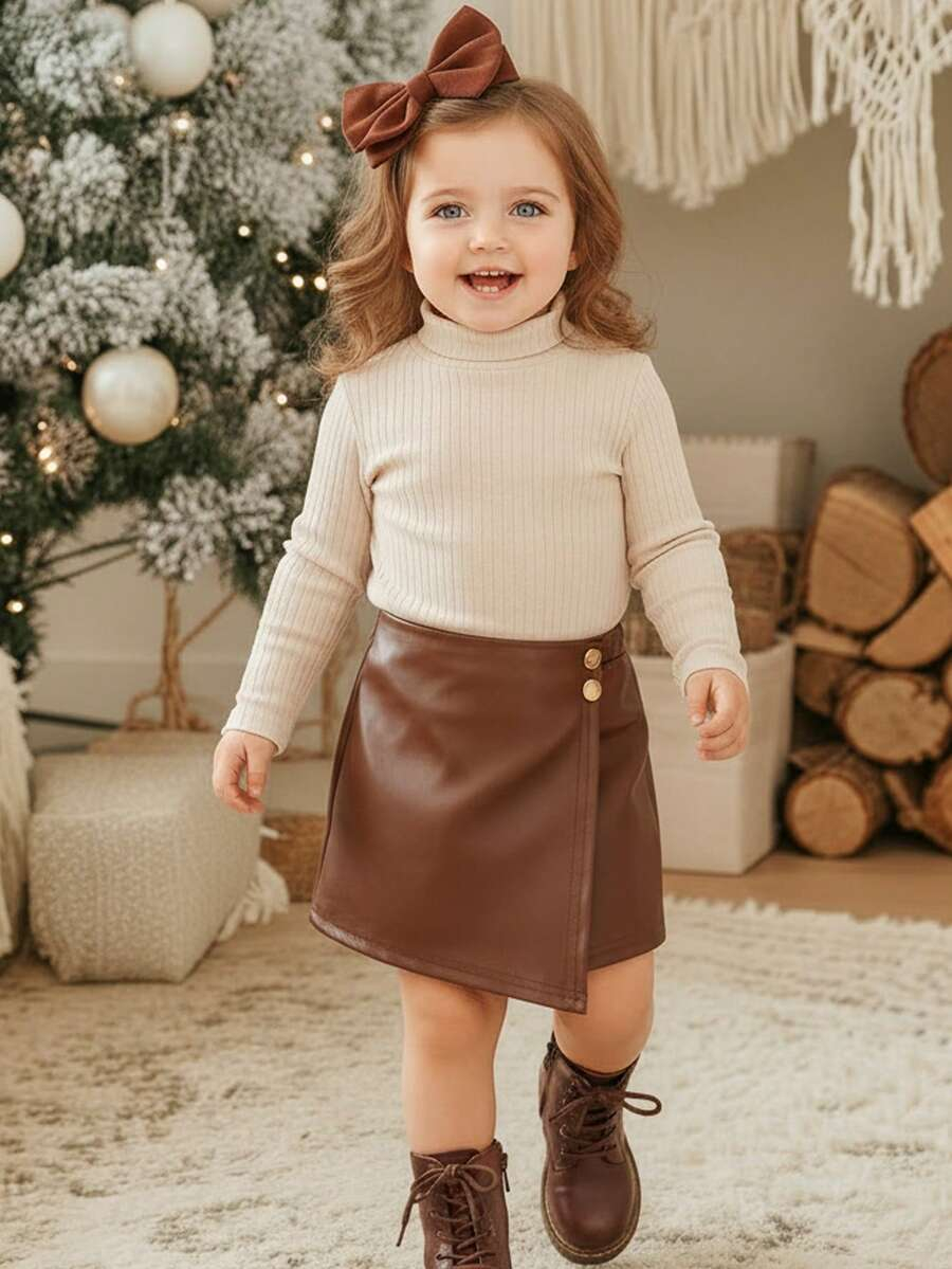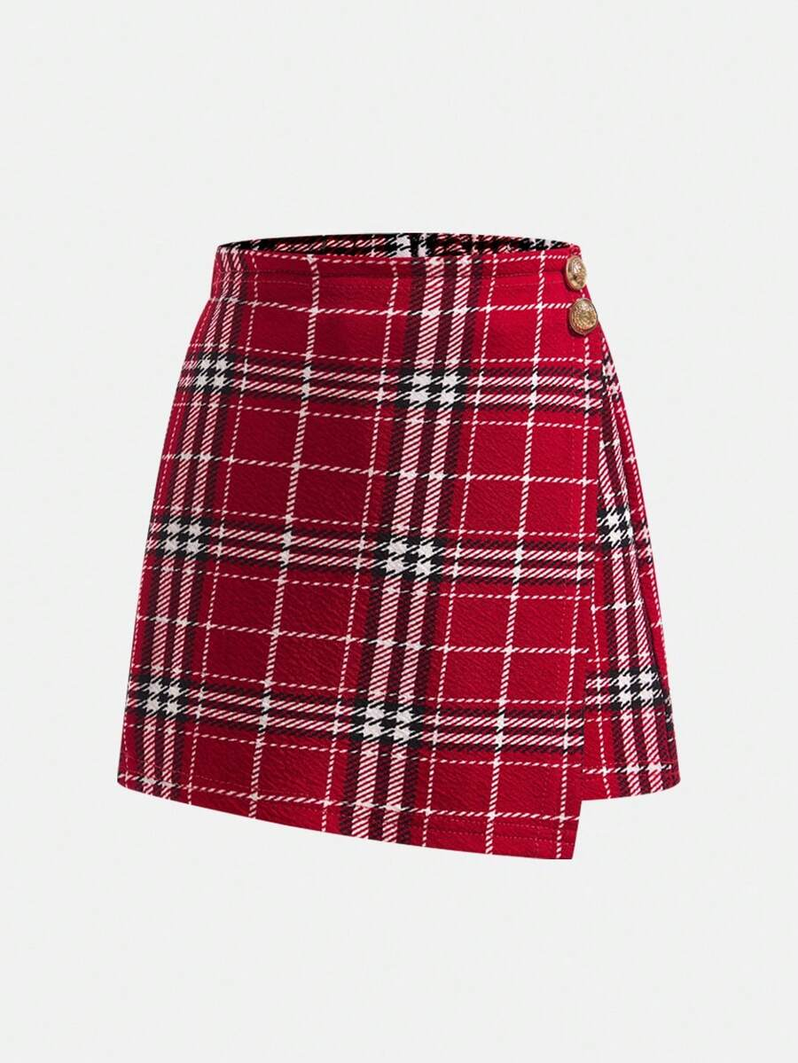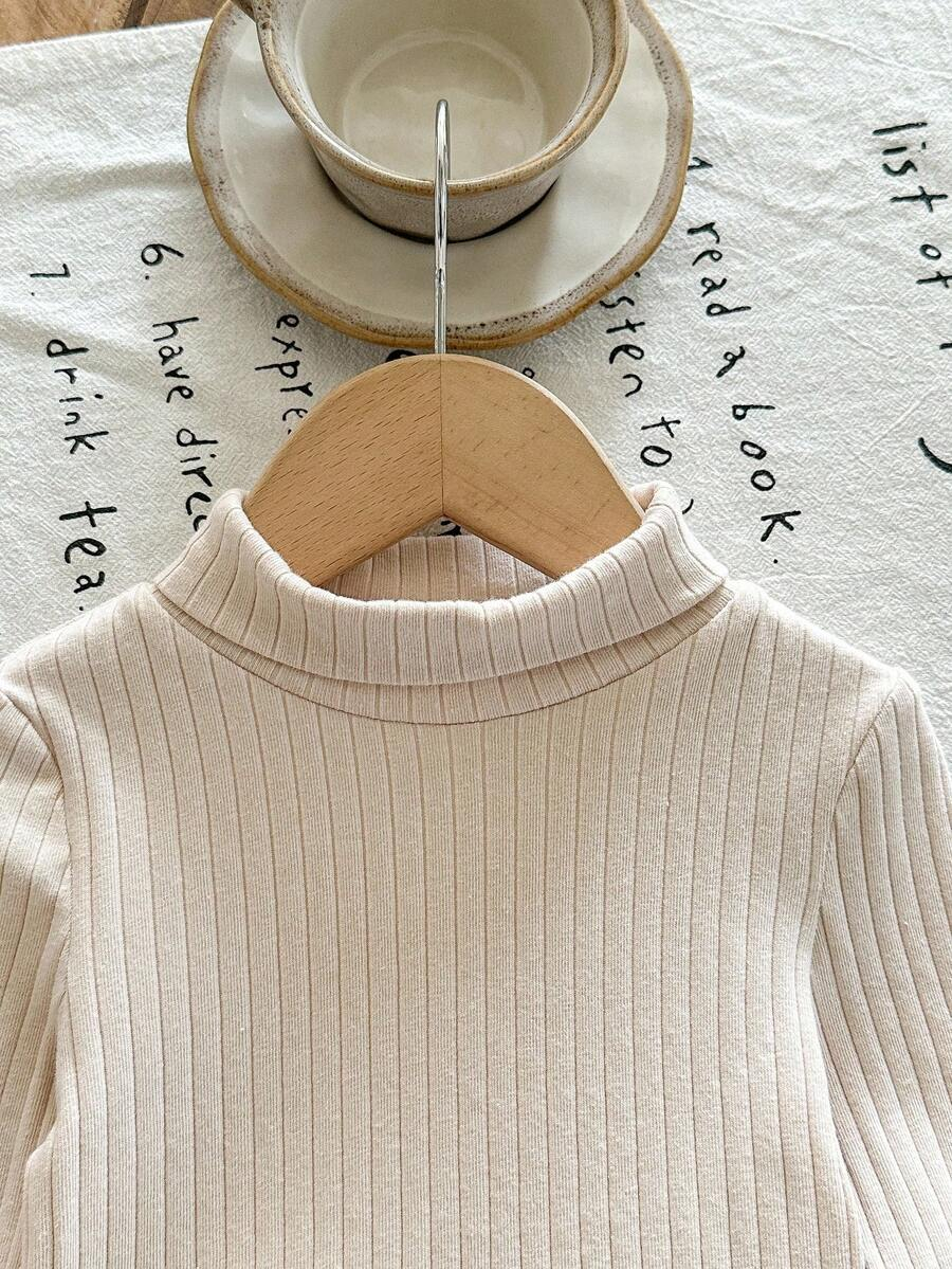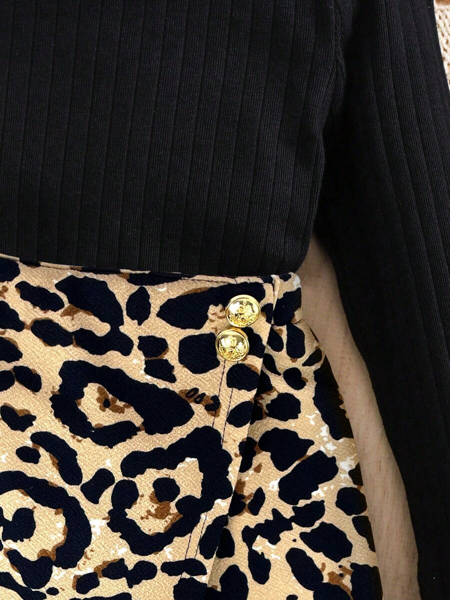 SHEIN 2pcs Baby Girl Knit Black Long Sleeve Shirt And Plaid Elastic Waist Shorts Set, Autumn/Winter WNTD0003