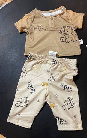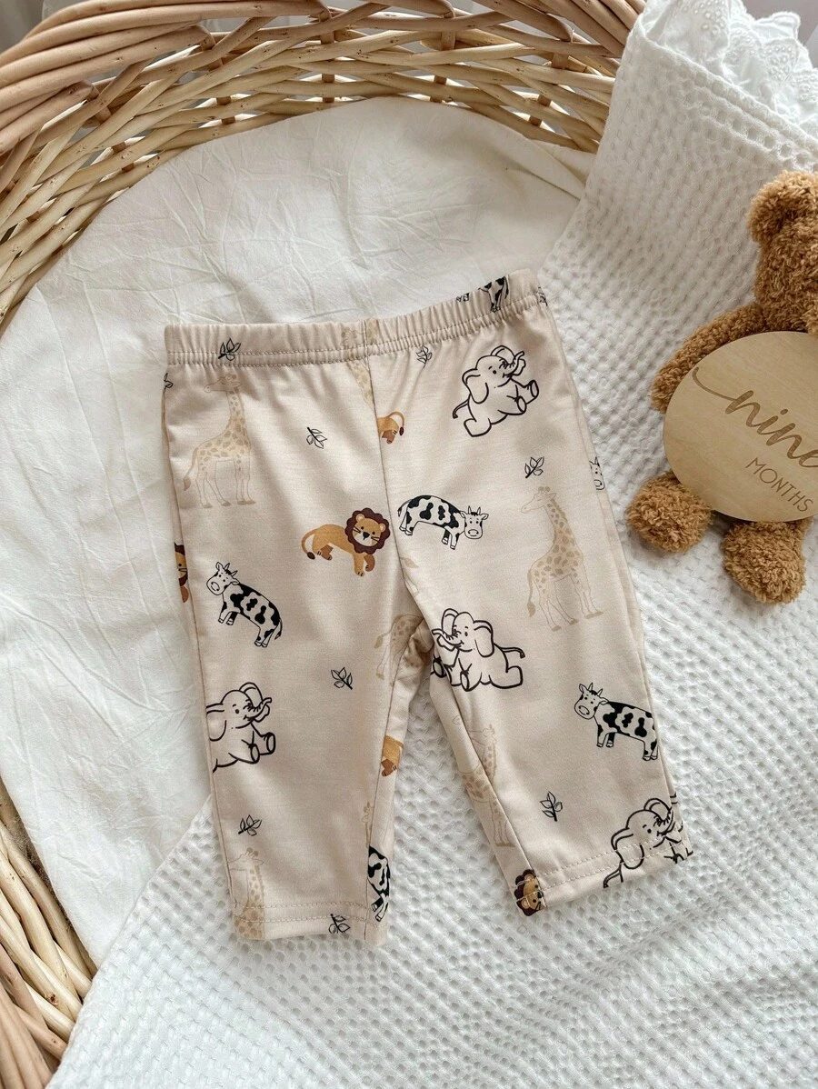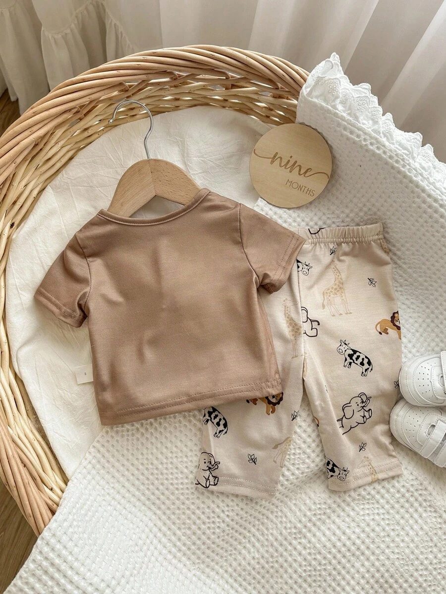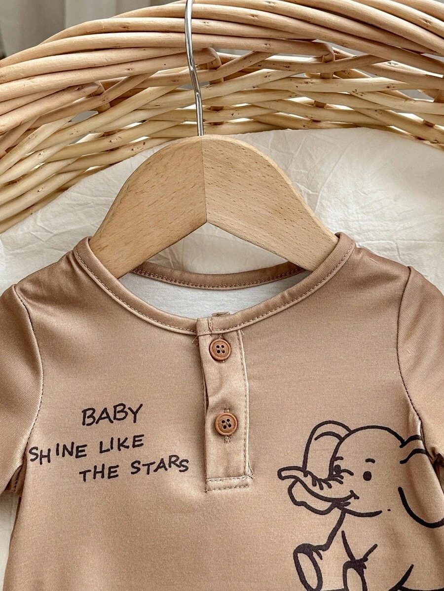 SHEIN 2pcs Newborn Baby Boy Cute Elephant Pattern Round Neck Front Open Short Sleeve Top And Shorts Soft Touch Pajama Set NB00079
