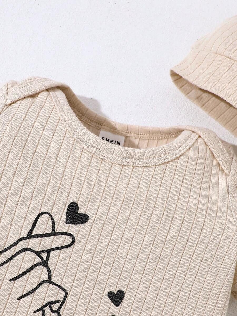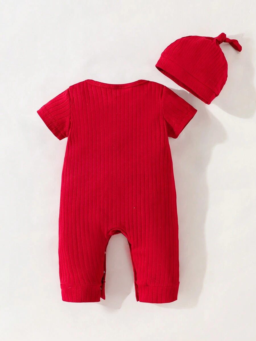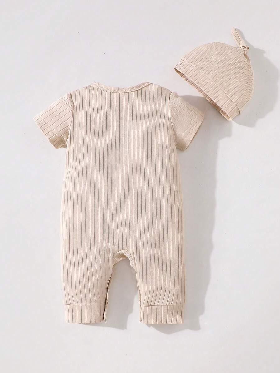 SHEIN 2pcs Newborn Infant Baby Boys Girls Casual Knitted Comfortable Letter Printed Solid Color Envelope Collar Short Sleeve Romper & Hat Set, Spring/Summer, Mother’s Day, Mother & Me Unisex Baby Clothes Neutral New Born Unisex Clothes Newborn Baby Clothing Unisex Newborn Clothing Baby Unisex Clothes NB00086