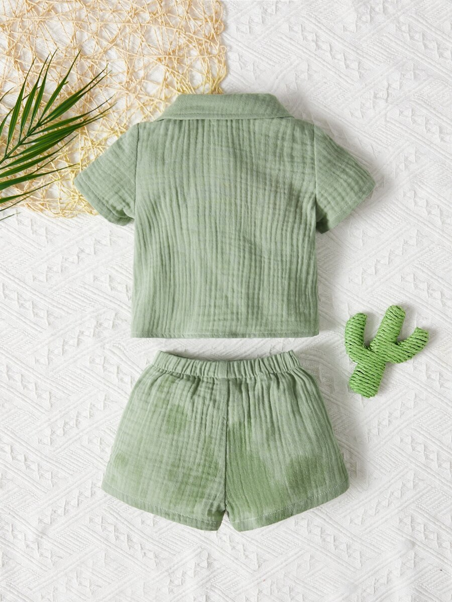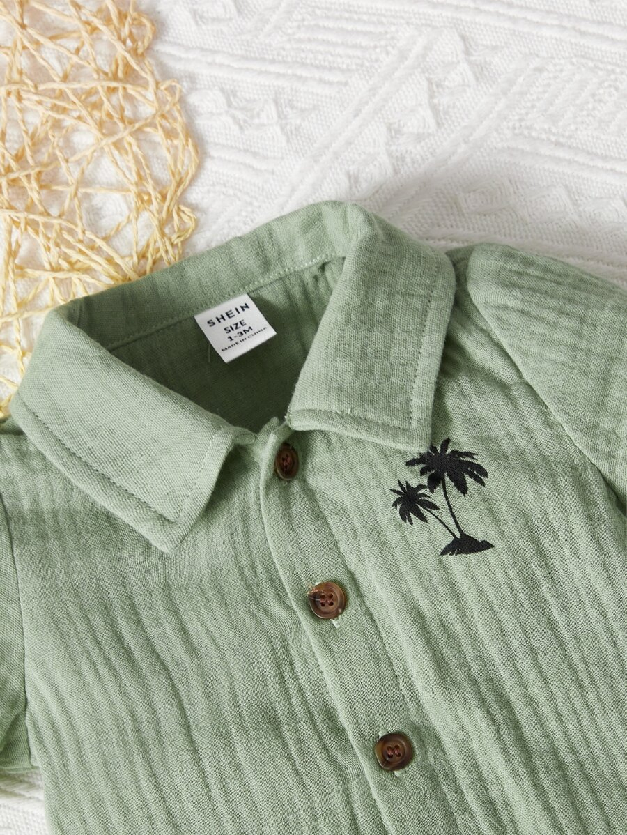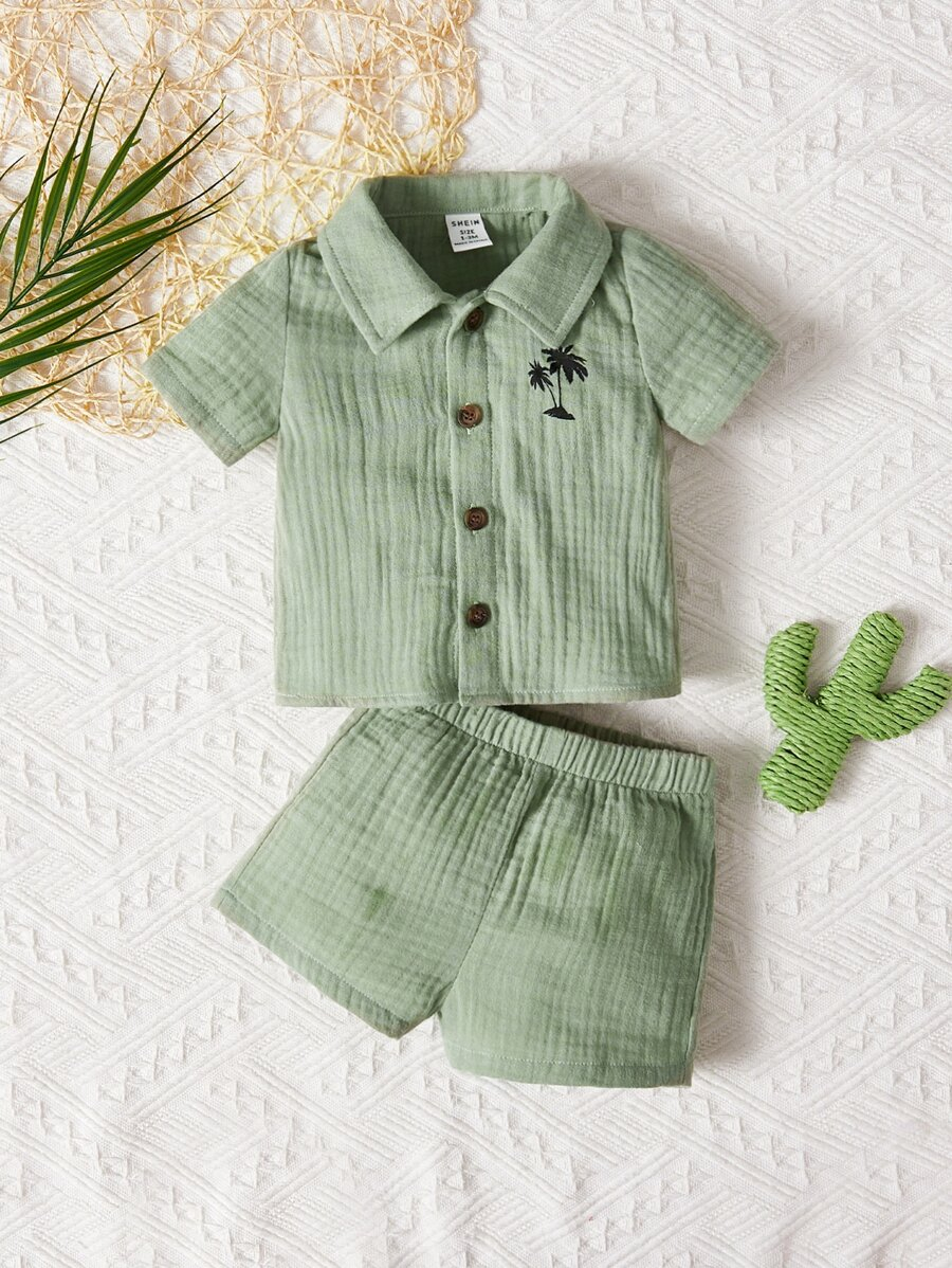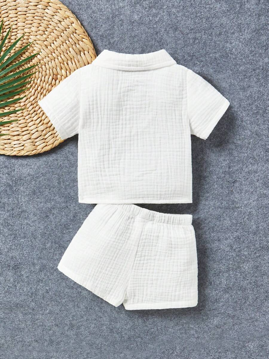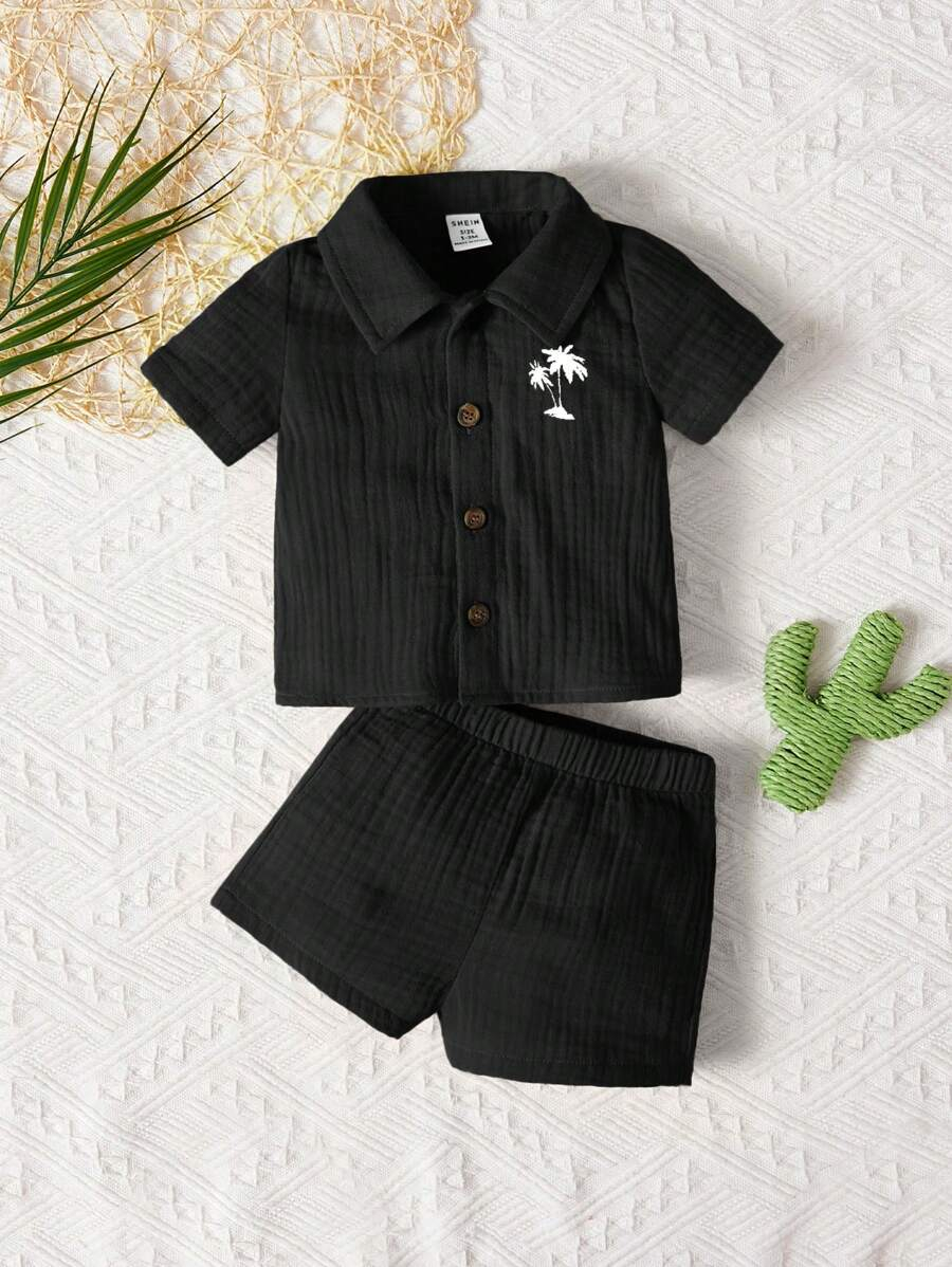 SHEIN 2pcs/Set Newborn Baby Boy/Girl Casual Vacation Shirt And Shorts Set NB00095