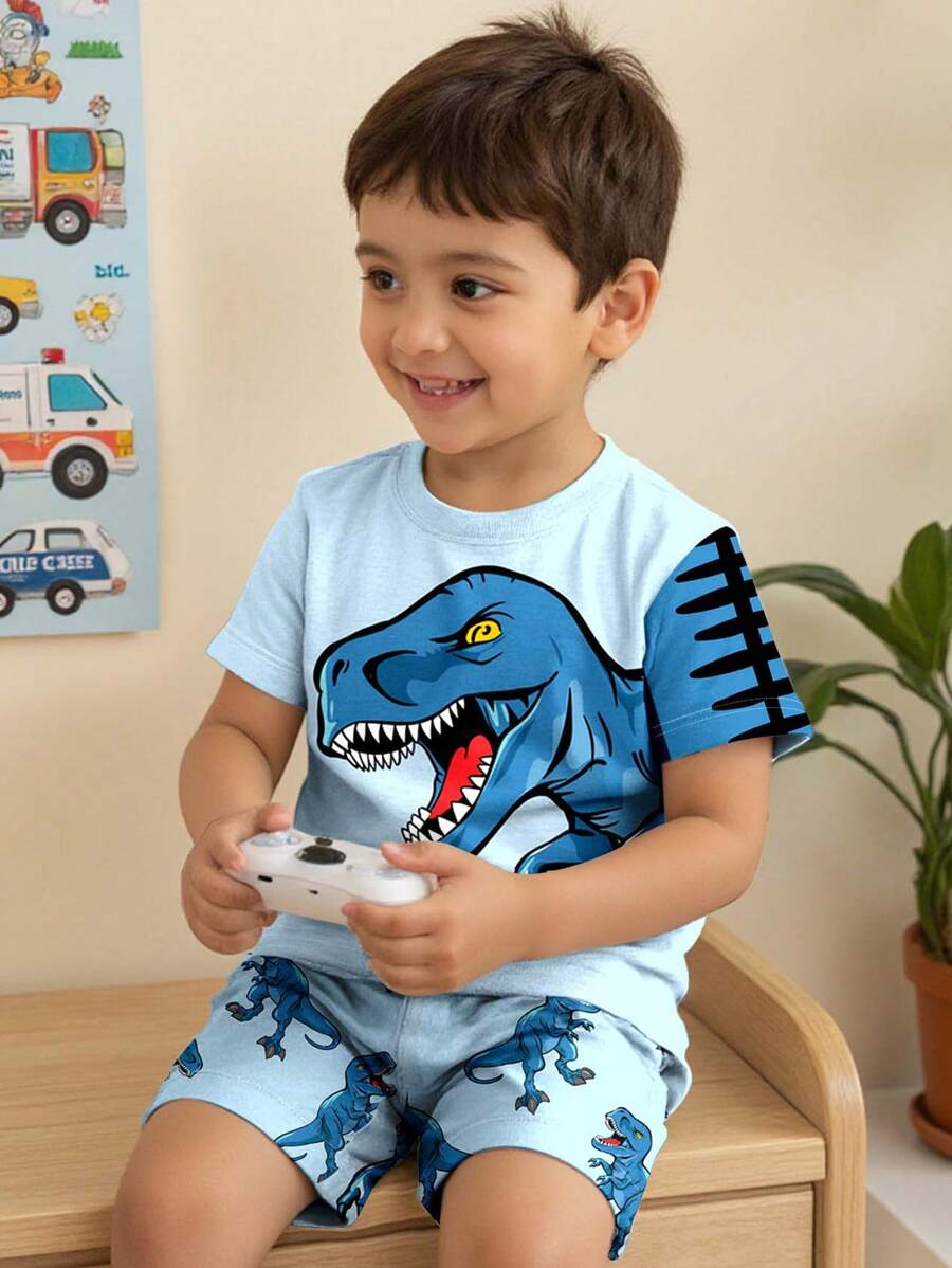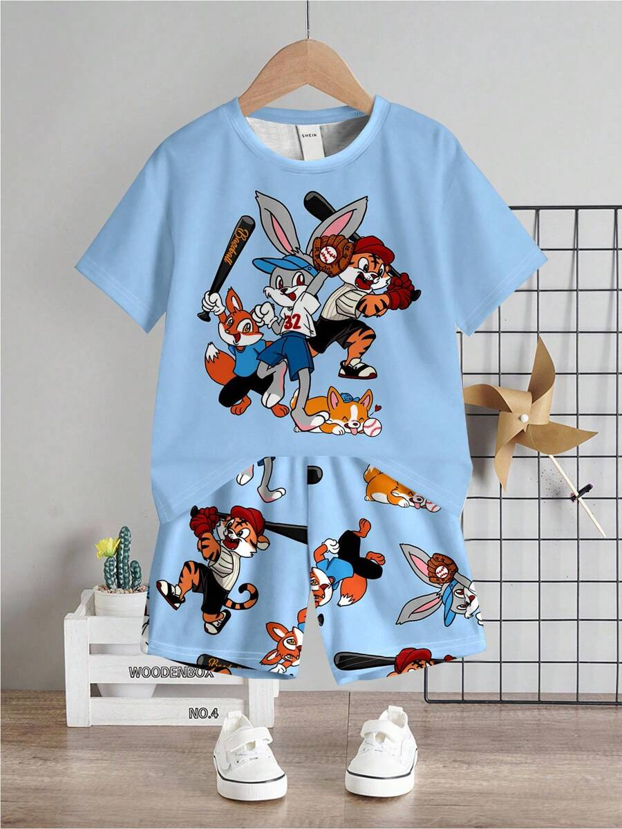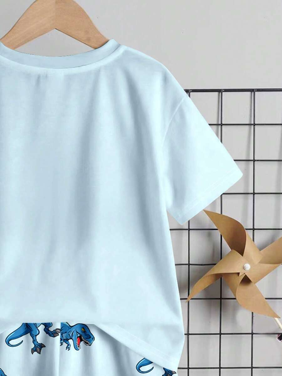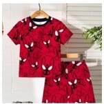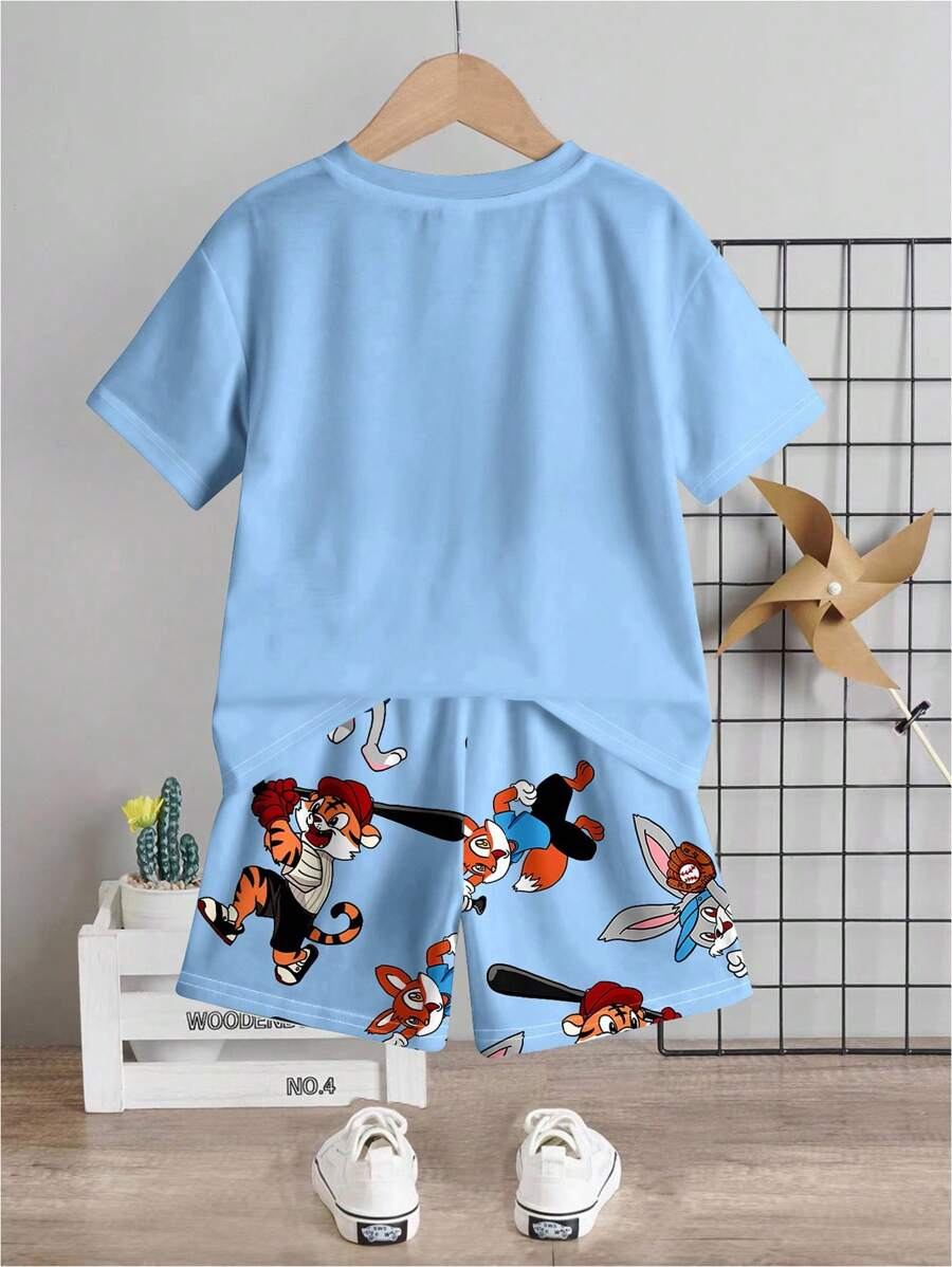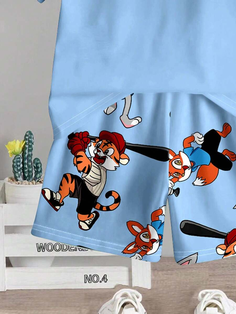 SHEIN 2pcs/Set Young Boys’ Superhero Cartoon Pattern Loose Casual Short Sleeve T-Shirt And Shorts Pajama Set, Summer YB00028