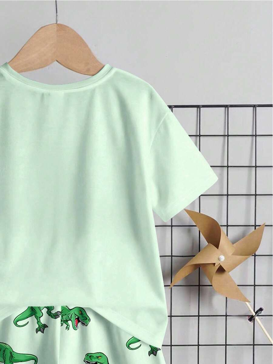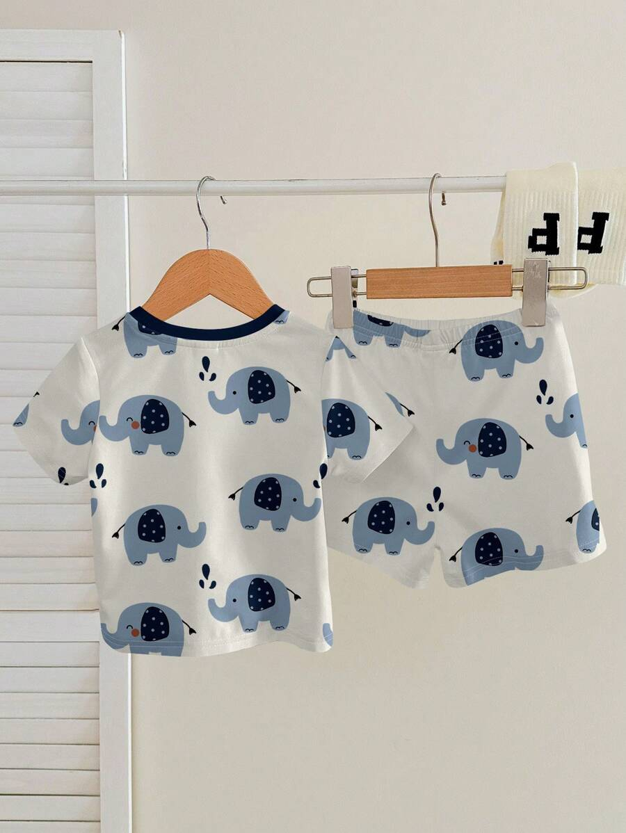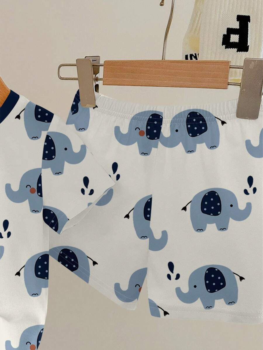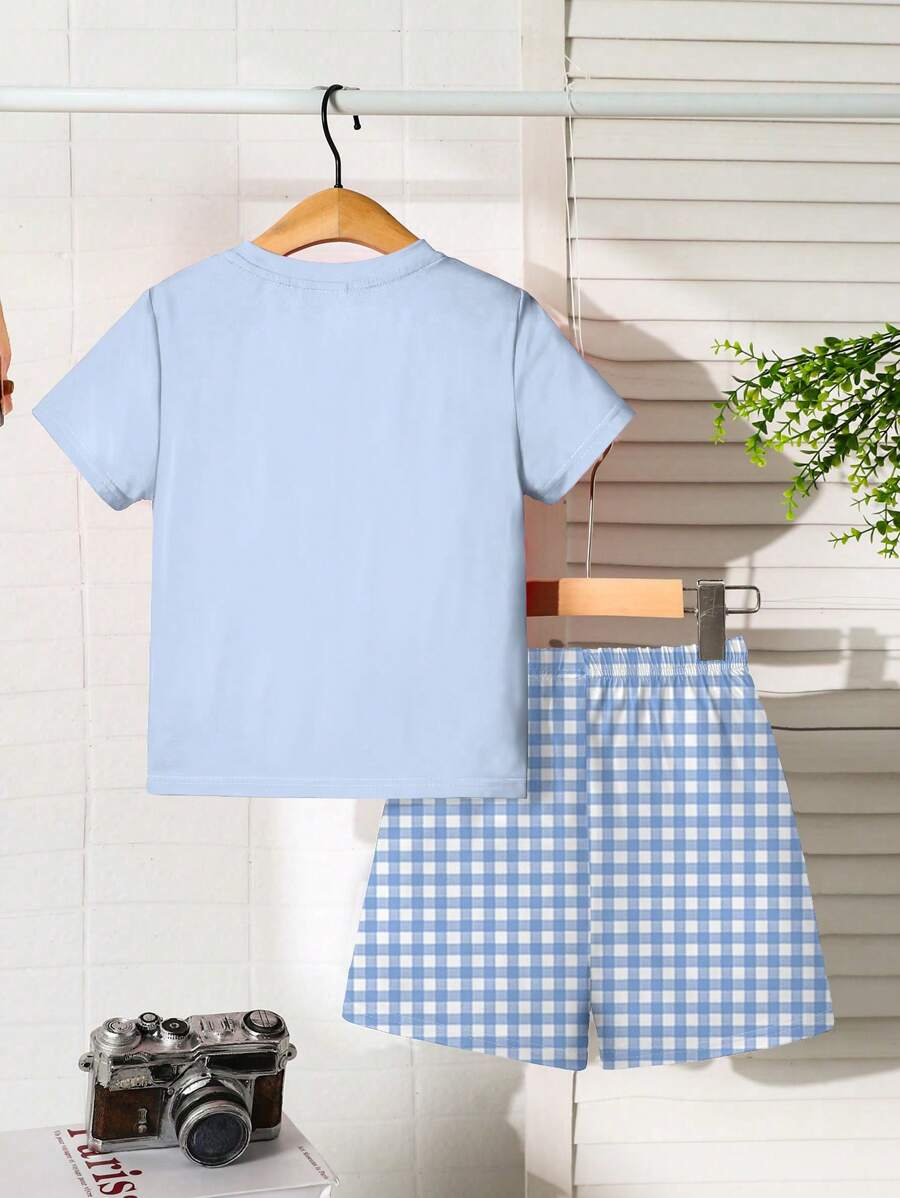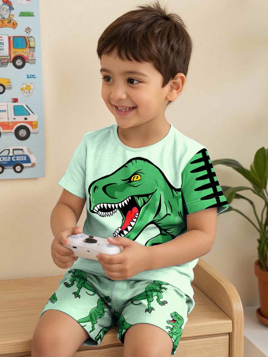 SHEIN 2pcs/Set Young Boys’ Superhero Cartoon Pattern Loose Casual Short Sleeve T-Shirt And Shorts Pajama Set, Summer YB00028
