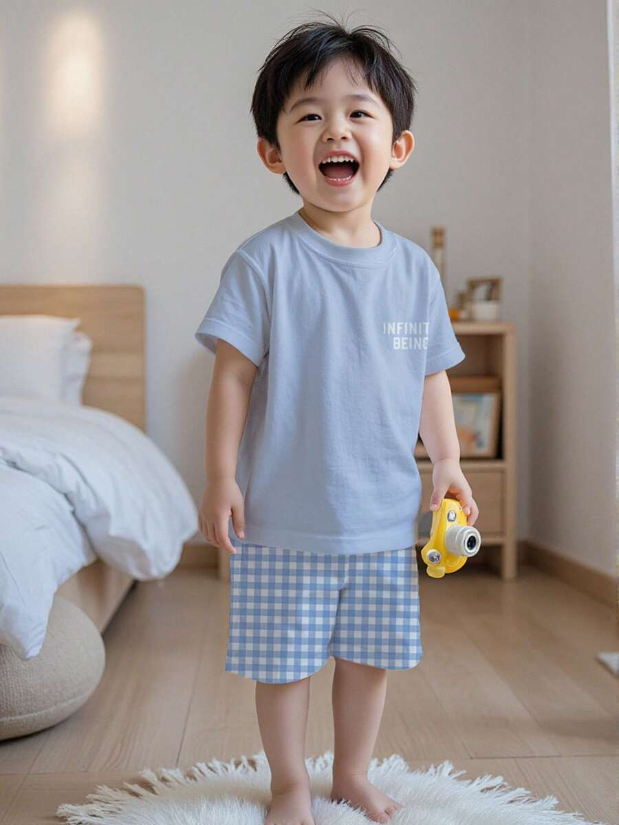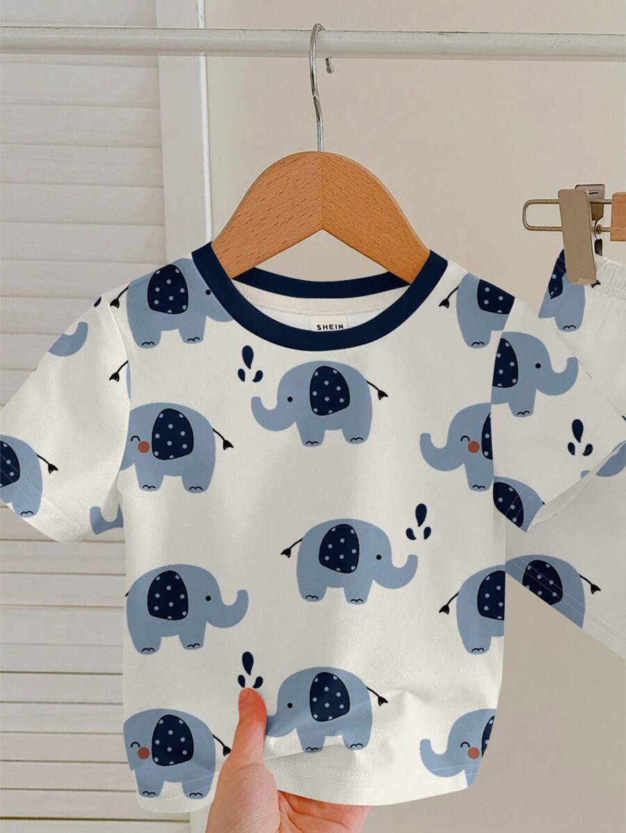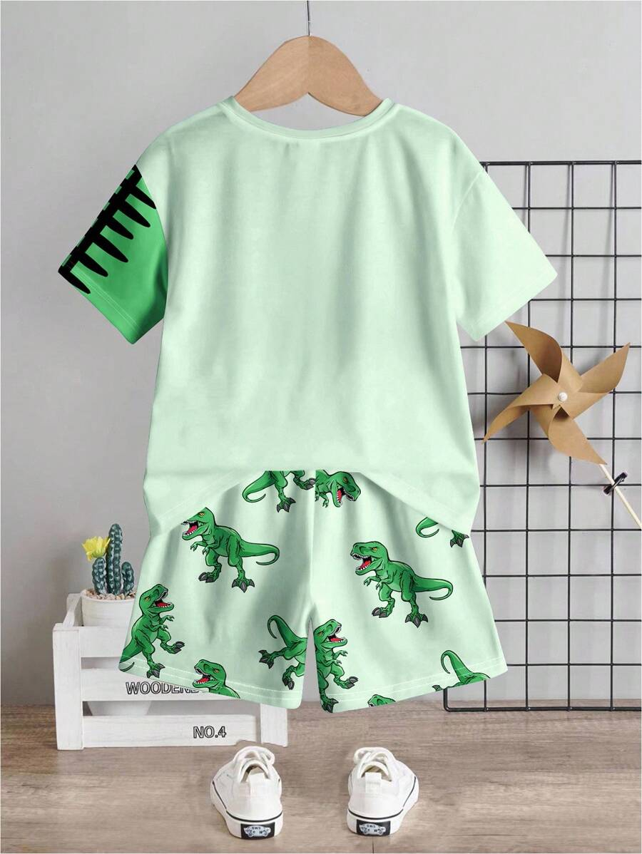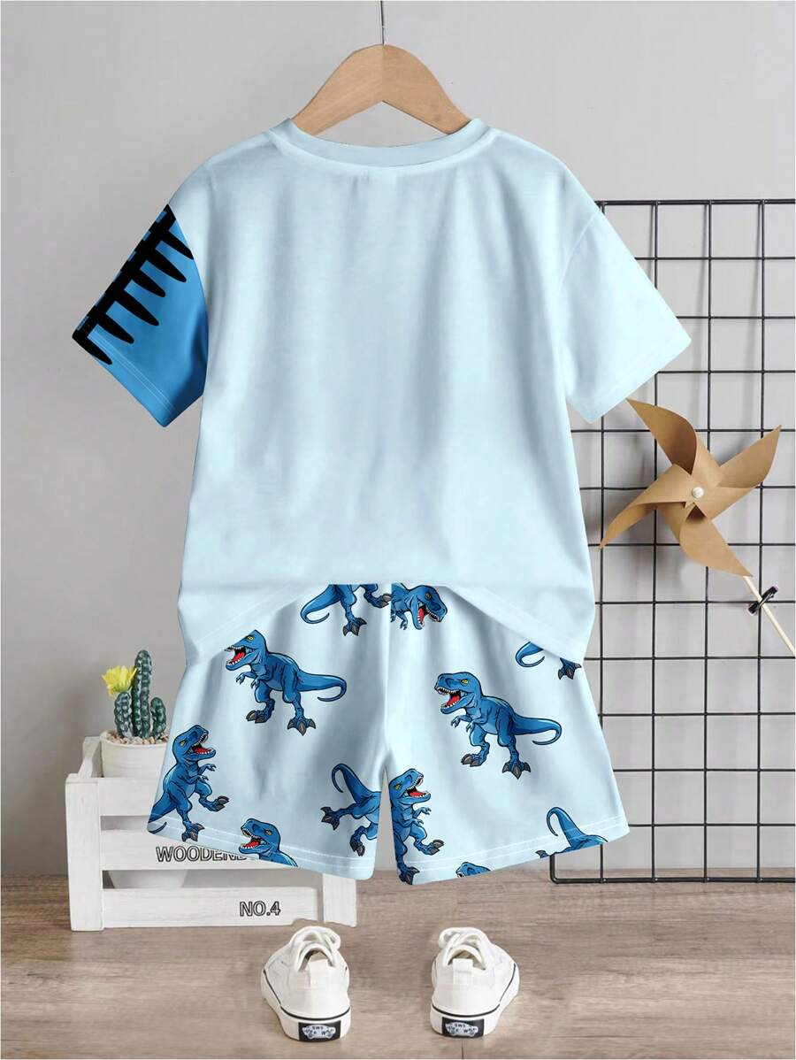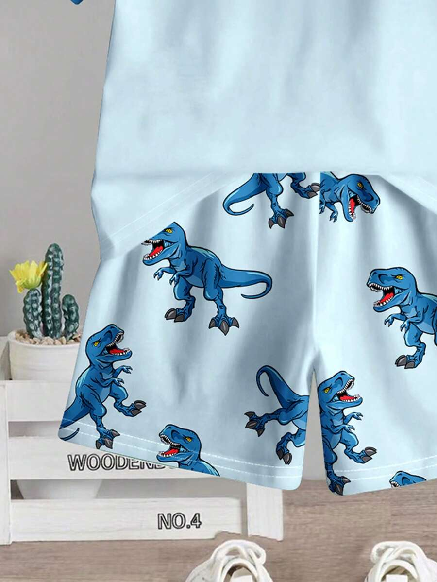 SHEIN 2pcs/Set Young Boys’ Superhero Cartoon Pattern Loose Casual Short Sleeve T-Shirt And Shorts Pajama Set, Summer YB00028