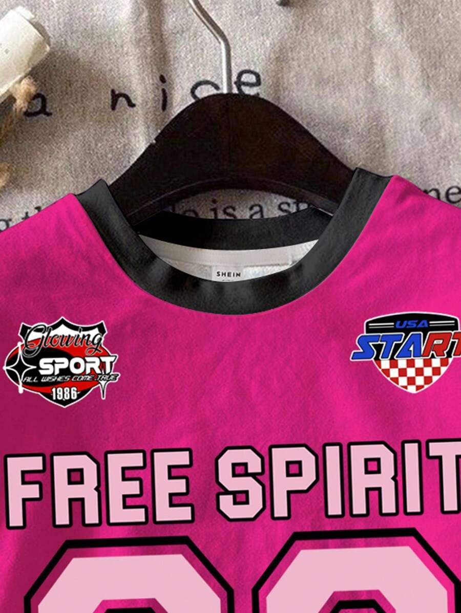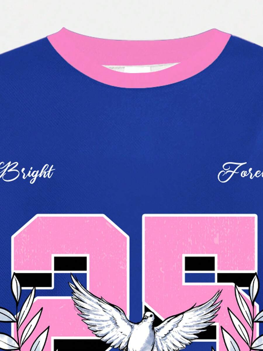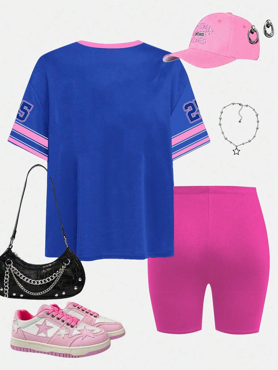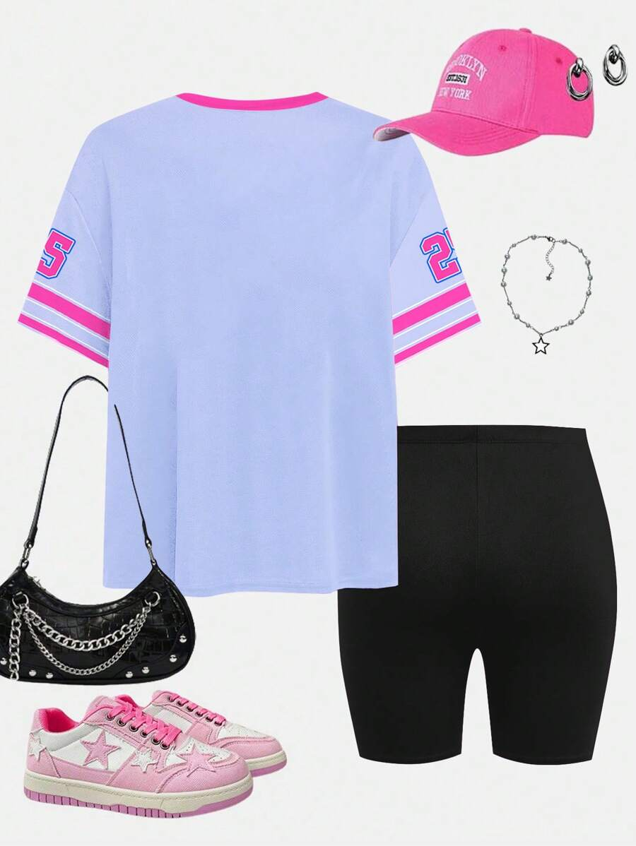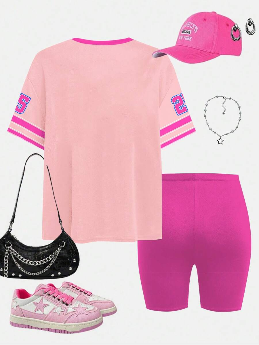 SHEIN 2pcs/Set Young Girl Casual Cute Cartoon Bow Short Sleeve Top And Shorts Set YG00094
