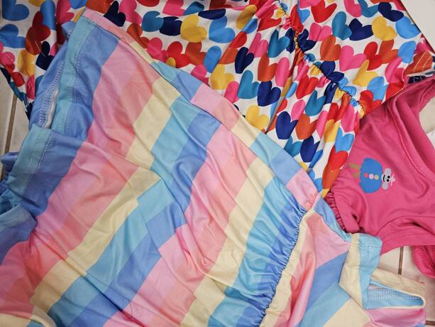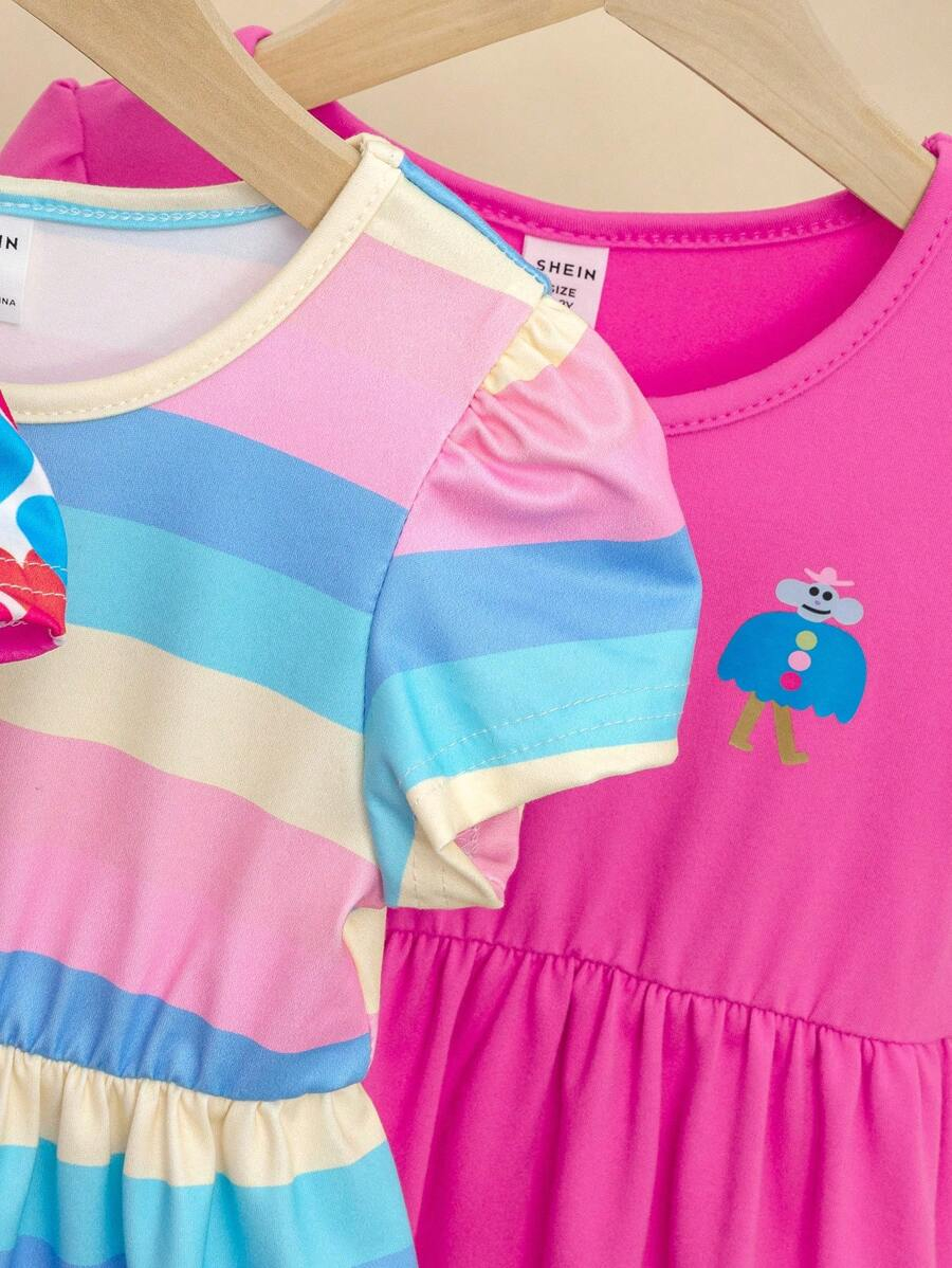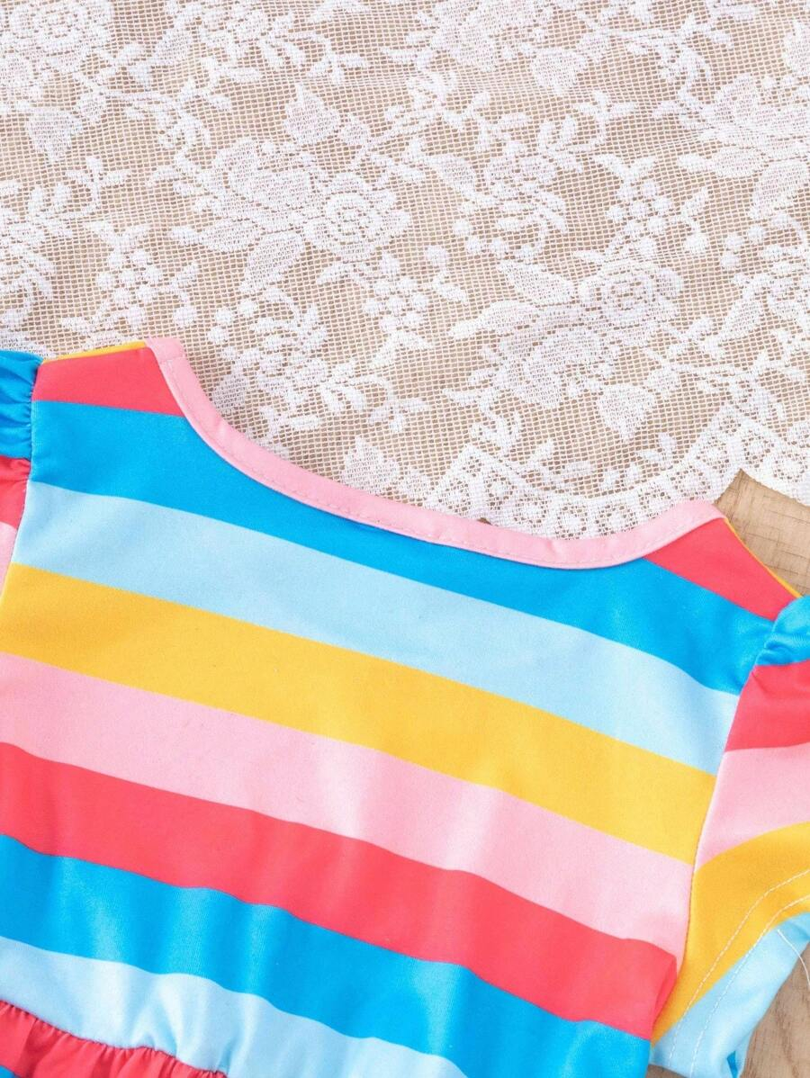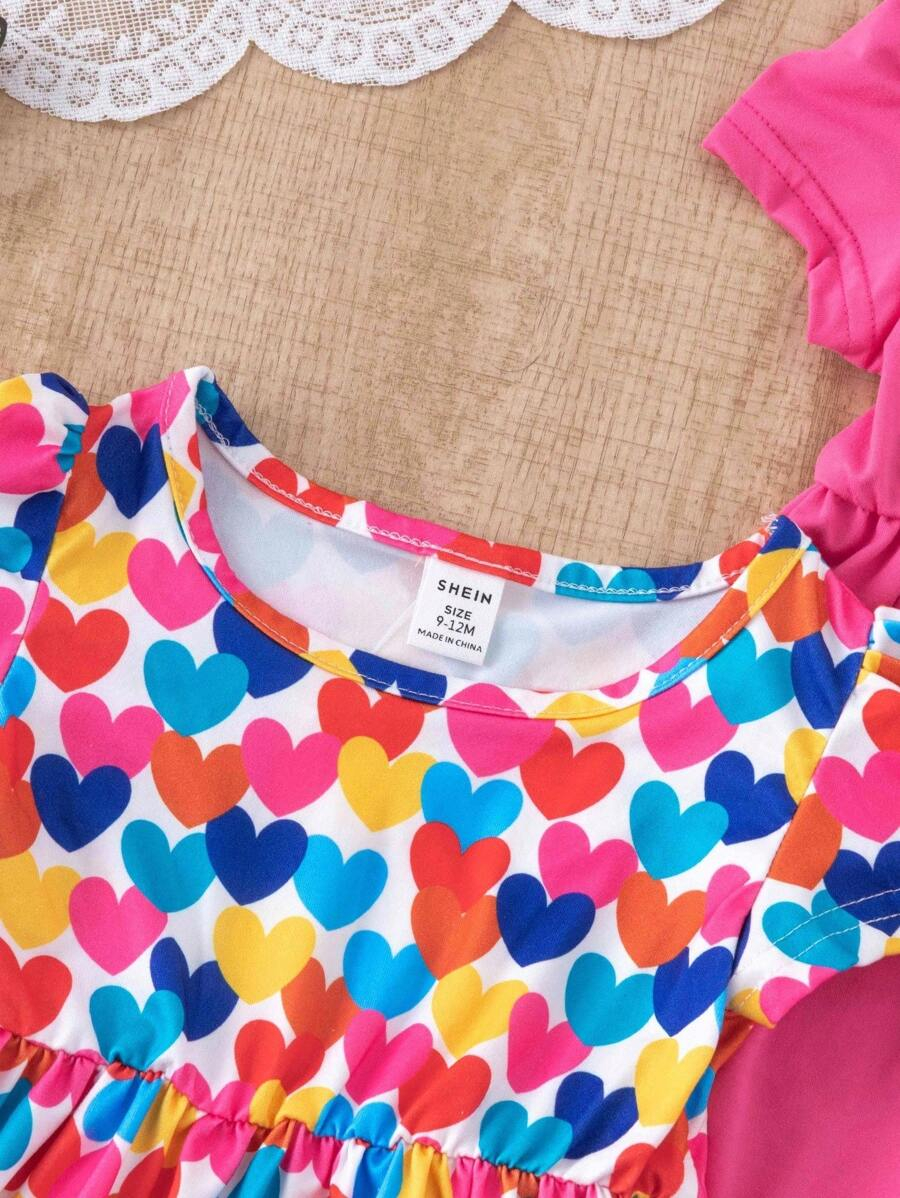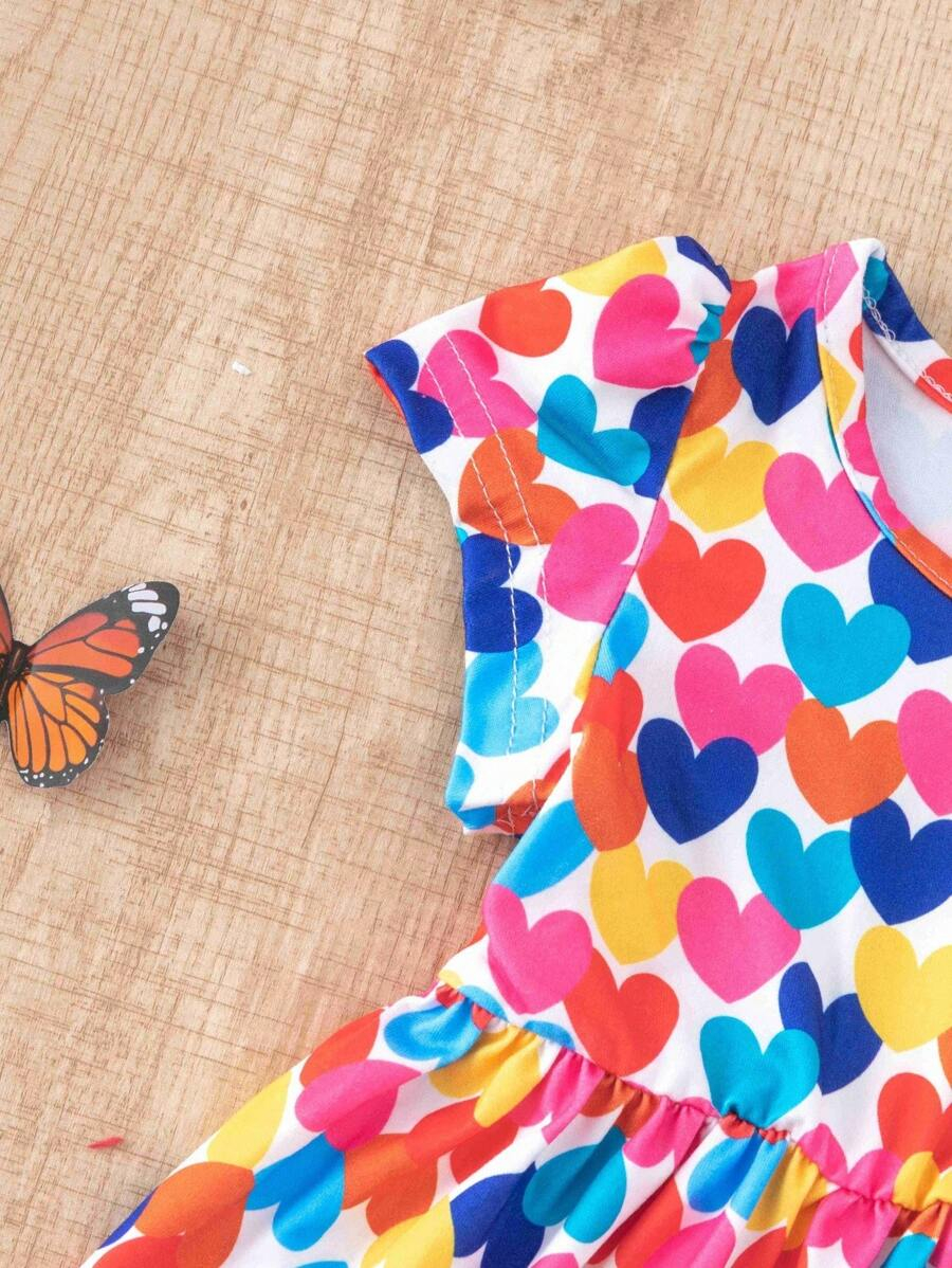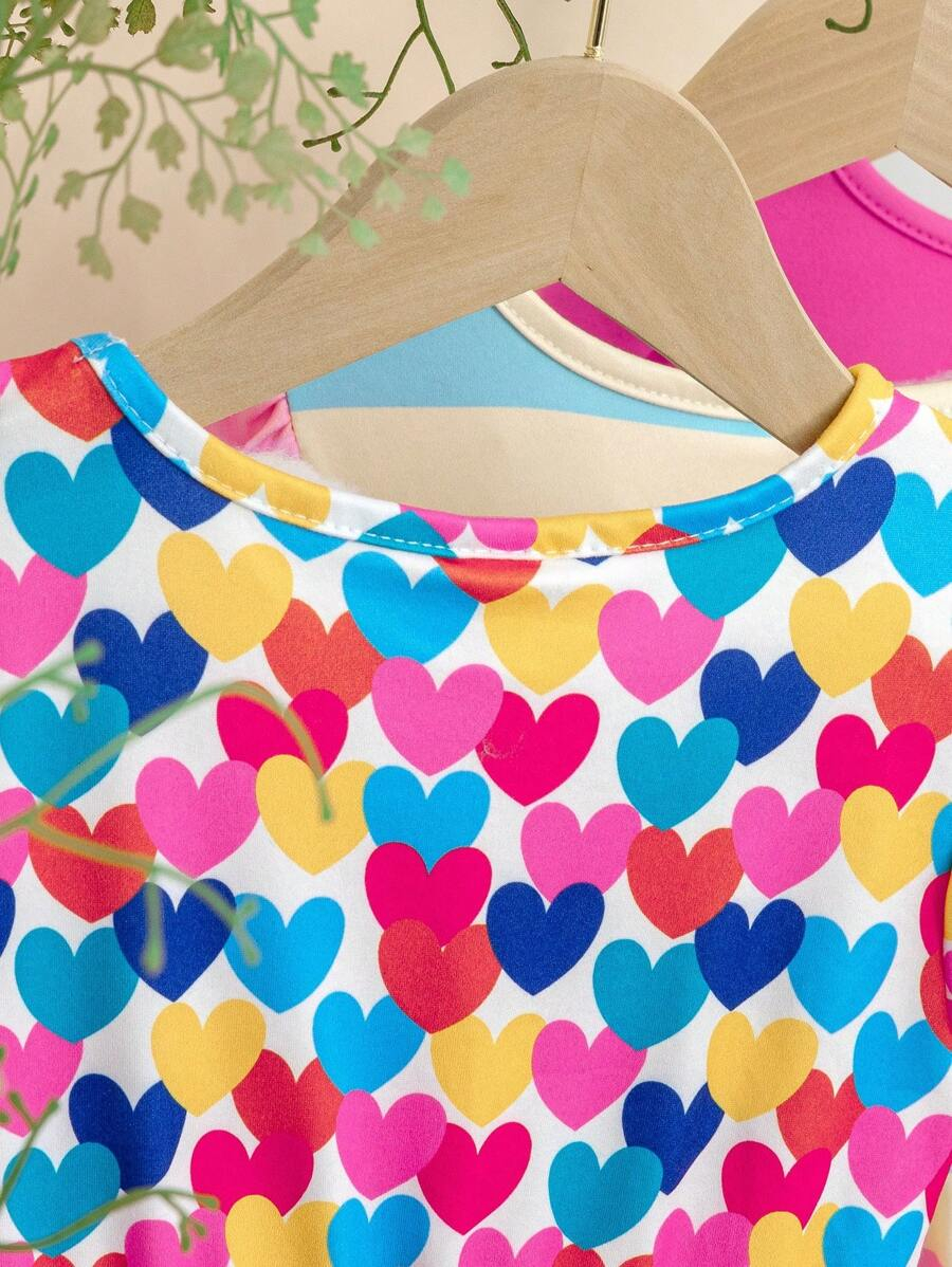 SHEIN 3pcs/Set Baby Girl Casual Colorful Striped Heart BG00100Print Crew Neck Dress With Hat