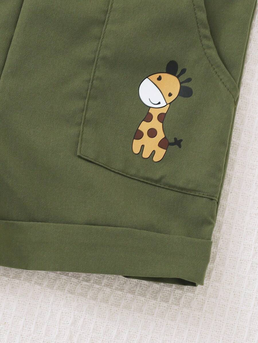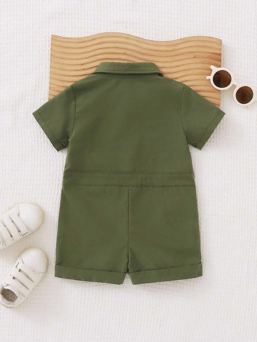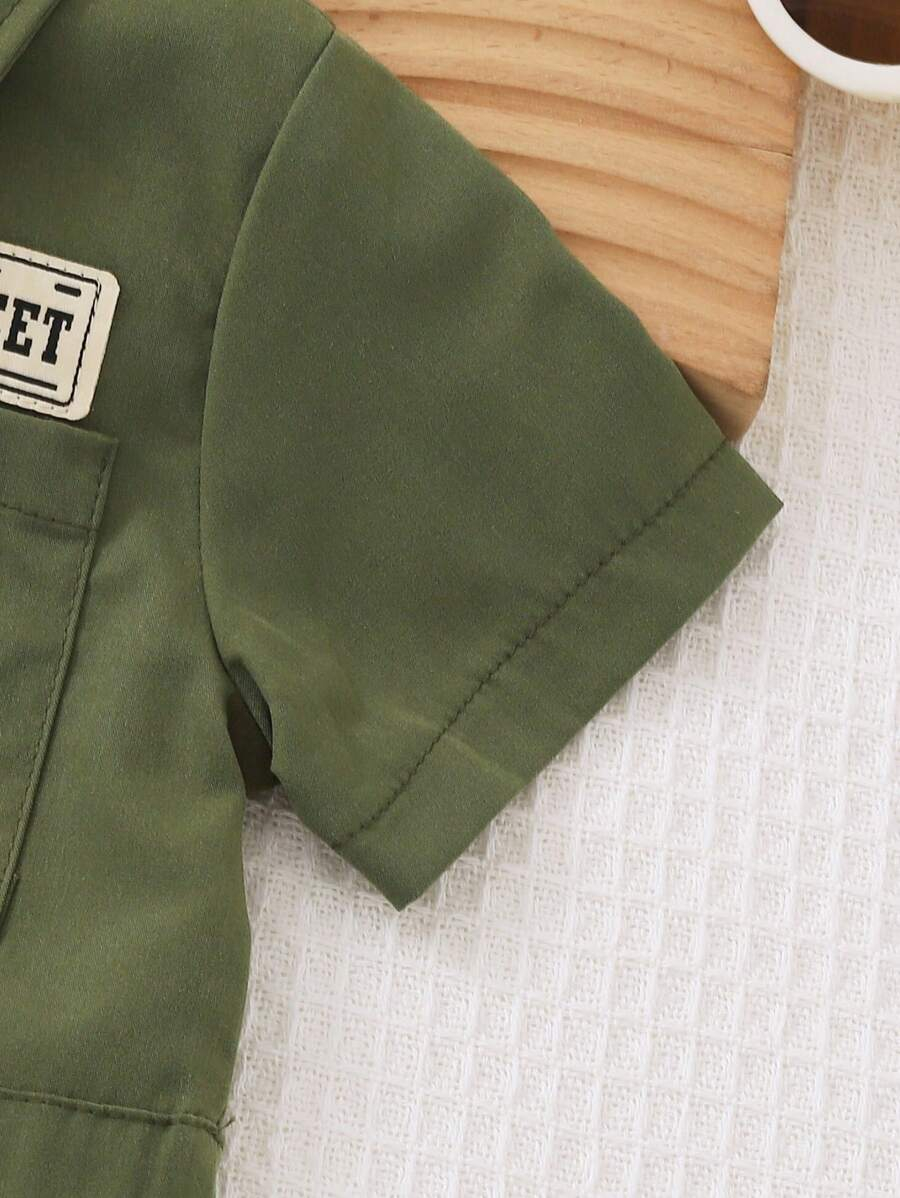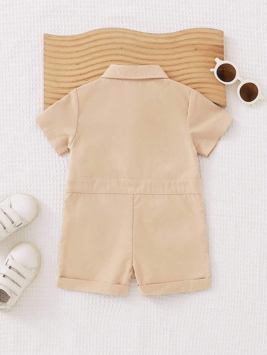 SHEIN Baby Boys’ Casual Fashionable Comfortable Cargo Shorts With Pockets And Turn-Down Collar, Suitable For Spring/Summer Outings, Travel, Birthday Party Photos BB00031