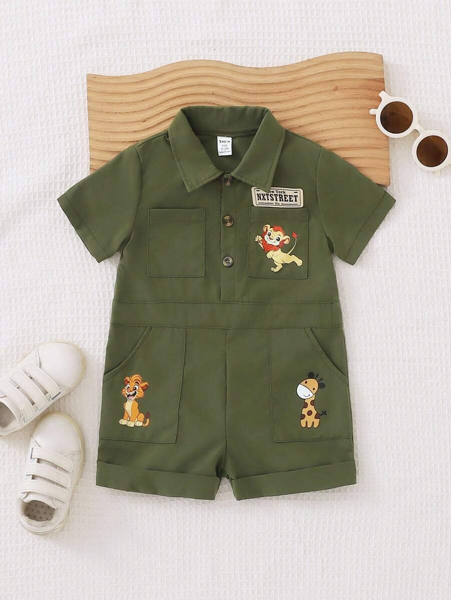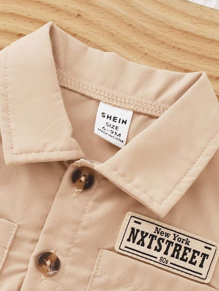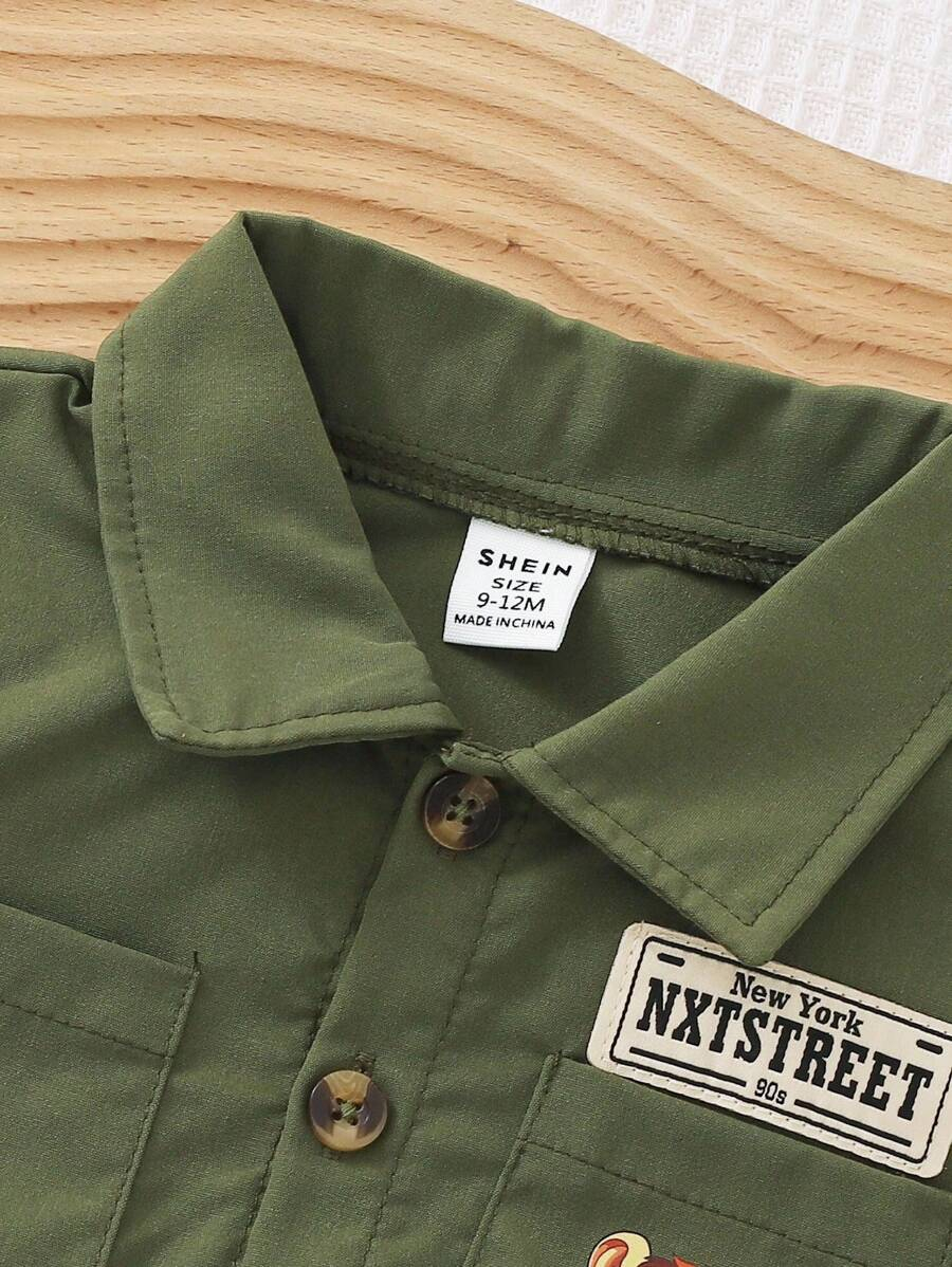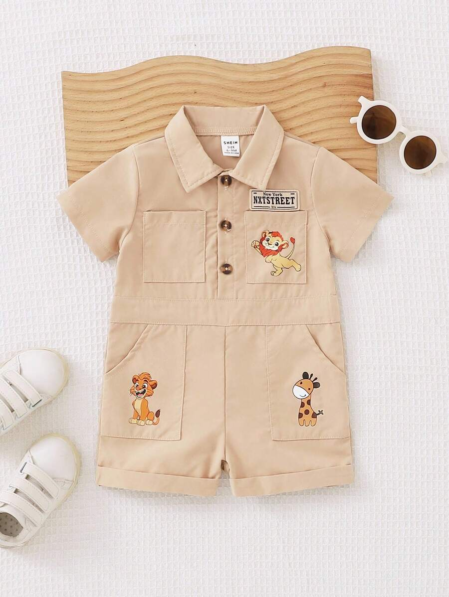 SHEIN Baby Boys’ Casual Fashionable Comfortable Cargo Shorts With Pockets And Turn-Down Collar, Suitable For Spring/Summer Outings, Travel, Birthday Party Photos BB00031