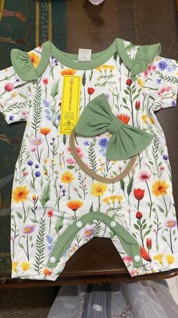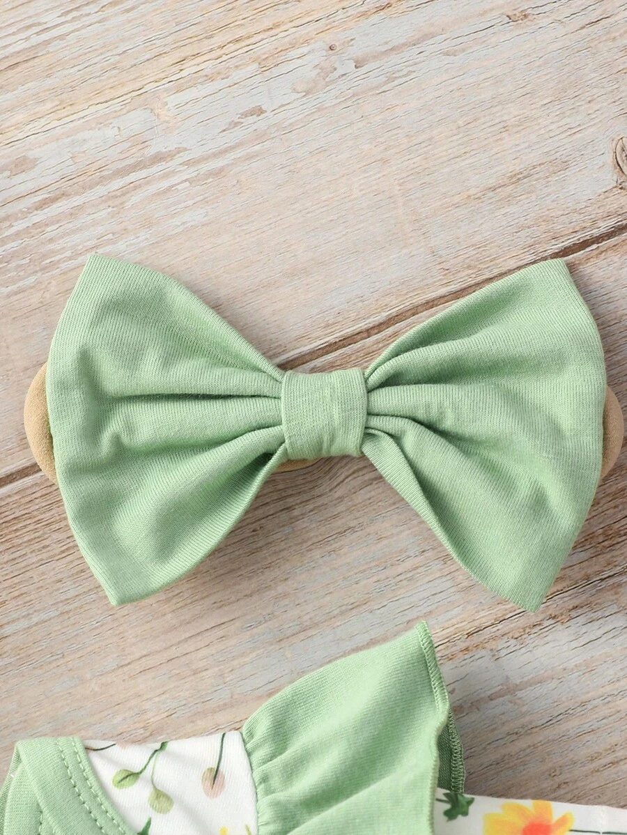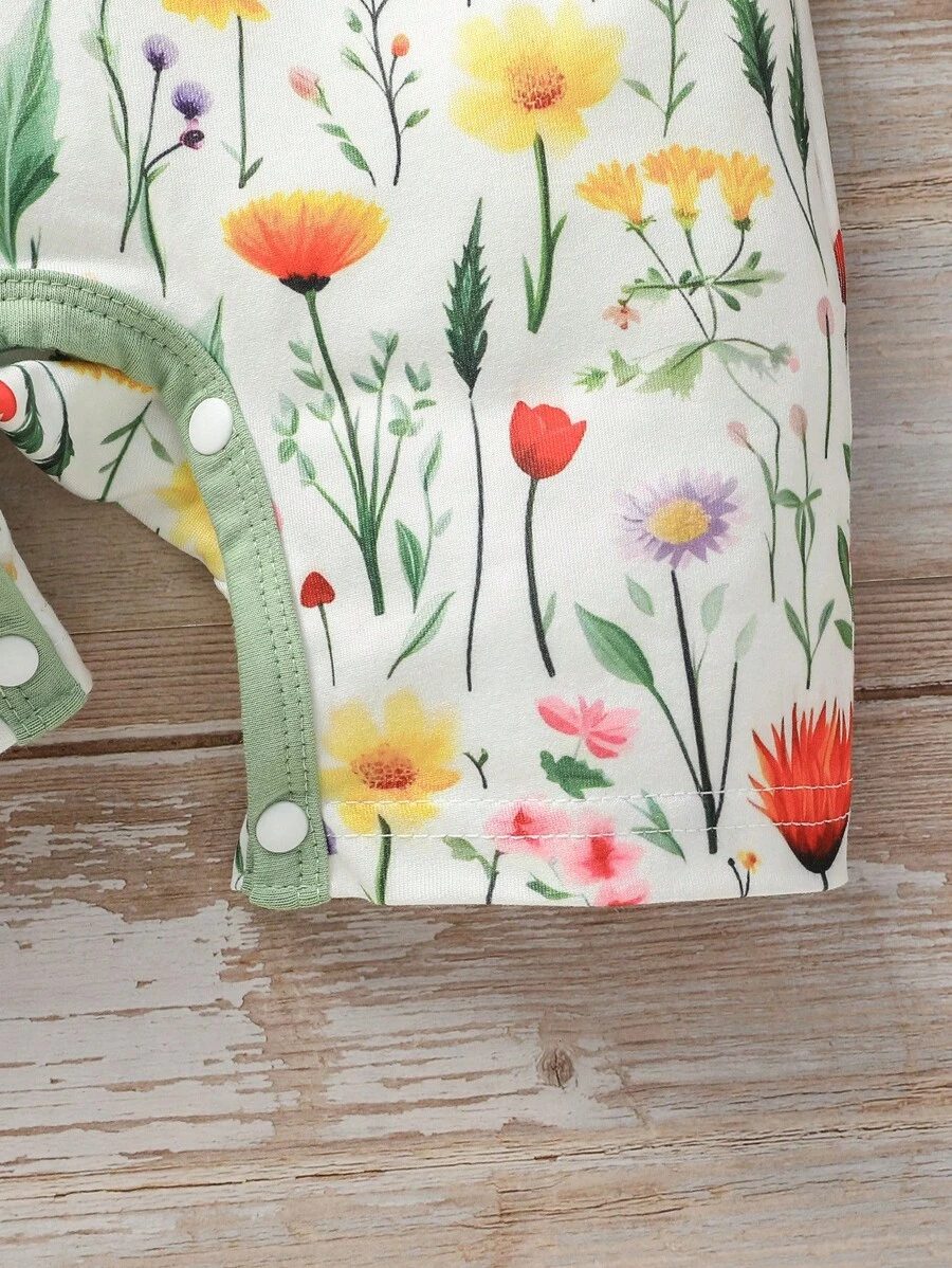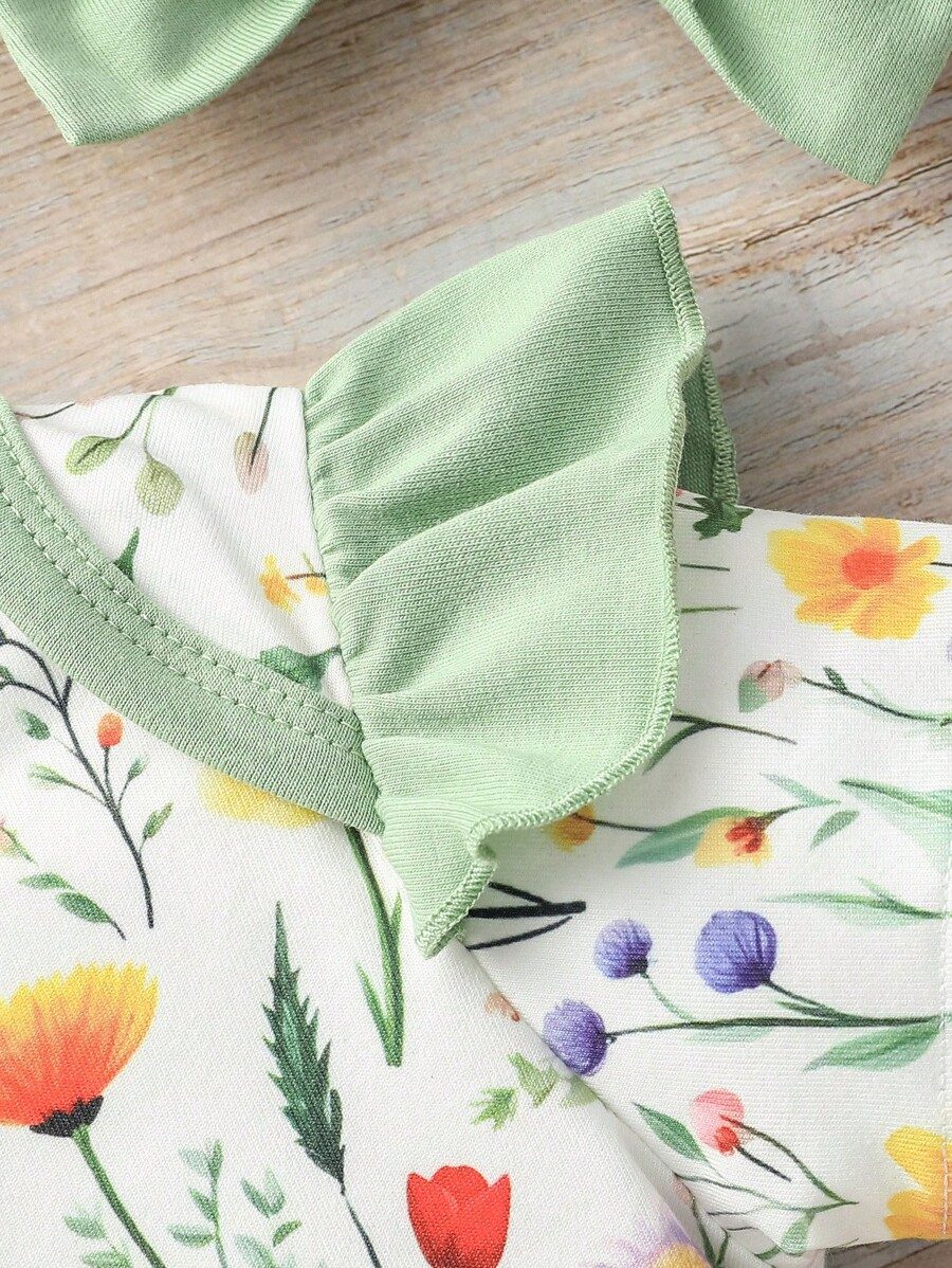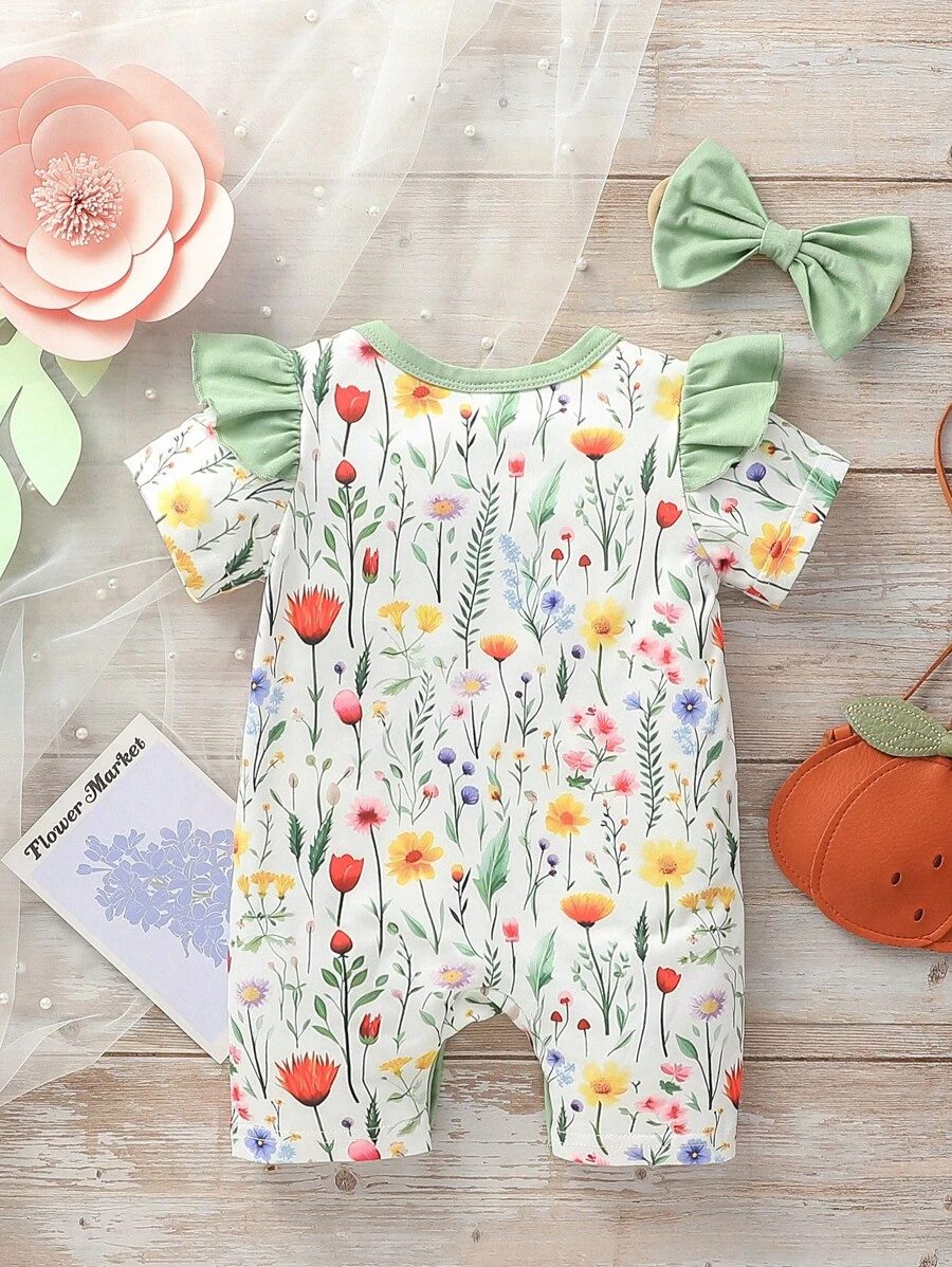 SHEIN Baby Girl Floral Pattern Ruffle Trim Romper NB00033