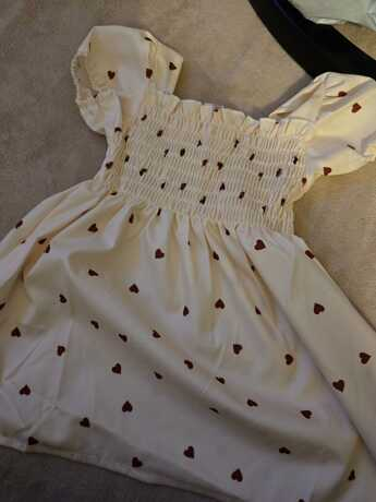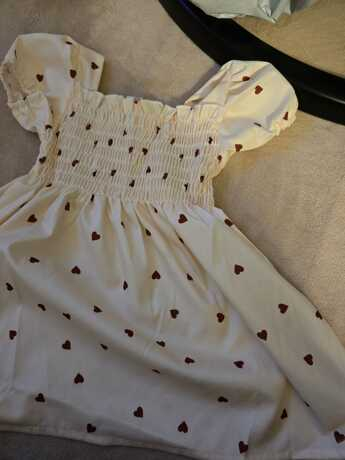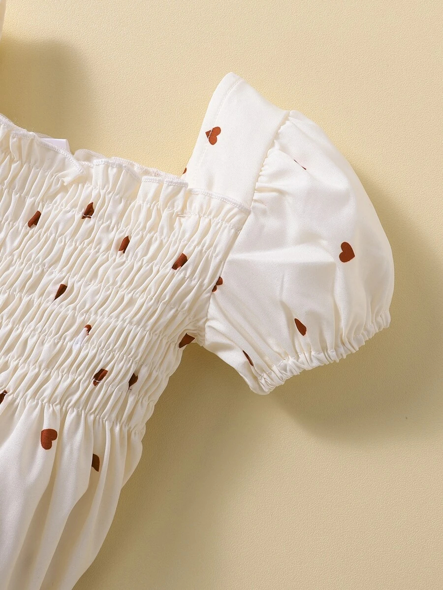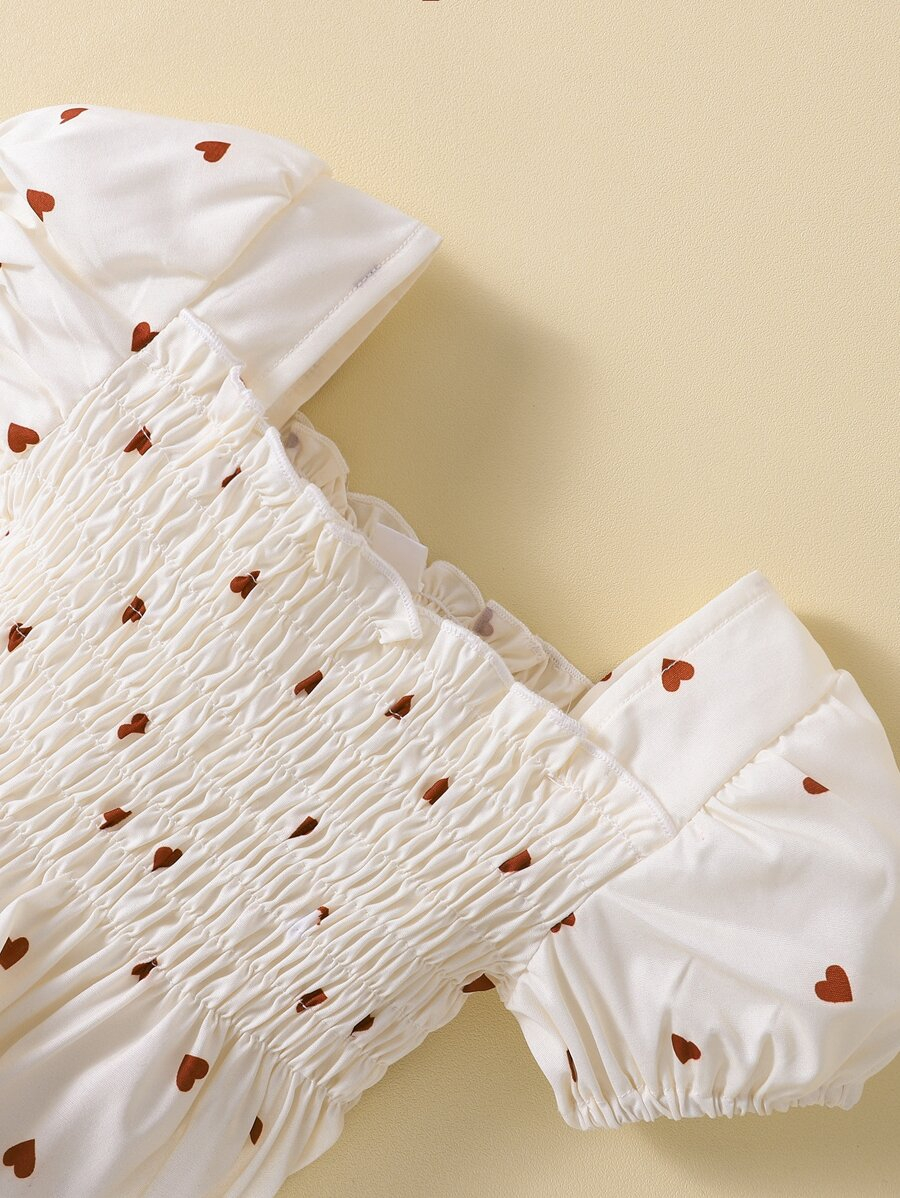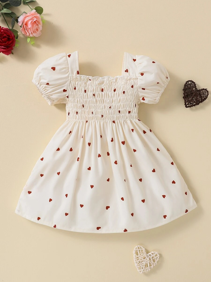 SHEIN Baby Girl Heart Print Shirred Puff Sleeve Dress BG00017