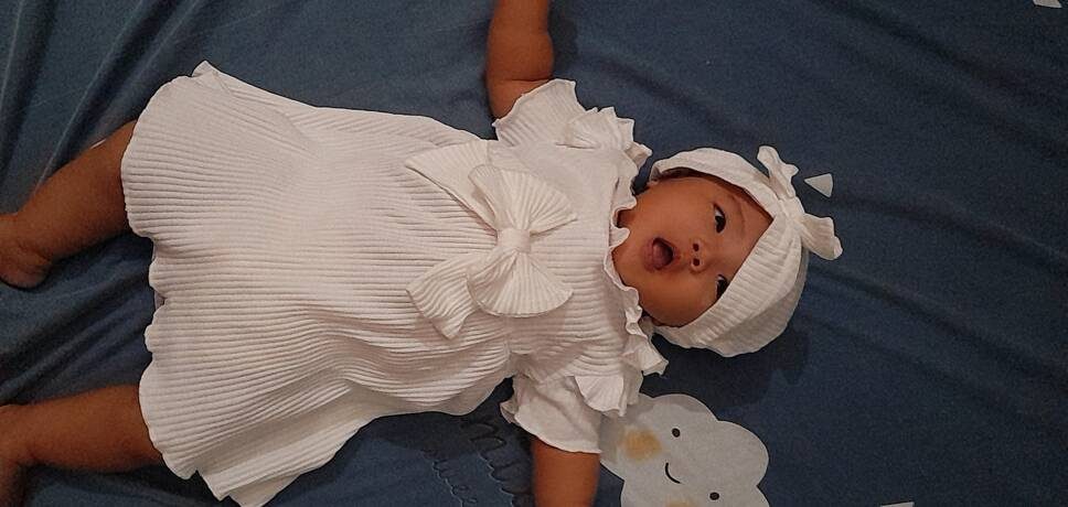 I really like the fabric and it is compostable to the babies’ skin and I was so thankful to the supplier of shipping the items exactly and completely..My daughter was very pretty wearing this white dress of her three months old shot..i love you 😘💞 think you