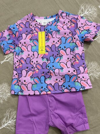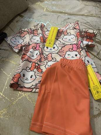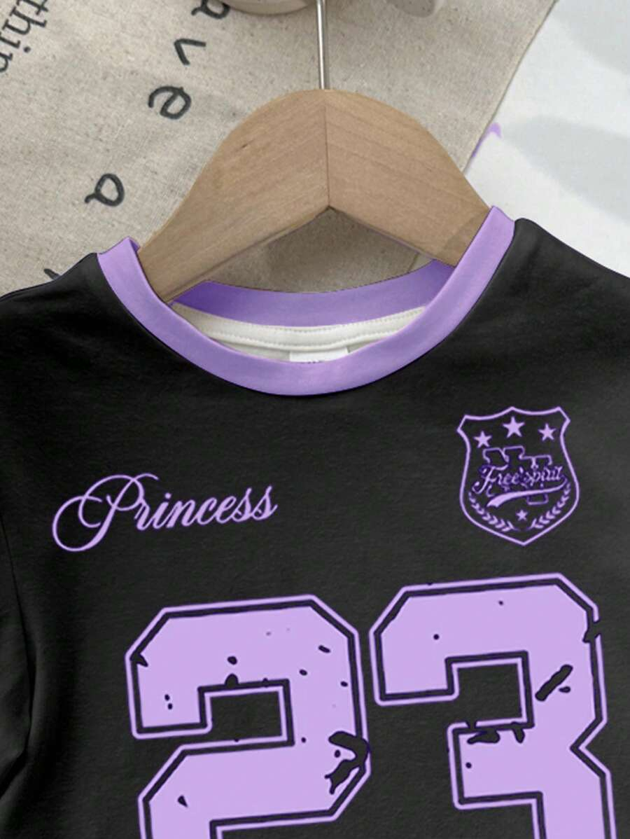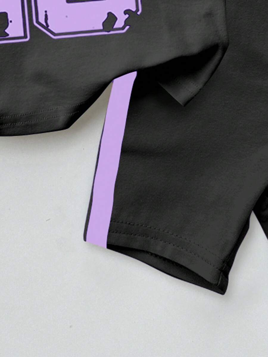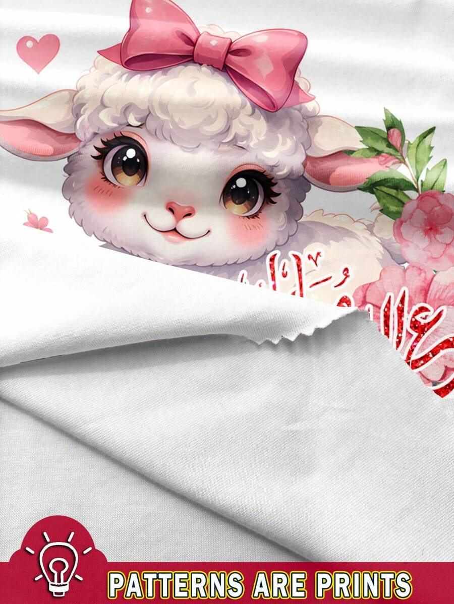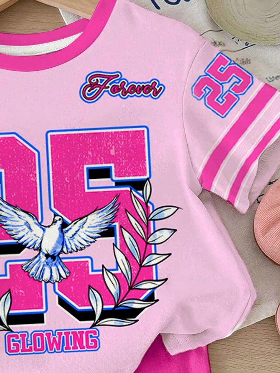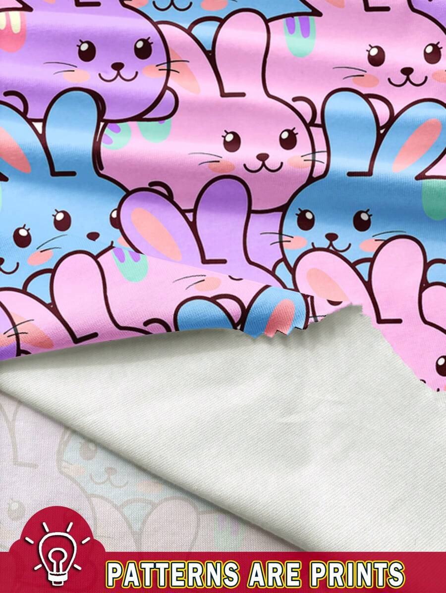 SHEIN Baby Girl Simple Casual Cute Colorful Cat Print Fashionable Round Neck Short Sleeve T-Shirt And Leggings Set, Suitable For Spring/Summer BG00046