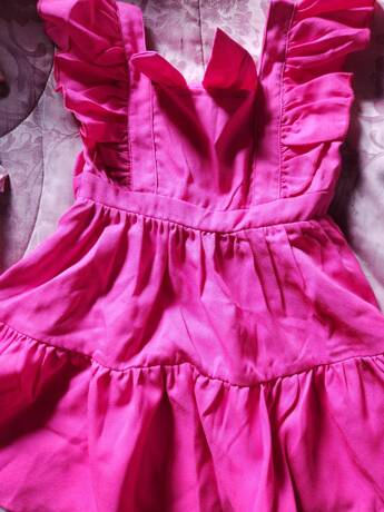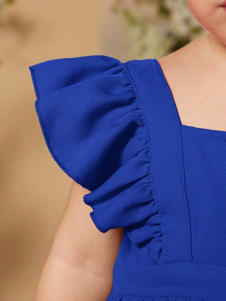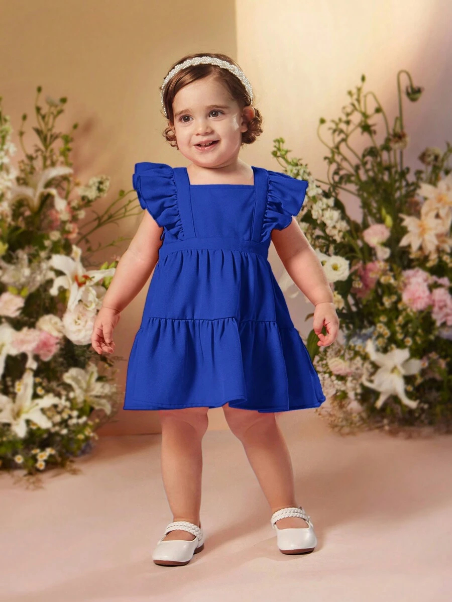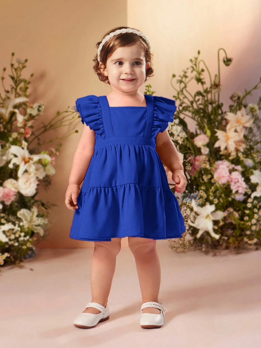 SHEIN Baby Girl Summer & Simple Solid Color Ruffle Hem Sleeveless Dress, Detachable Bowknot BG00079