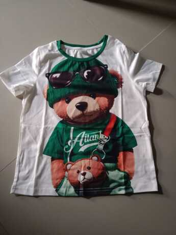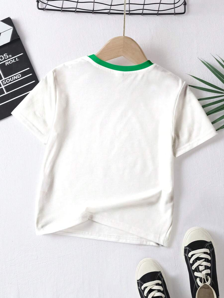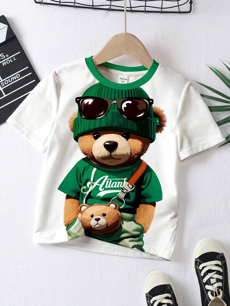 SHEIN Cool Bear & Young Boy Casual Cartoon Bear Printed Round Neck Loose Short Sleeve T-Shirt, Suitable For Summer YB00056