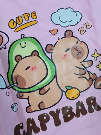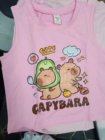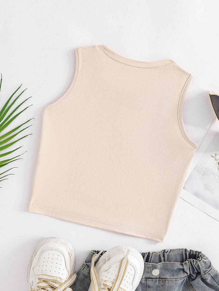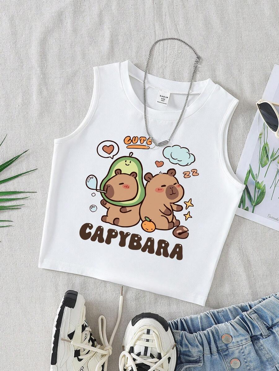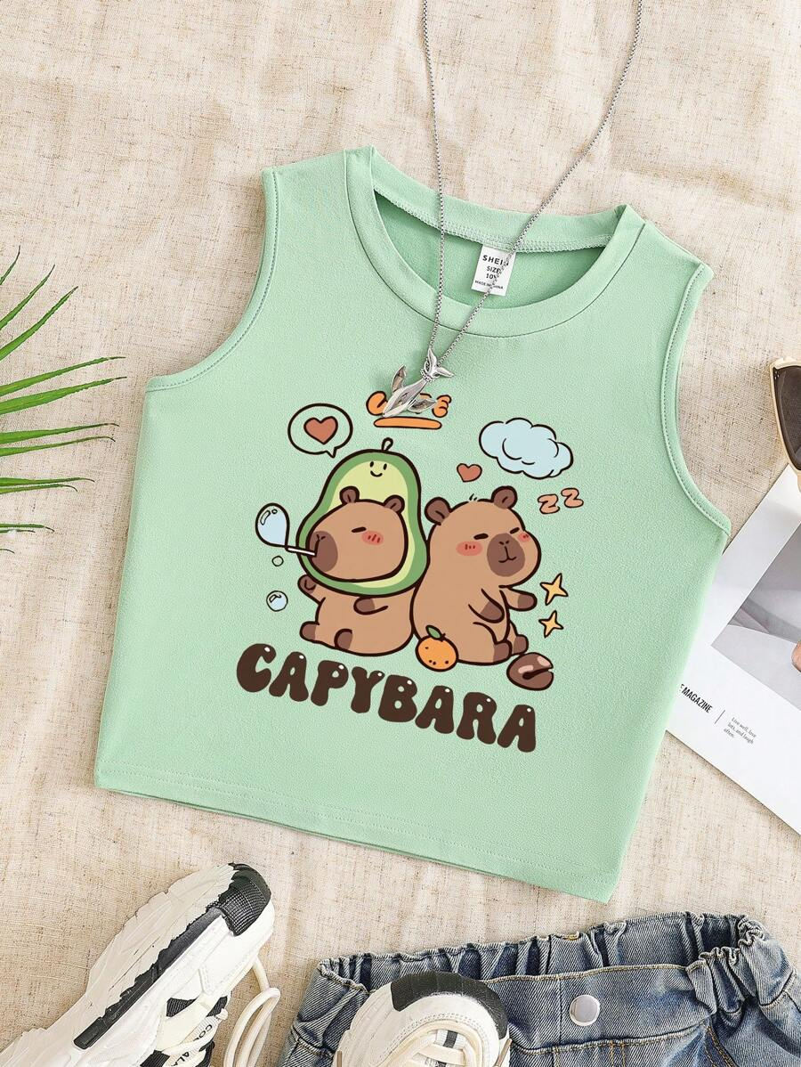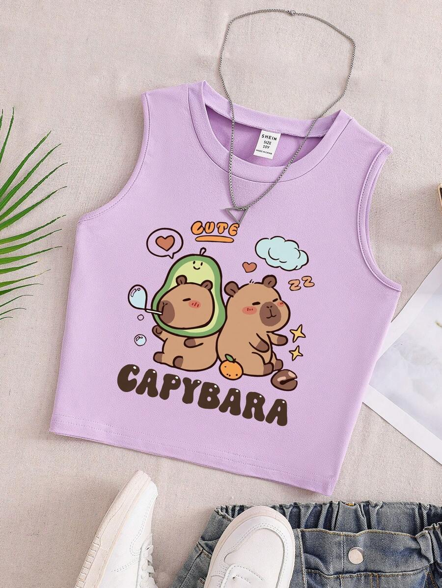 SHEIN GraphicGems Girls Teen Cute Capybara Cartoon Print Round Neck Beige Cute Tank Top TG-8-12-00009