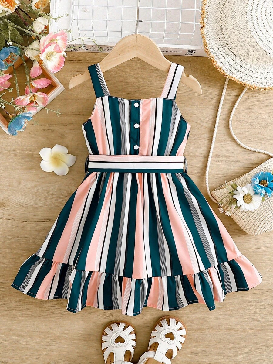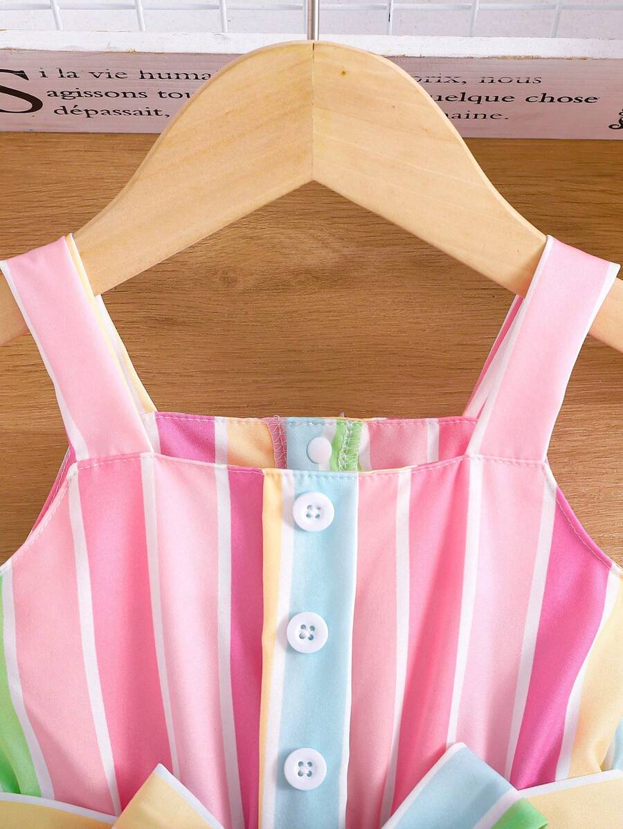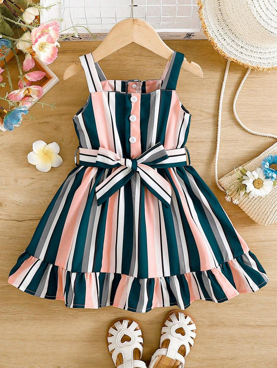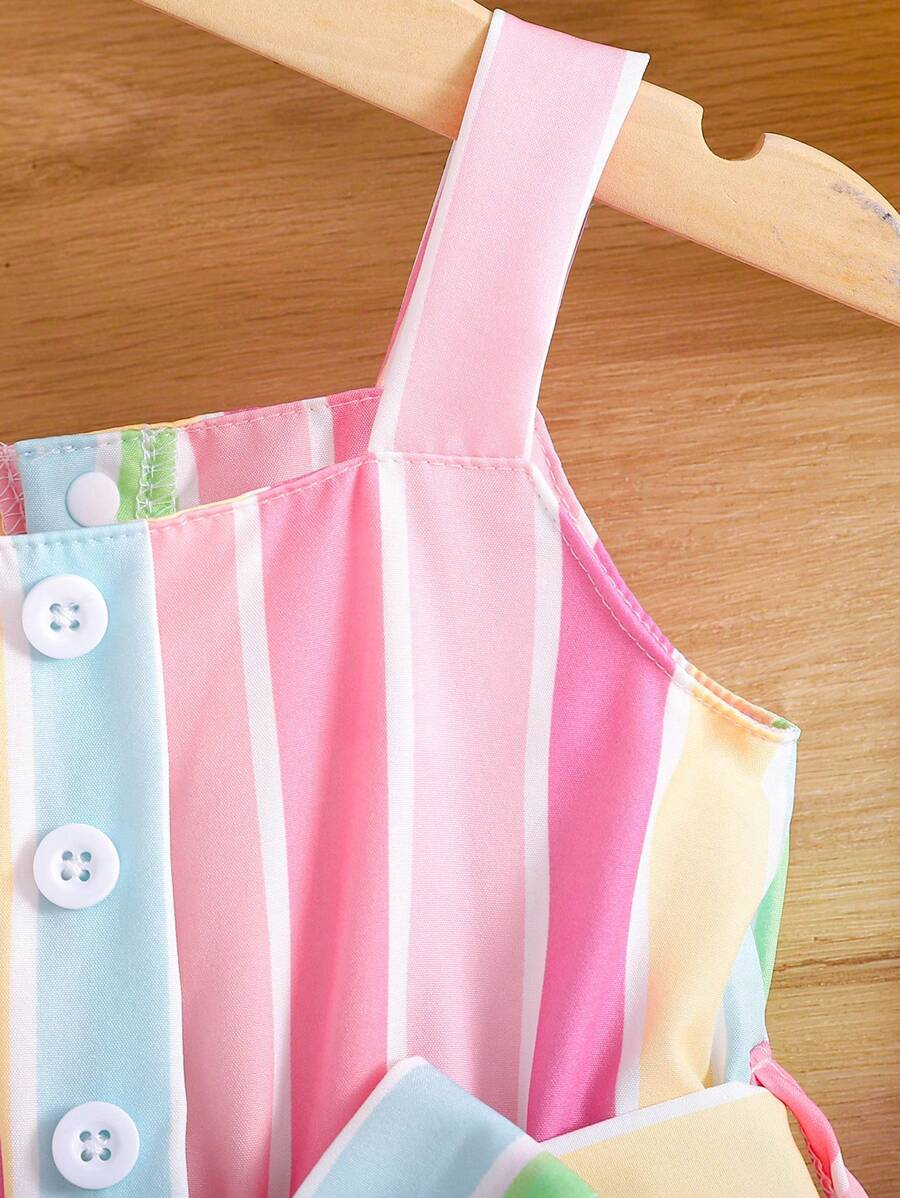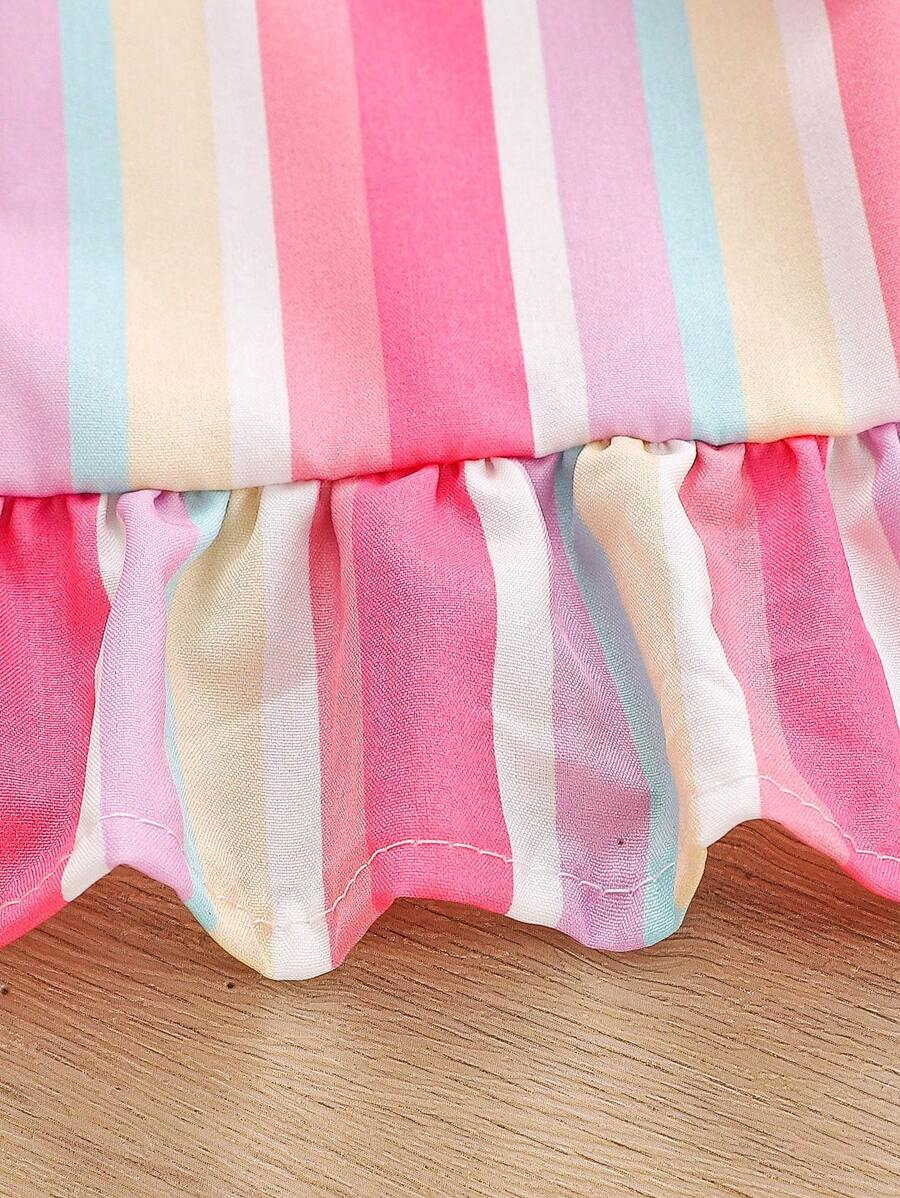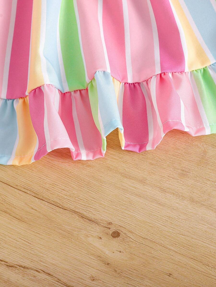 SHEIN Infant/Baby Girl Colorful Stripe Ruffle Hem Button Decorated Casual Dress, Summer Fashion & Cute BG00040