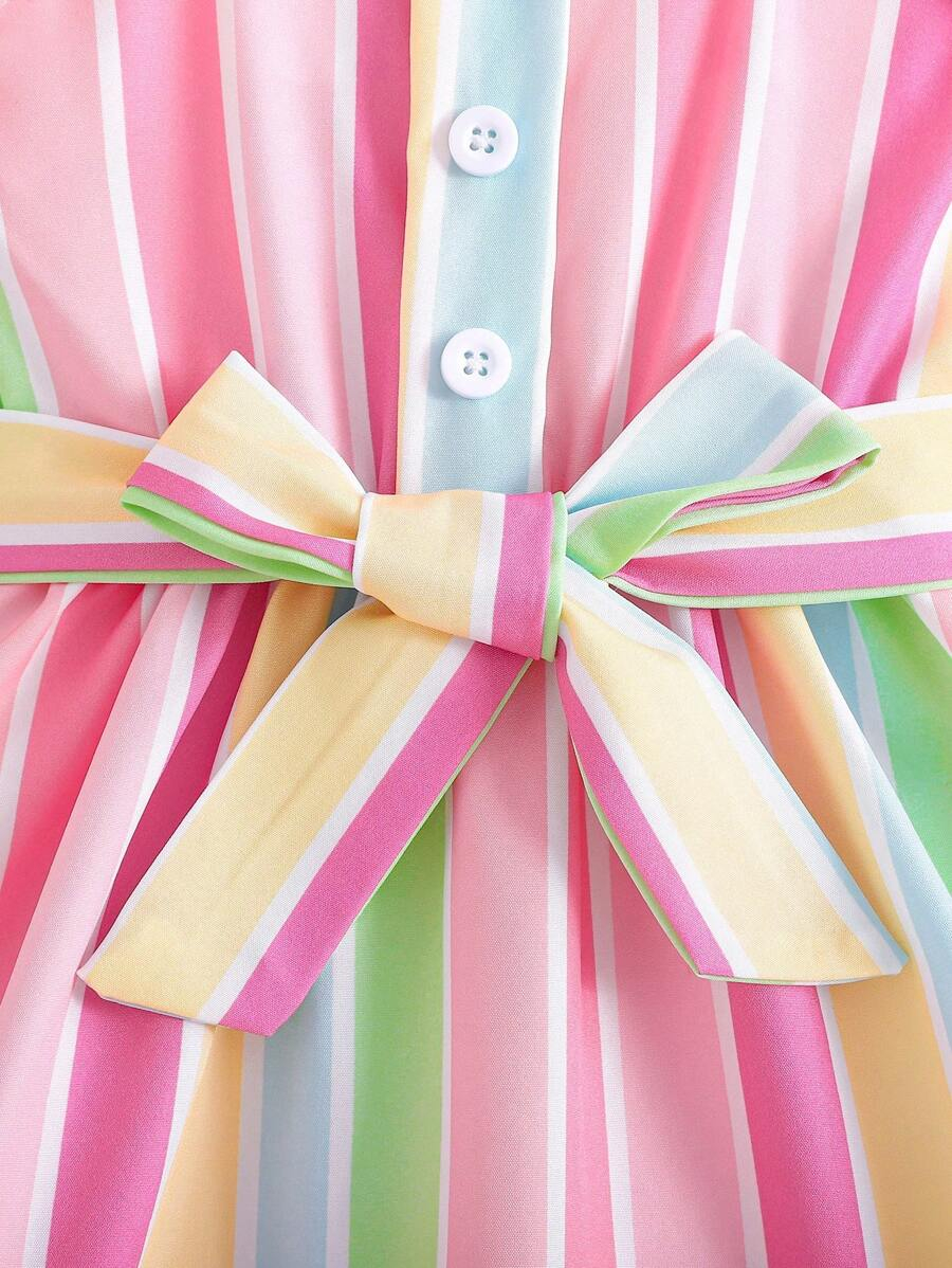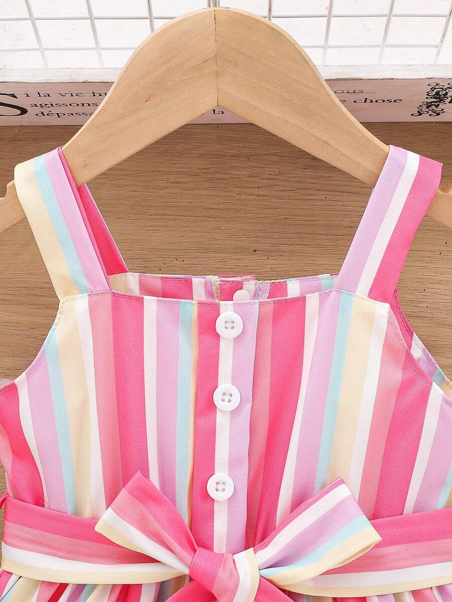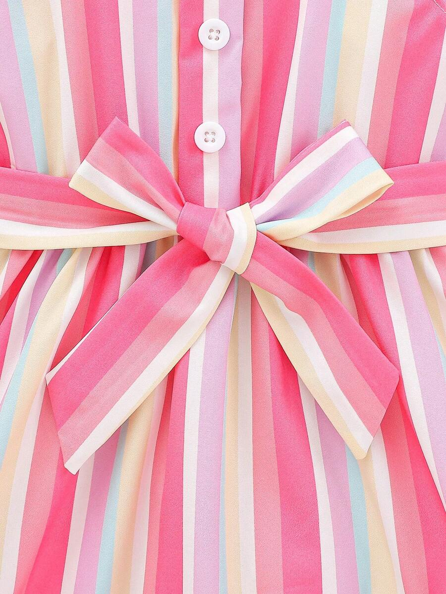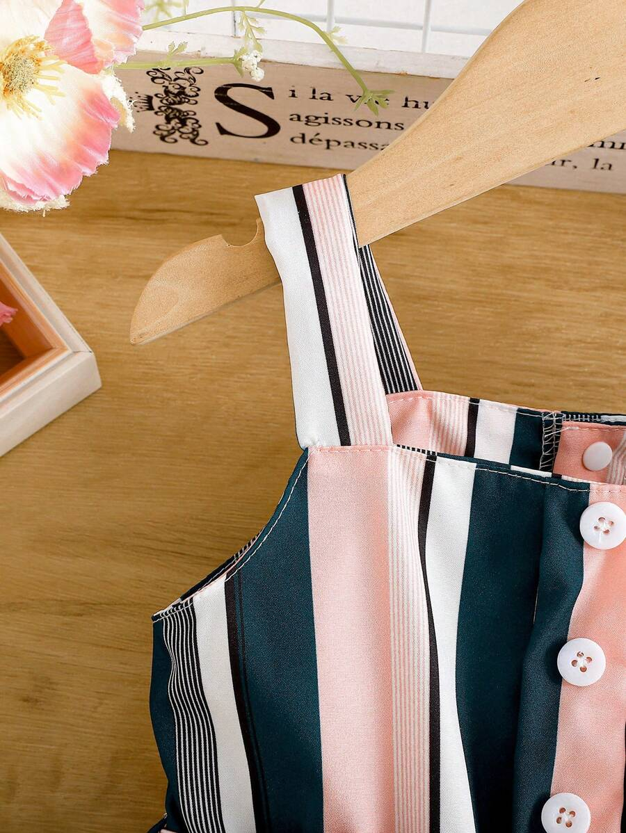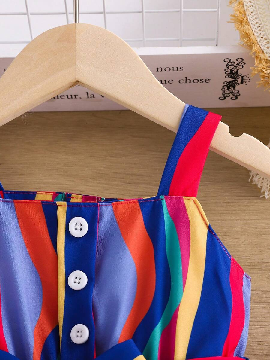 SHEIN Infant/Baby Girl Colorful Stripe Ruffle Hem Button Decorated Casual Dress, Summer Fashion & Cute BG00040