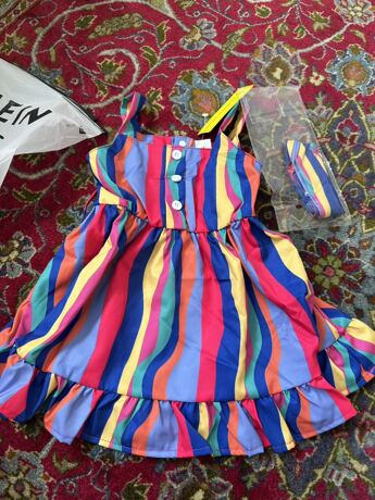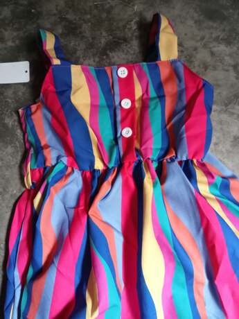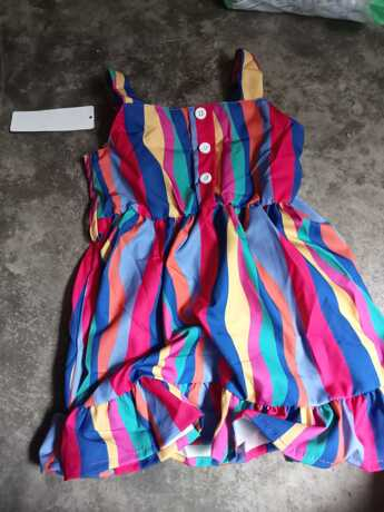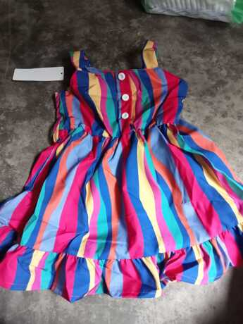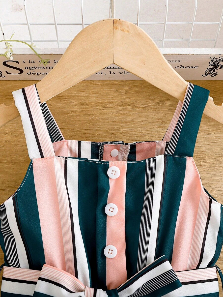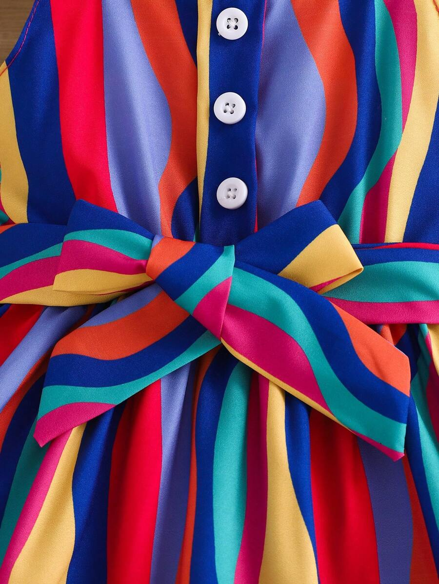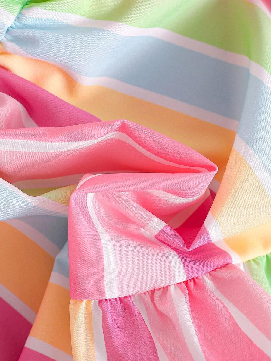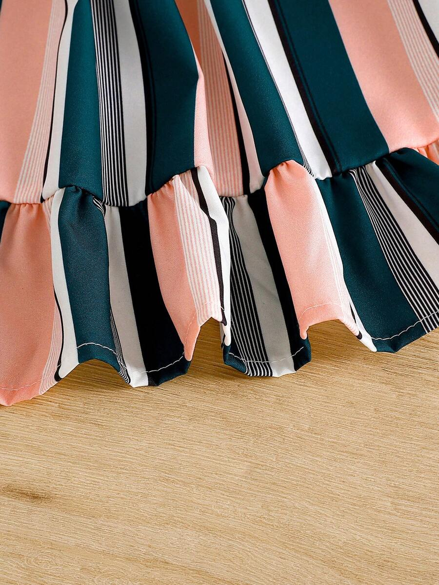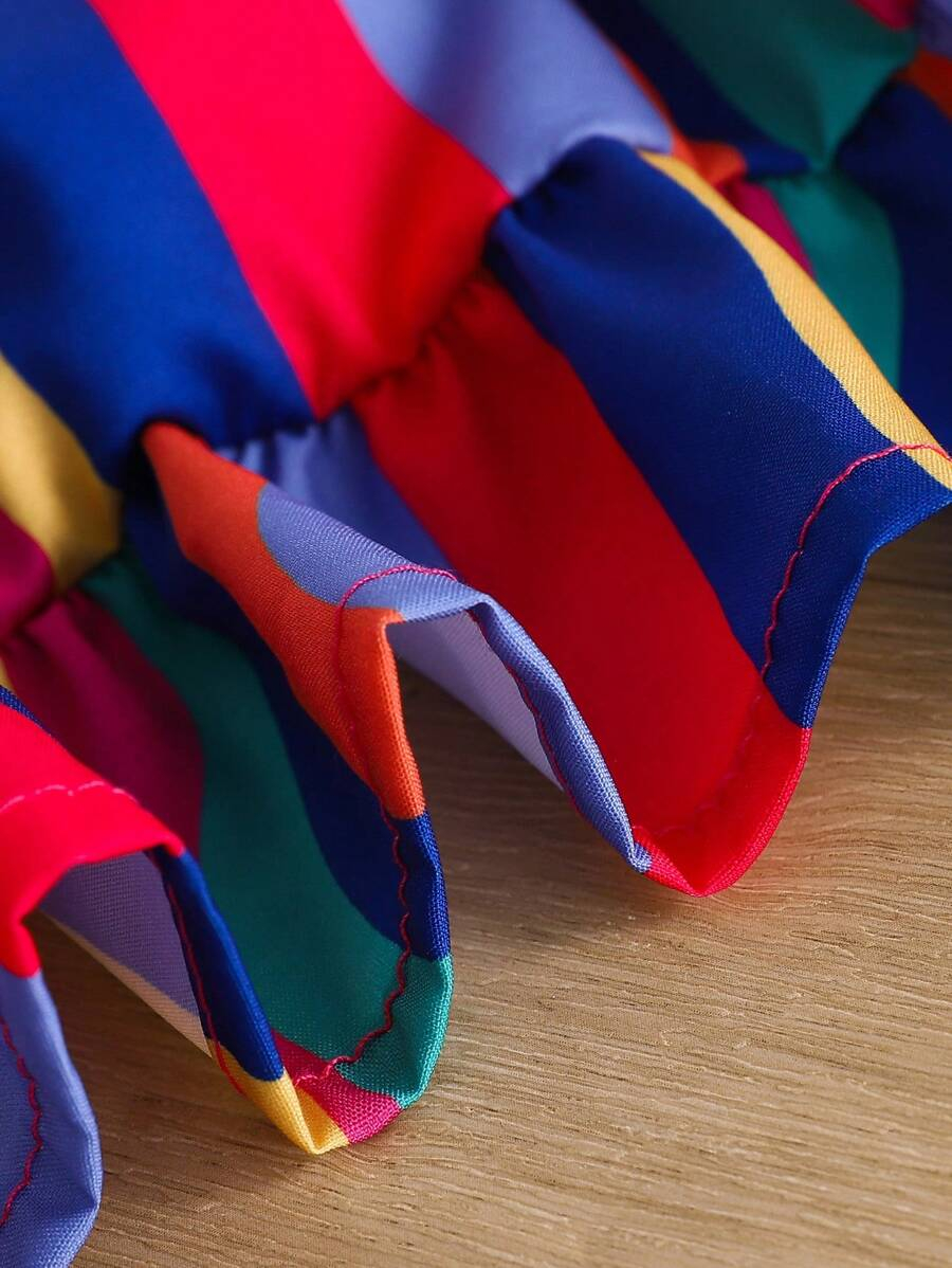 SHEIN Infant/Baby Girl Colorful Stripe Ruffle Hem Button Decorated Casual Dress, Summer Fashion & Cute BG00040