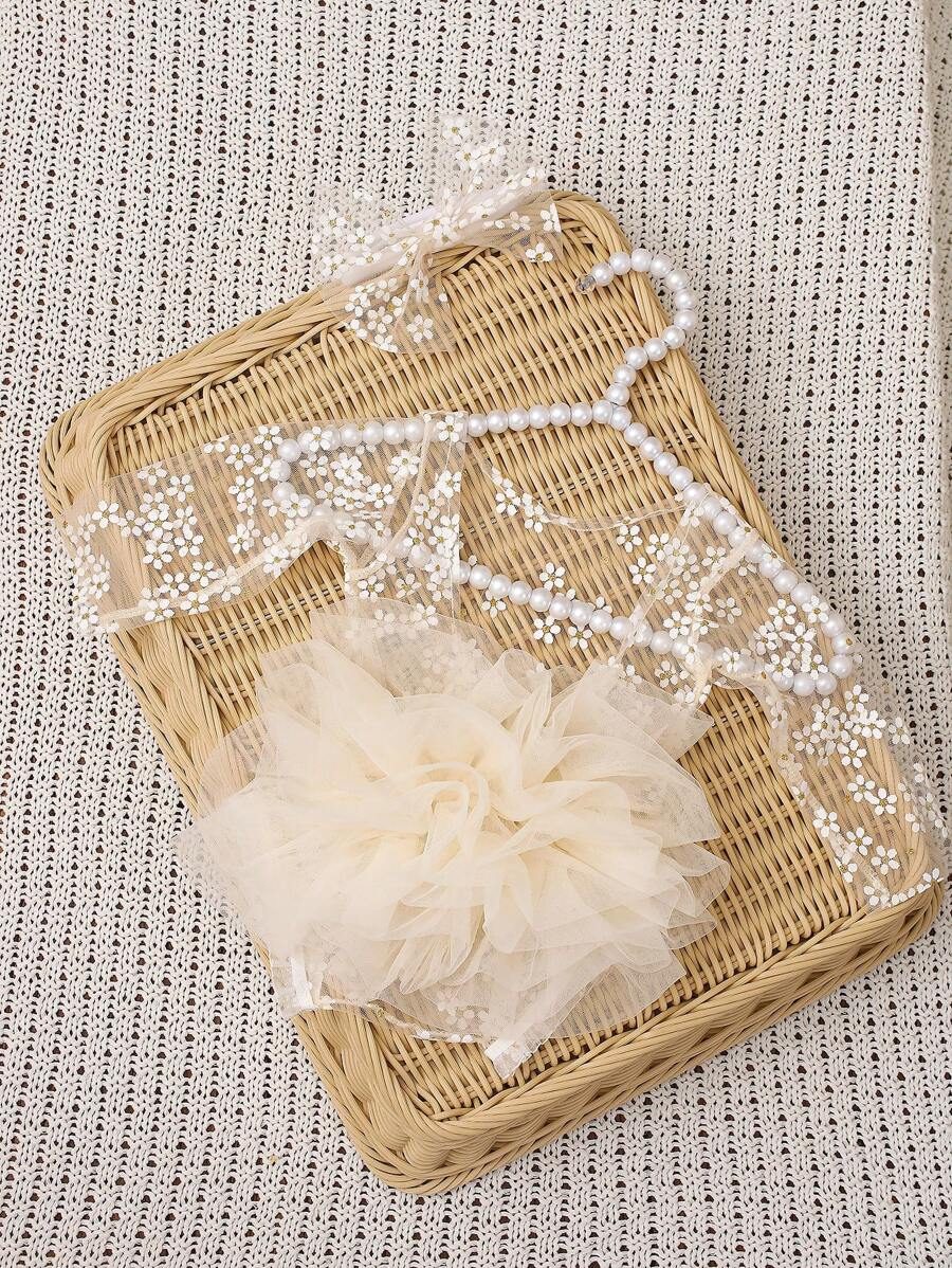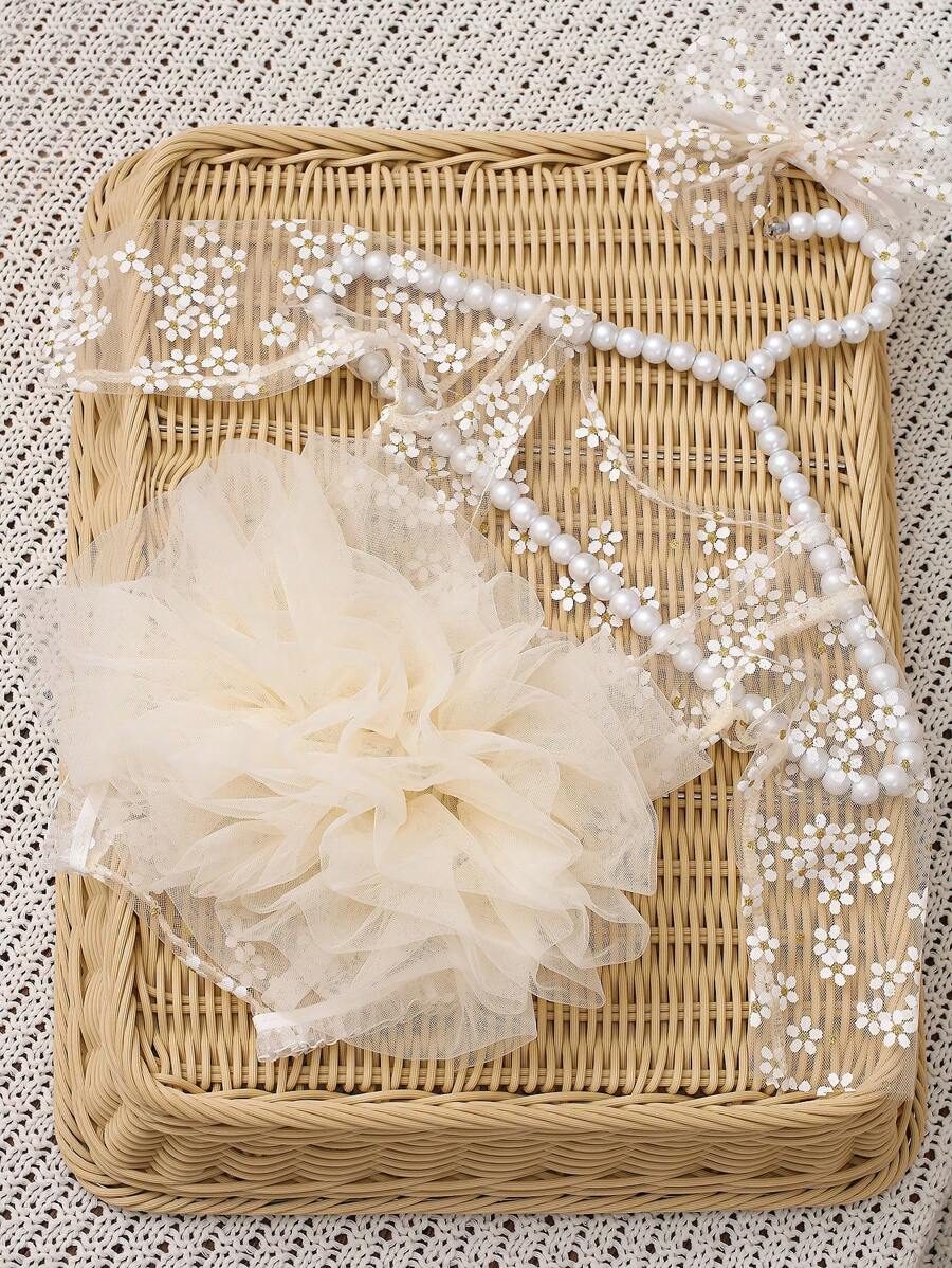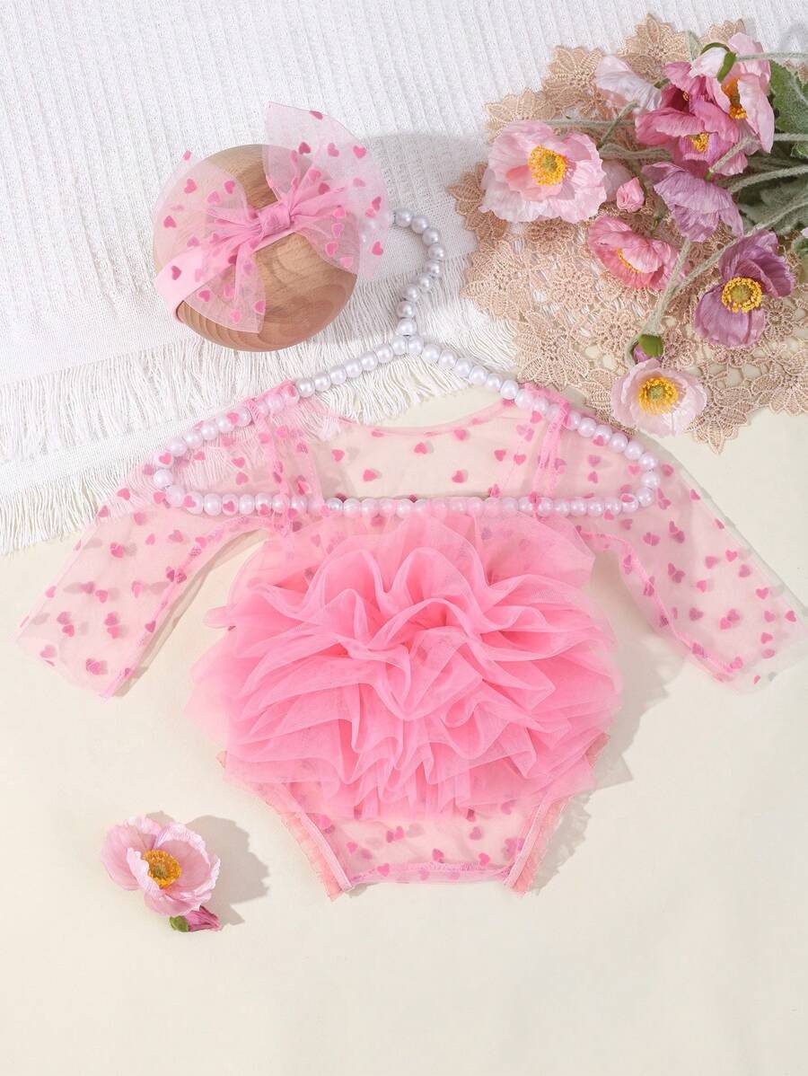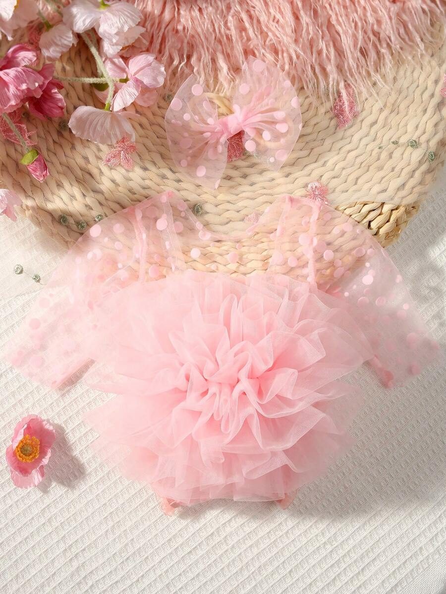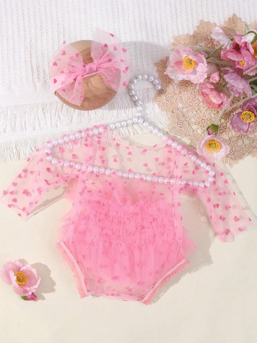 SHEIN Newborn Photography Outfit Props, Polka Dot Lace Romper & Headband Set NB00053