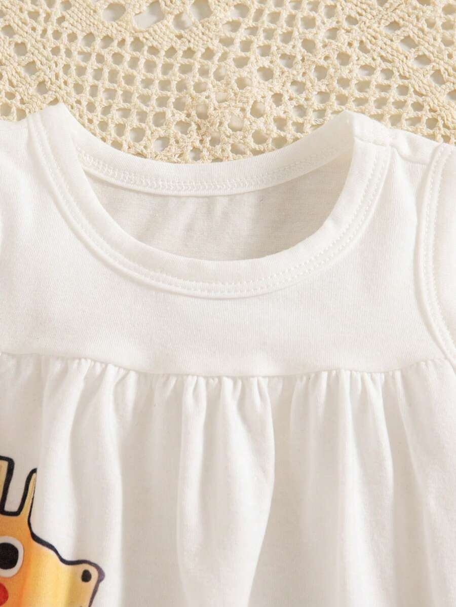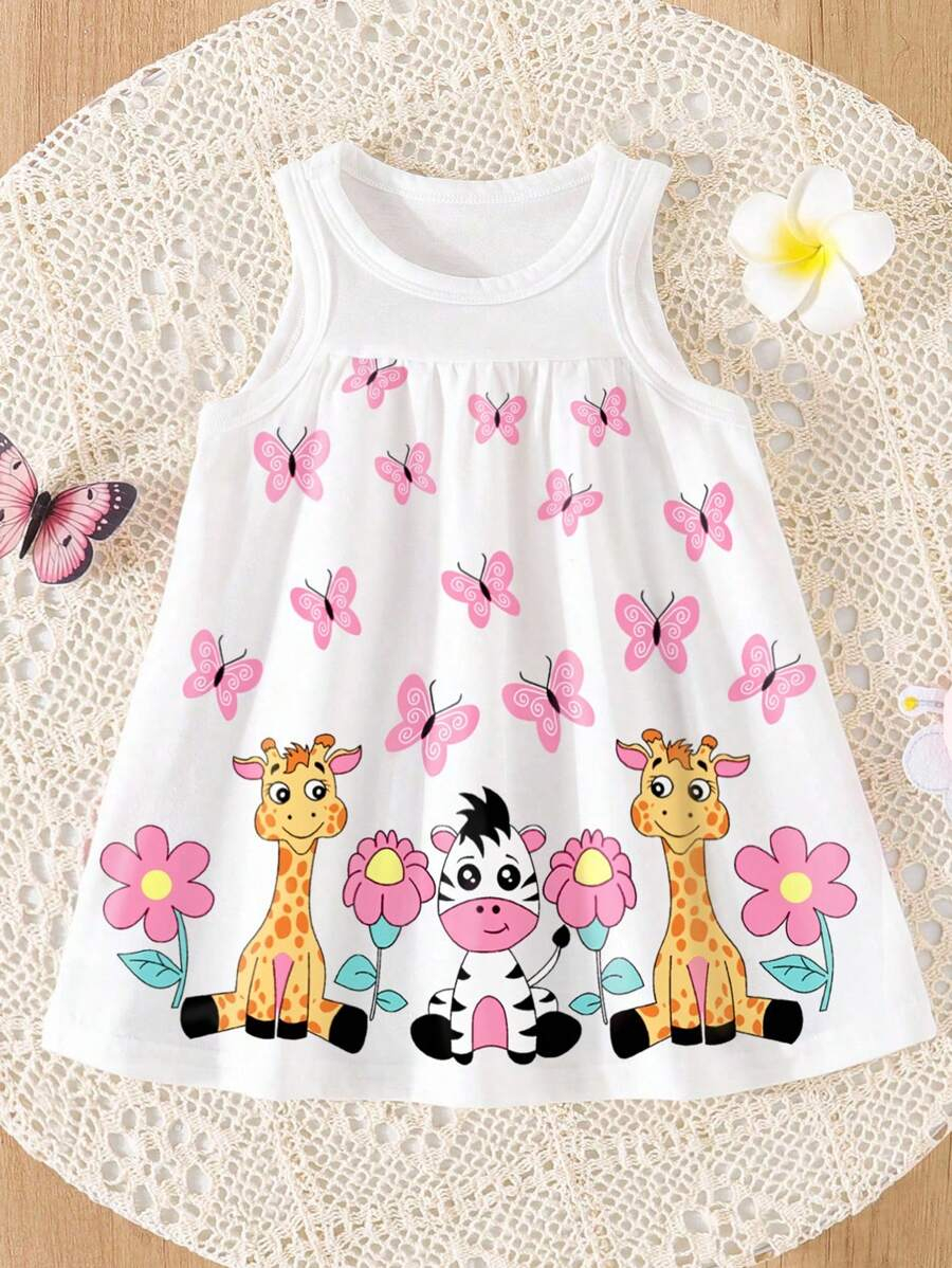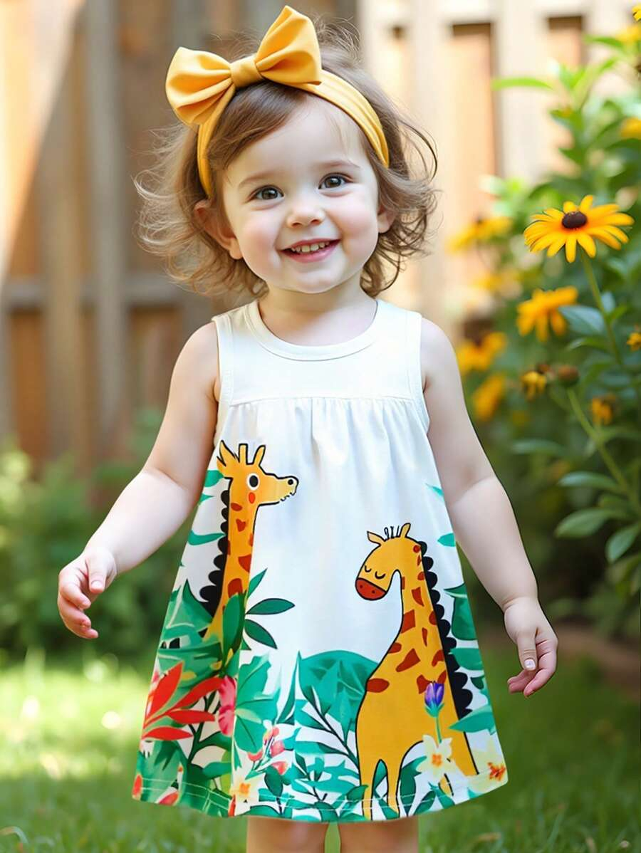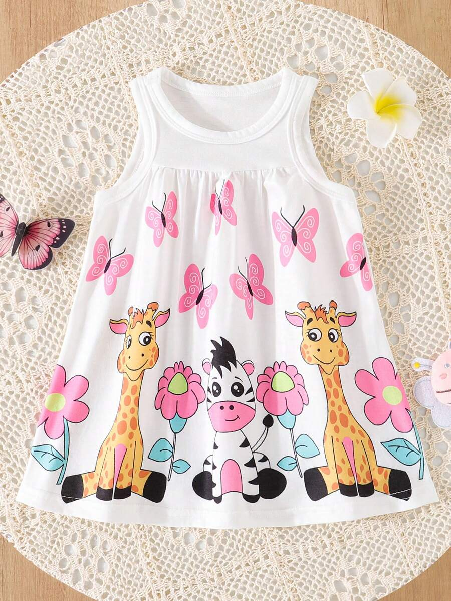 SHEIN Persoplay Kids Baby Girl Cute Cow & Giraffe Animal Design Sleeveless Dress, Spring/Summer BG00010