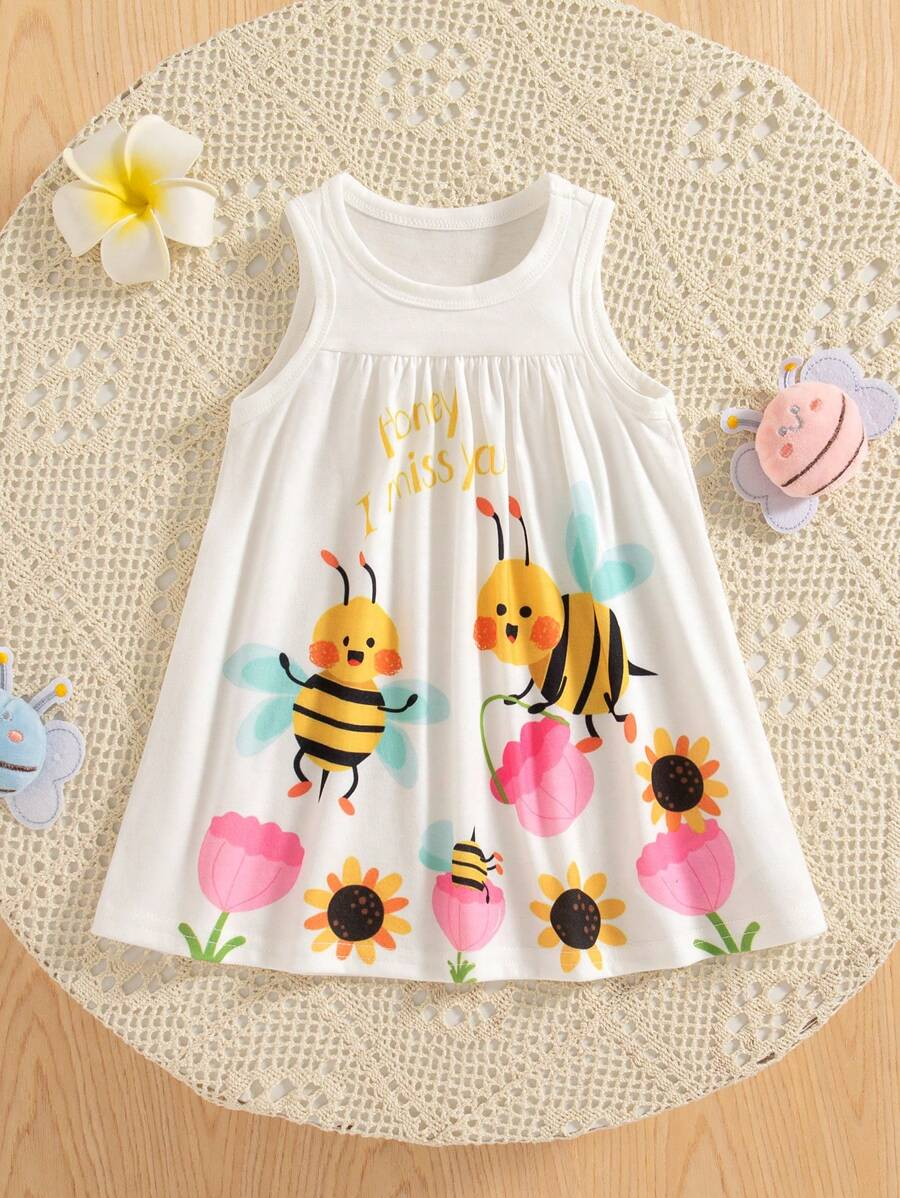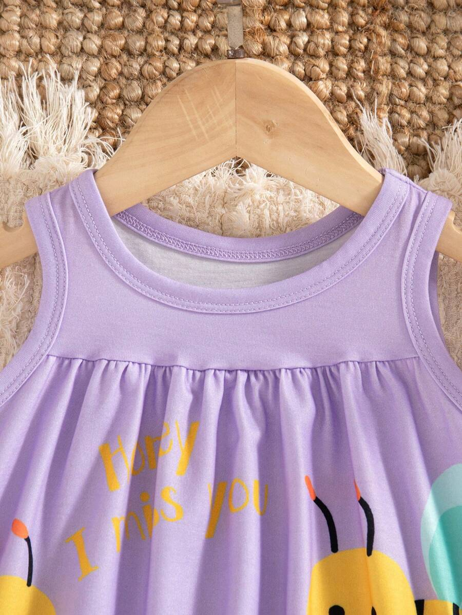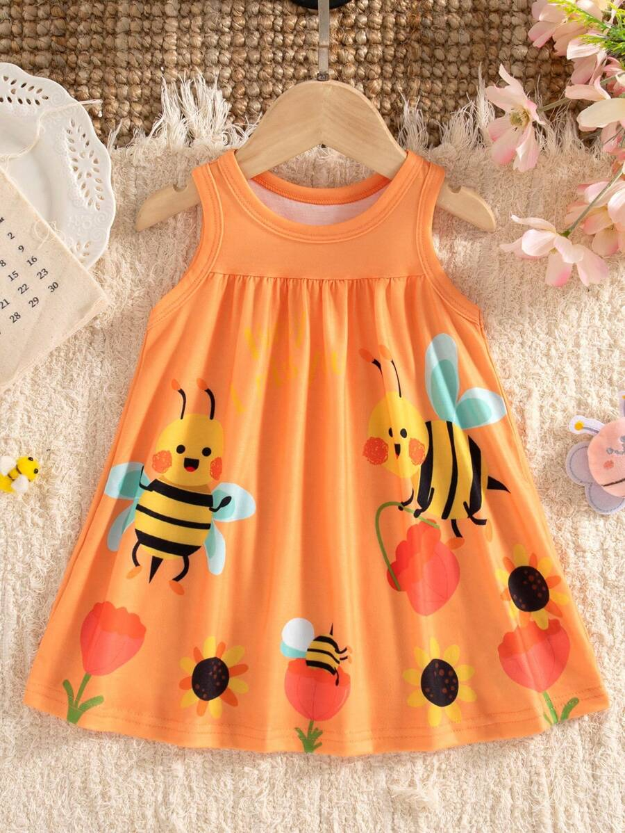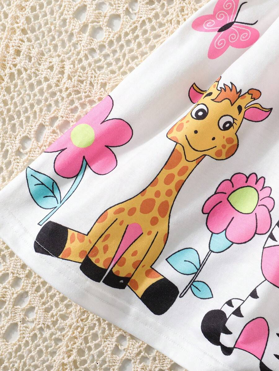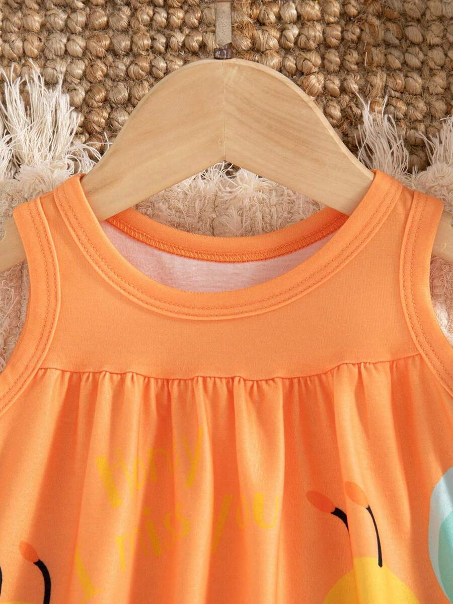 SHEIN Persoplay Kids Baby Girl Cute Cow & Giraffe Animal Design Sleeveless Dress, Spring/Summer BG00010