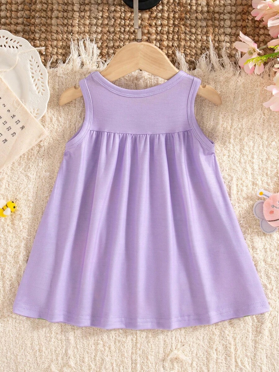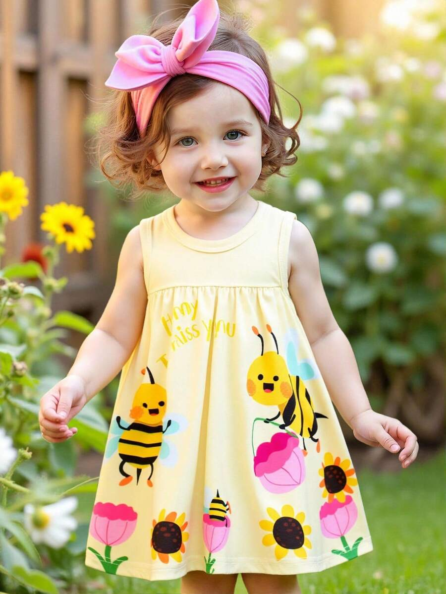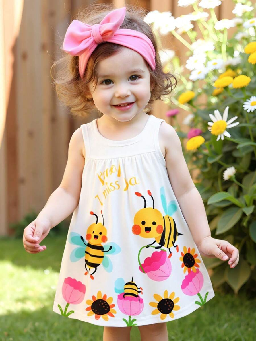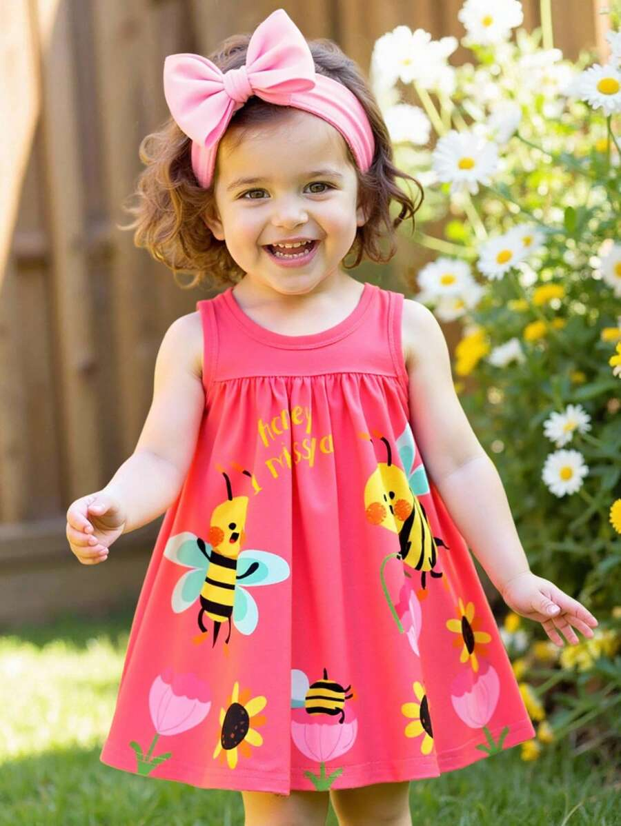 SHEIN Persoplay Kids Baby Girl Cute Cow & Giraffe Animal Design Sleeveless Dress, Spring/Summer BG00010