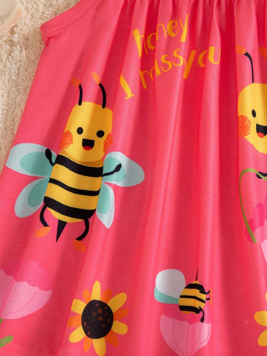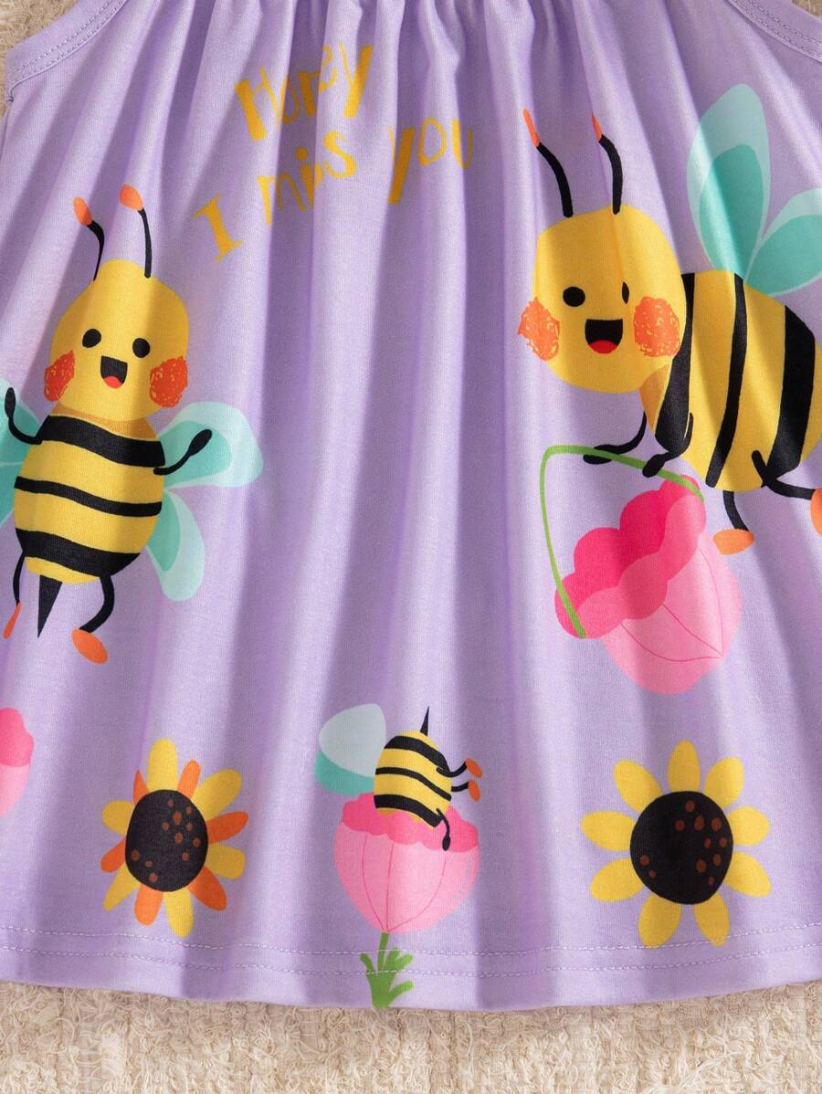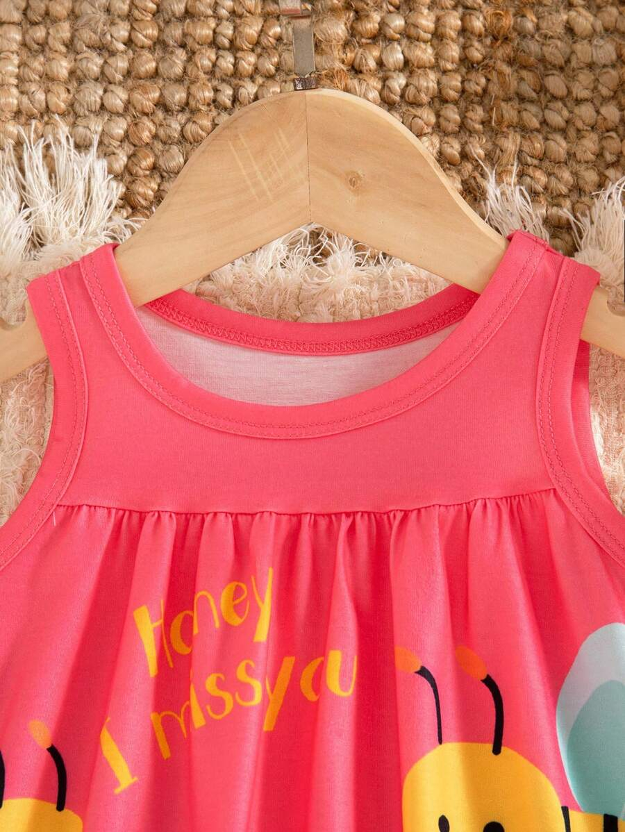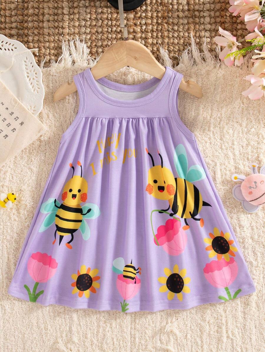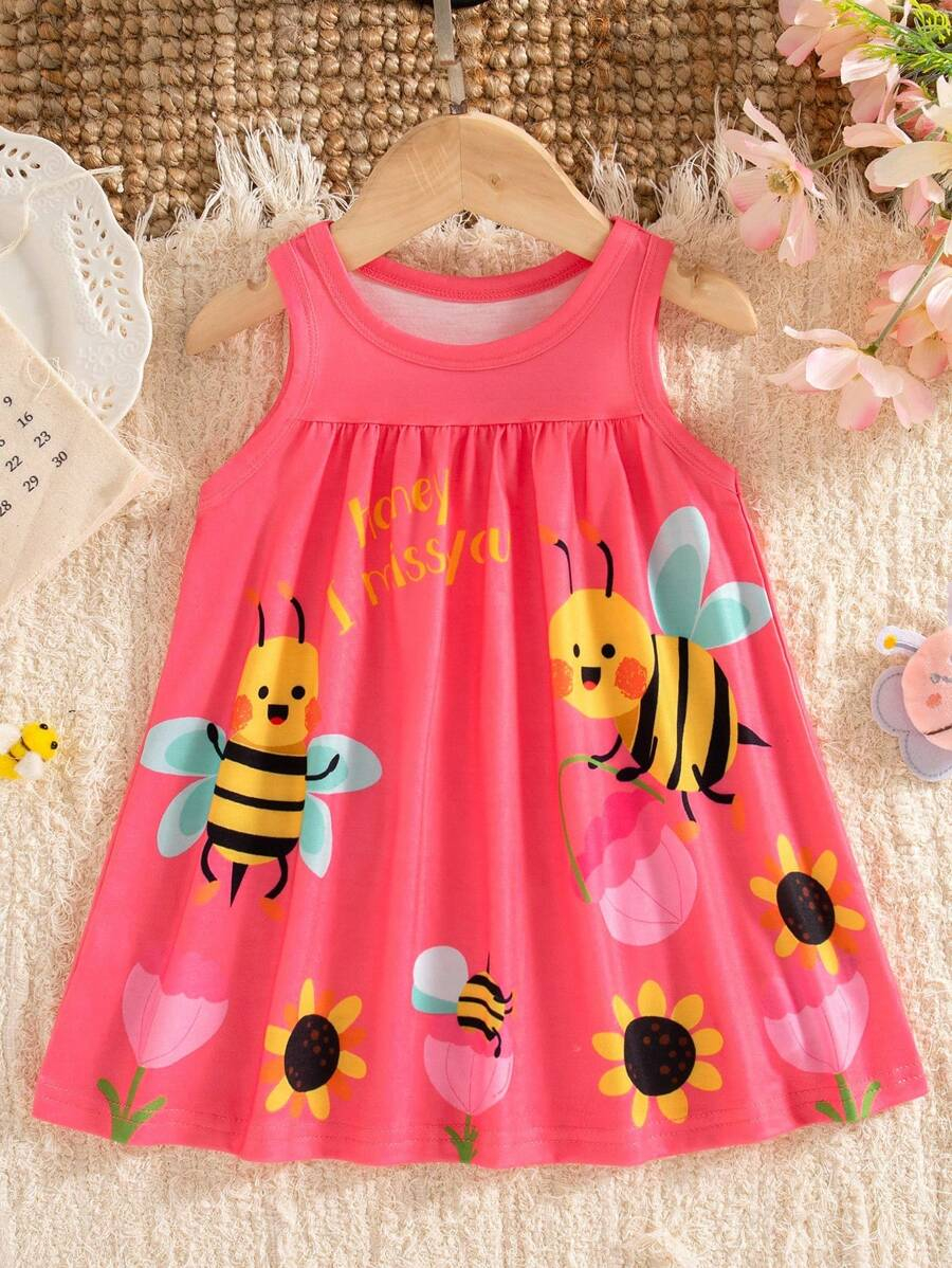 SHEIN Persoplay Kids Baby Girl Cute Cow & Giraffe Animal Design Sleeveless Dress, Spring/Summer BG00010