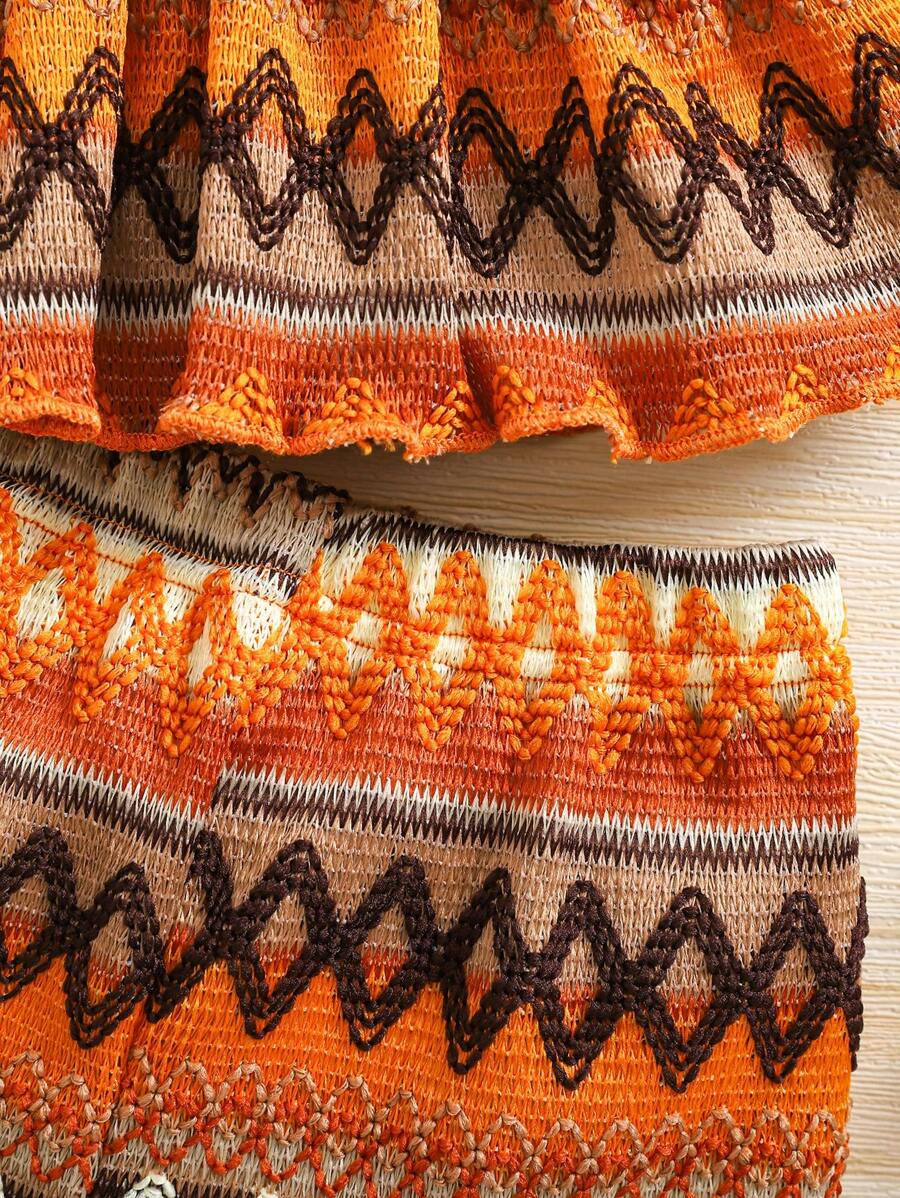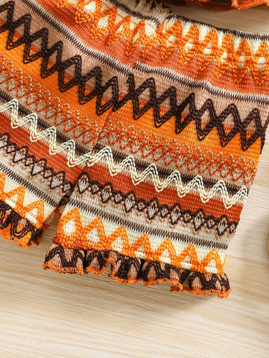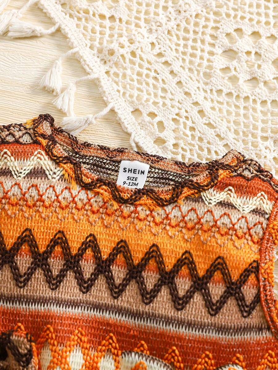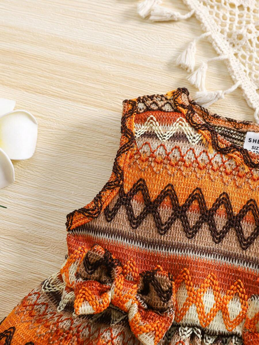SHEIN Vintaside Kids 2pcs Set Baby Girl Casual Adorable Vacation Crochet Bohemian Bowknot Front Sleeveless Top And Ruffle Hem Loose Wide Leg Shorts, Spring/Summer New Arrivals BG00044