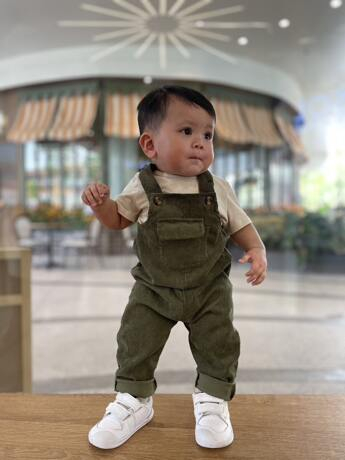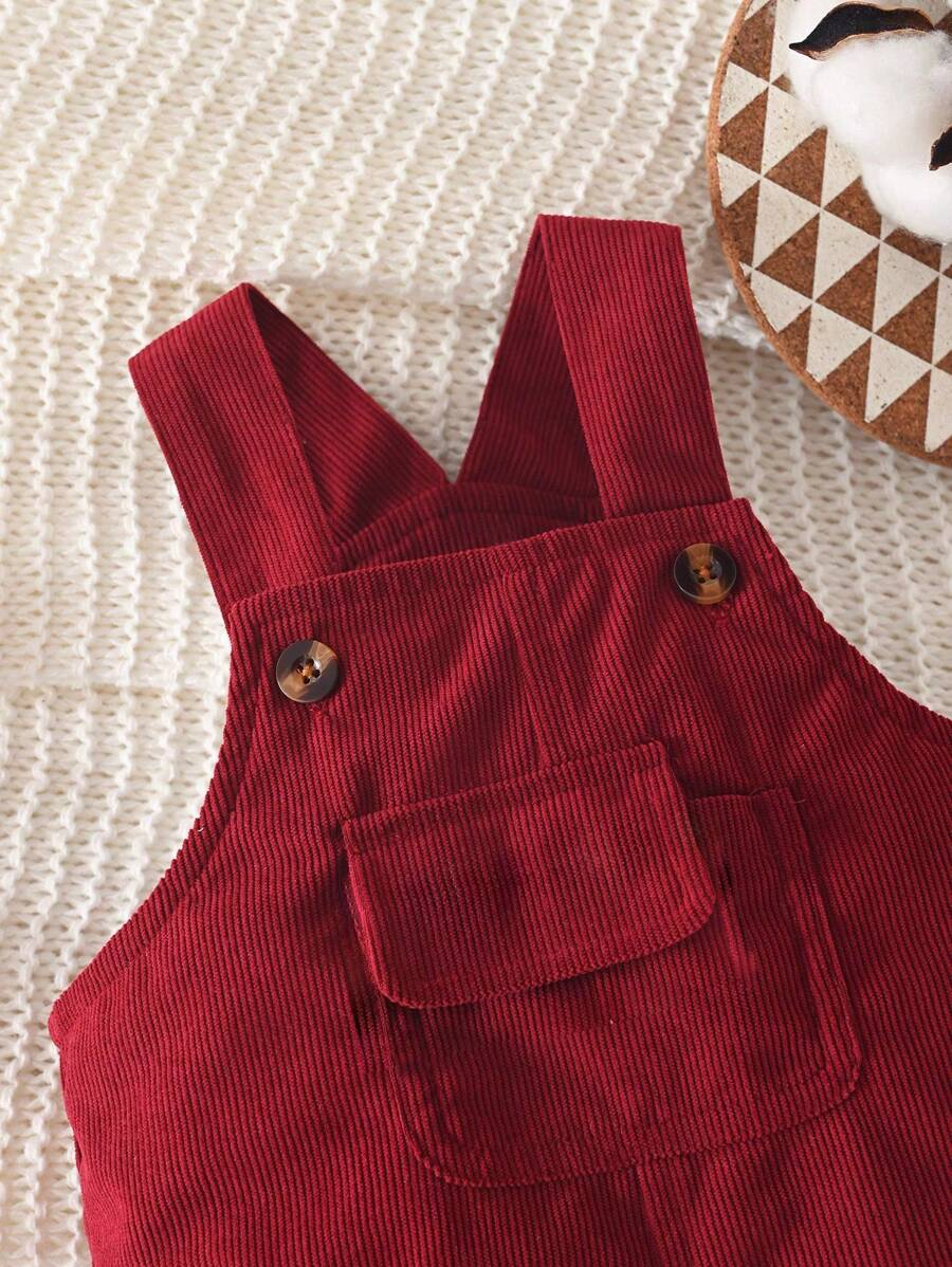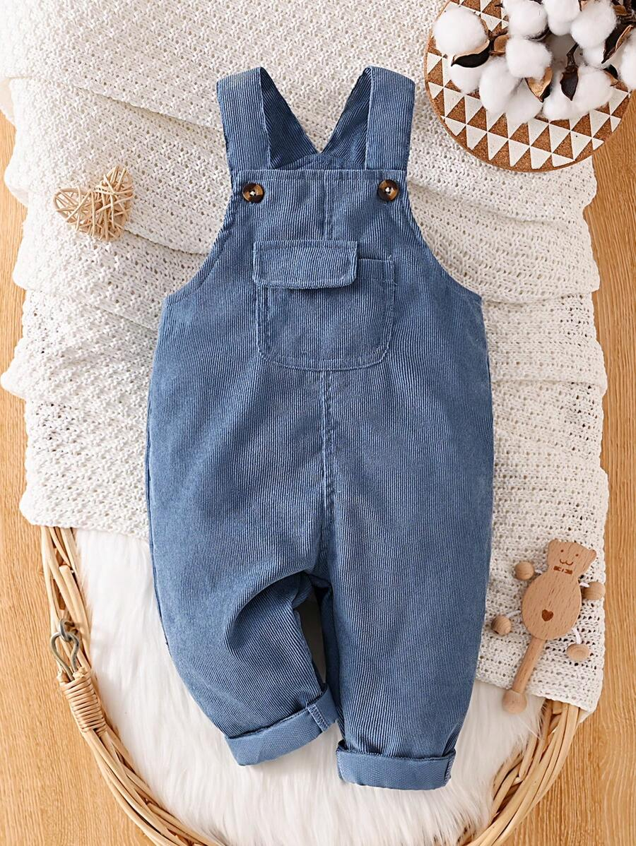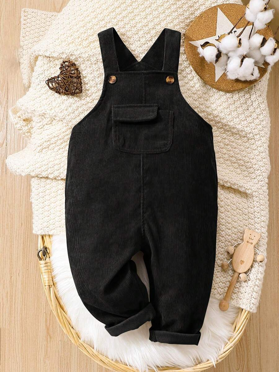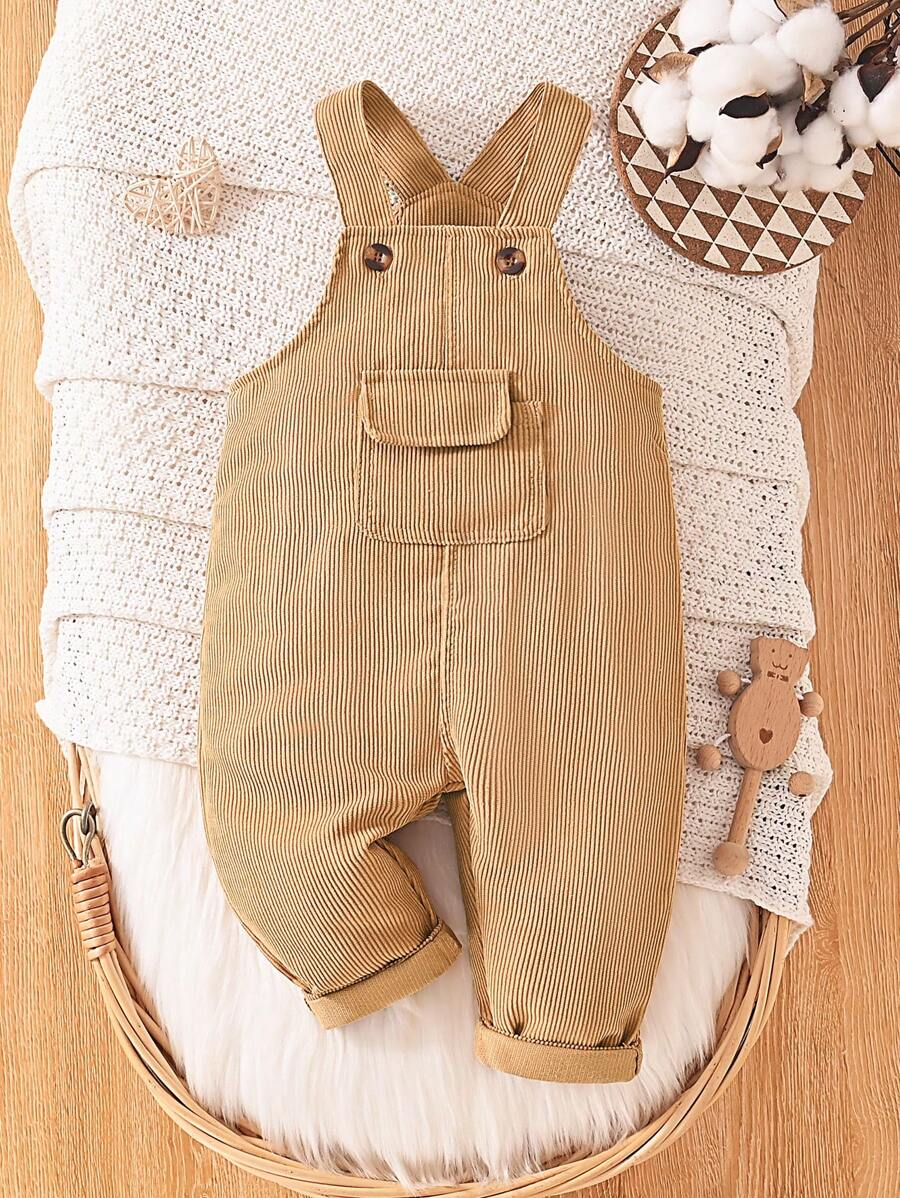 SHEIN Vintaside Kids Solid Color Cargo Pocket Casual Bib Pants For Baby Boy BB00039