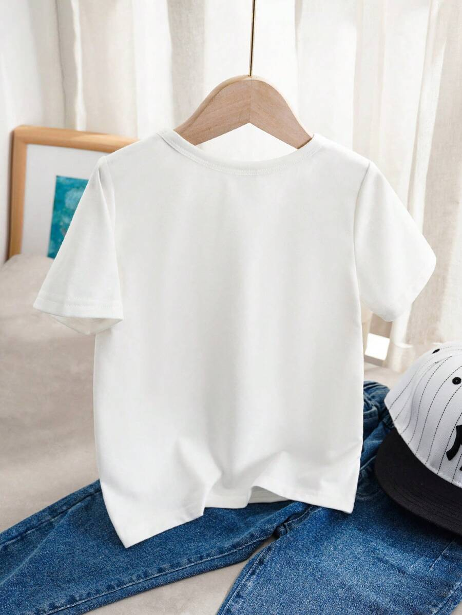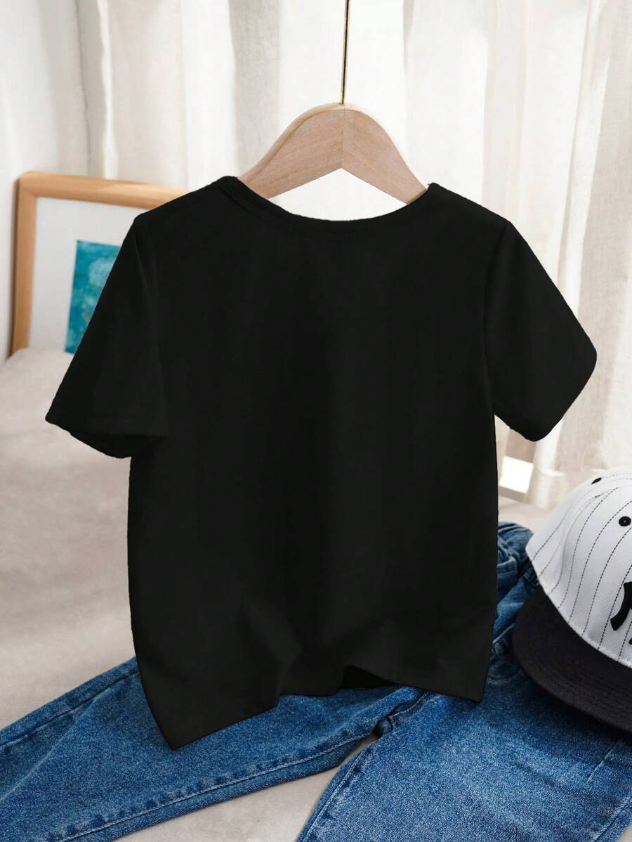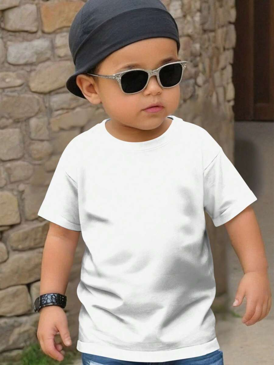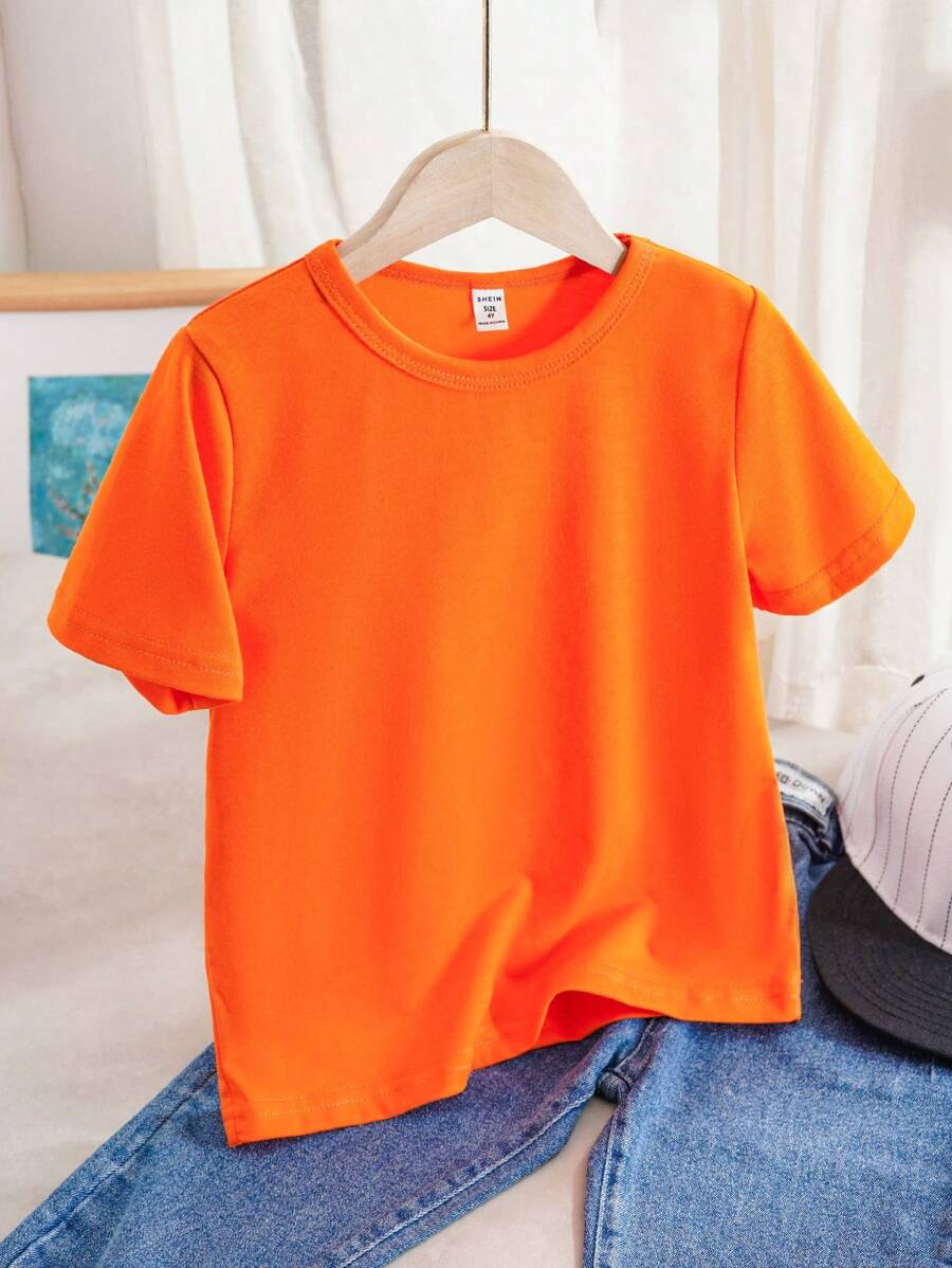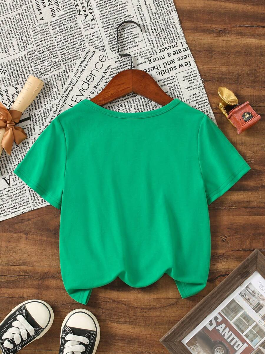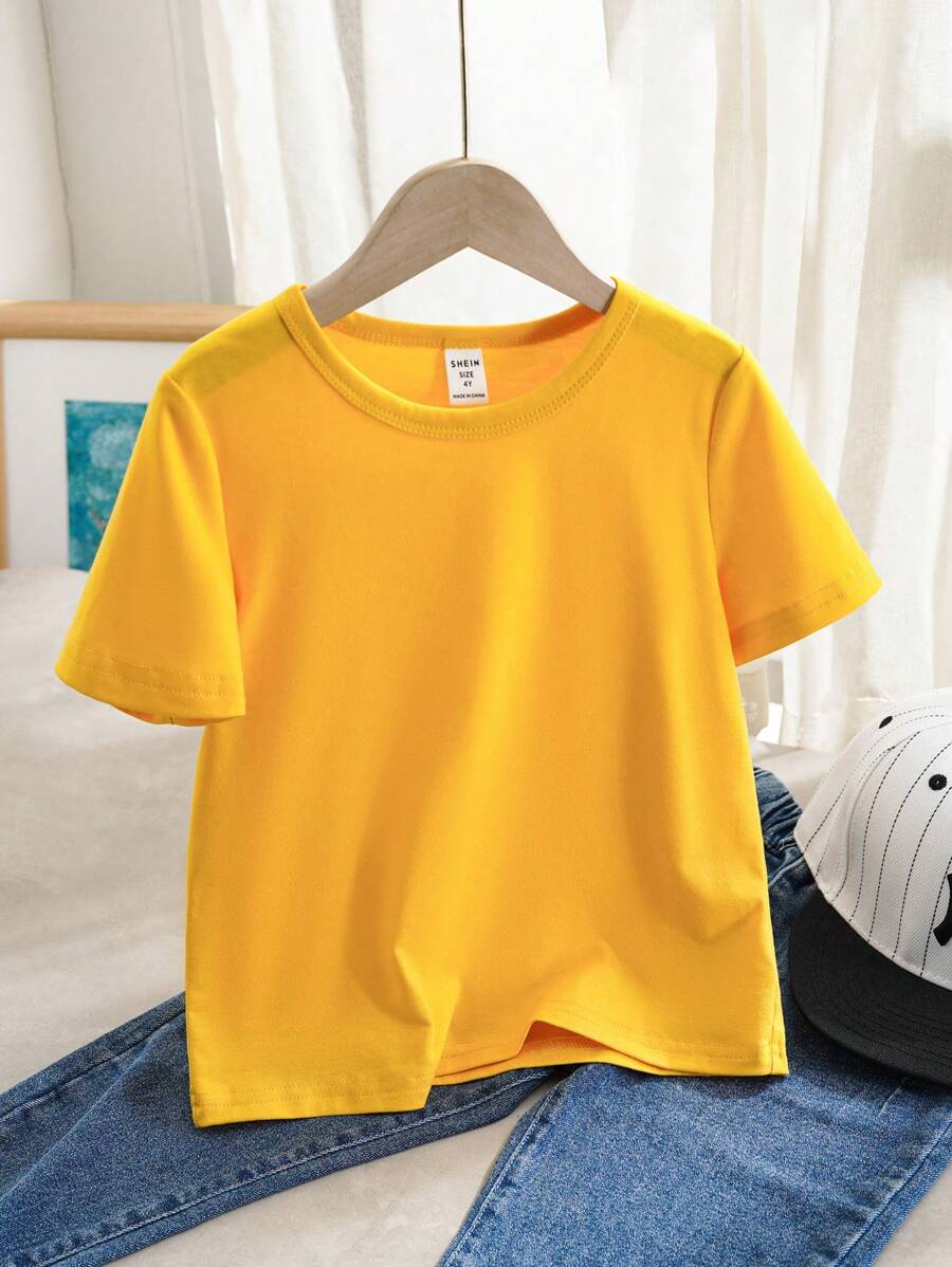 SHEIN Young Boy Casual Solid Color Short Sleeve Round Neck T-Shirt In Green, Suitable For Summer Green Tops For Kids YB00067