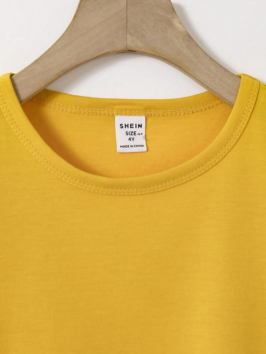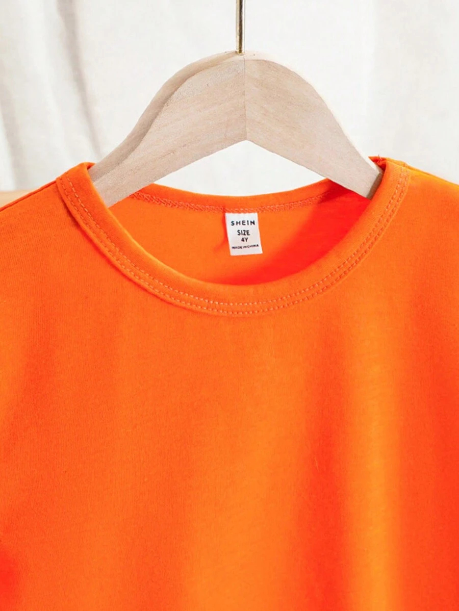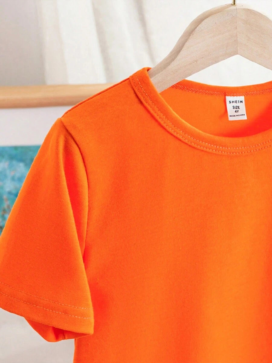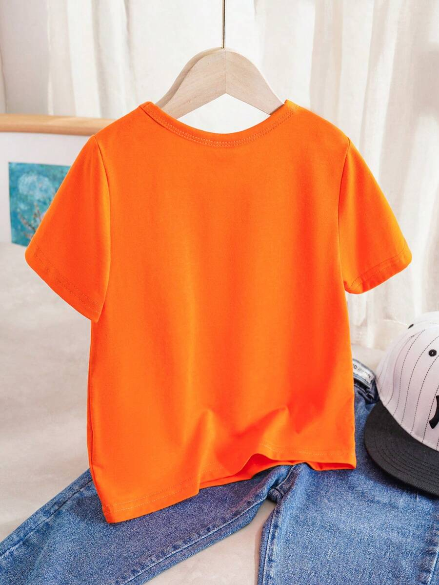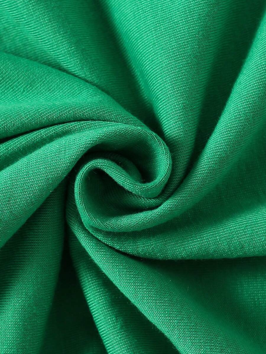 SHEIN Young Boy Casual Solid Color Short Sleeve Round Neck T-Shirt In Green, Suitable For Summer Green Tops For Kids YB00067