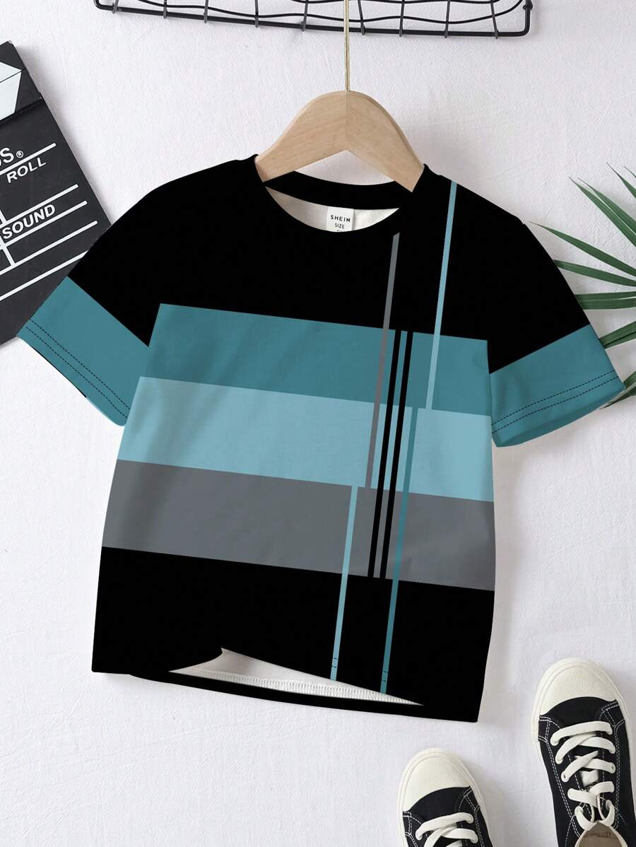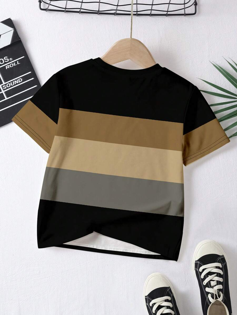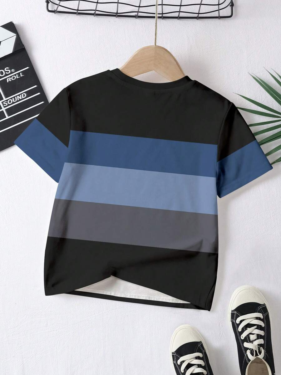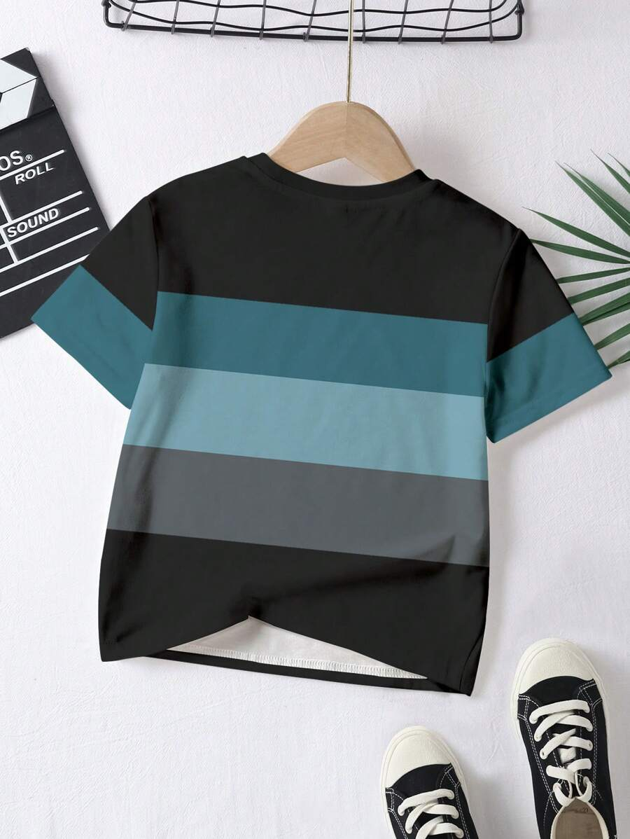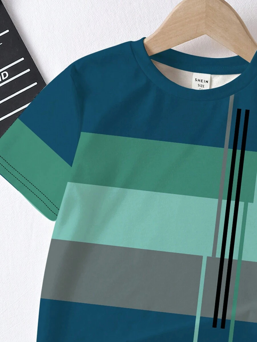 SHEIN Young Boy Casual Striped Pattern Round Neck Loose Short Sleeve T-Shirt, Summer YB00045