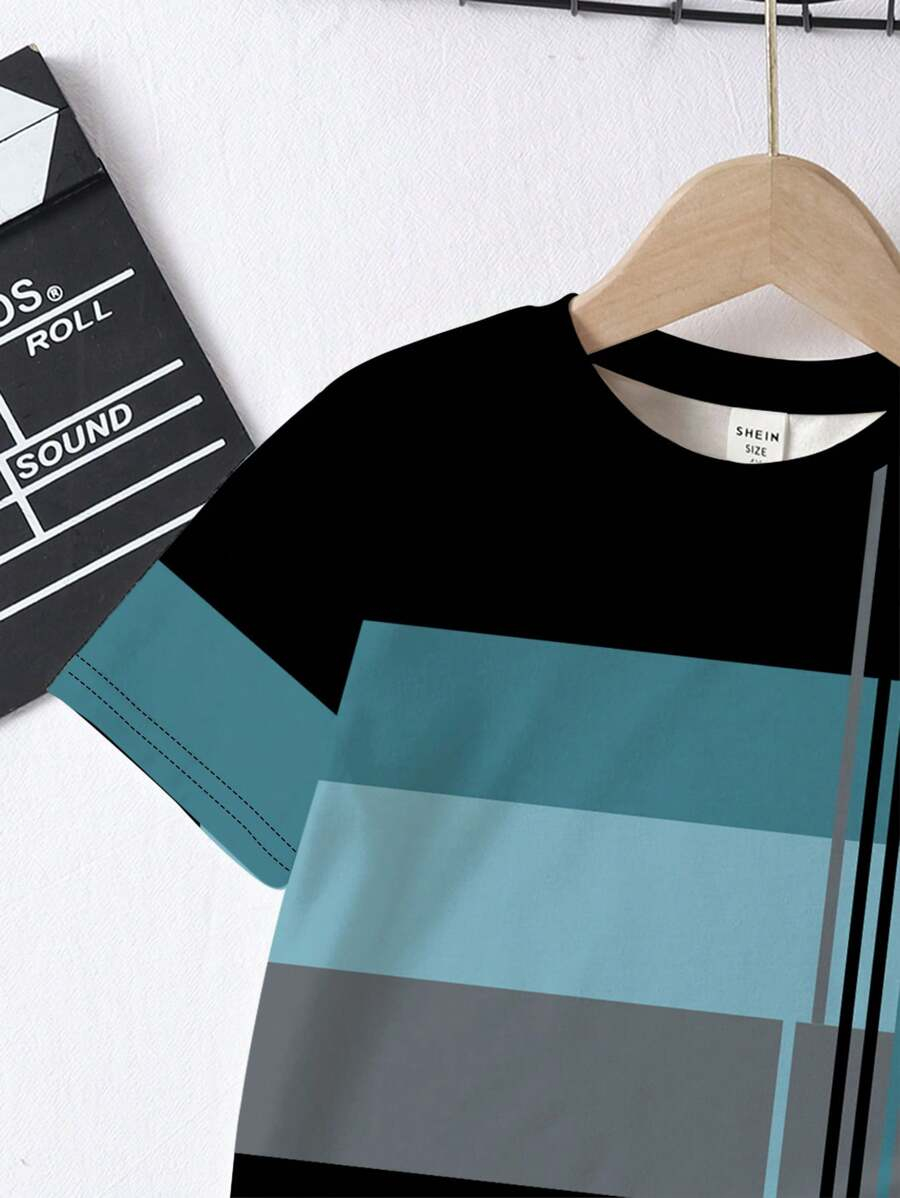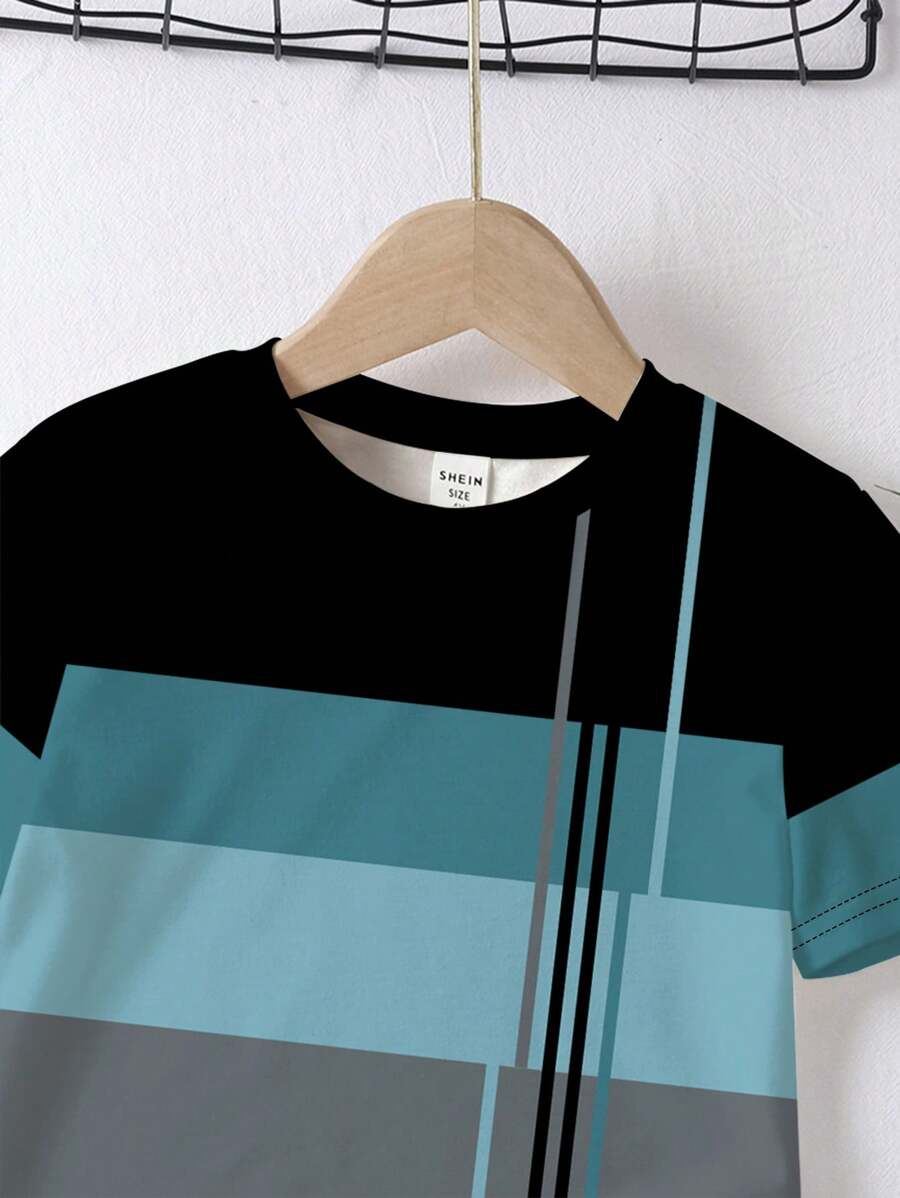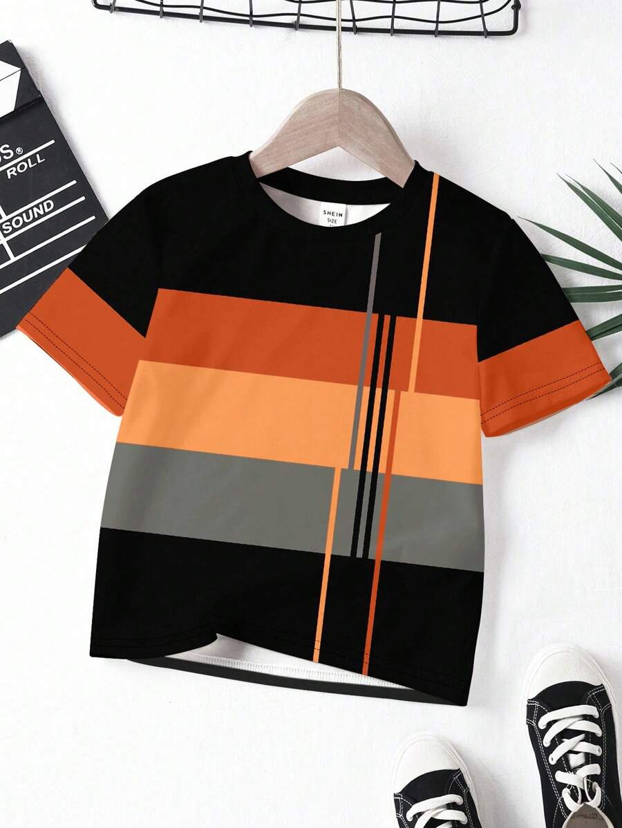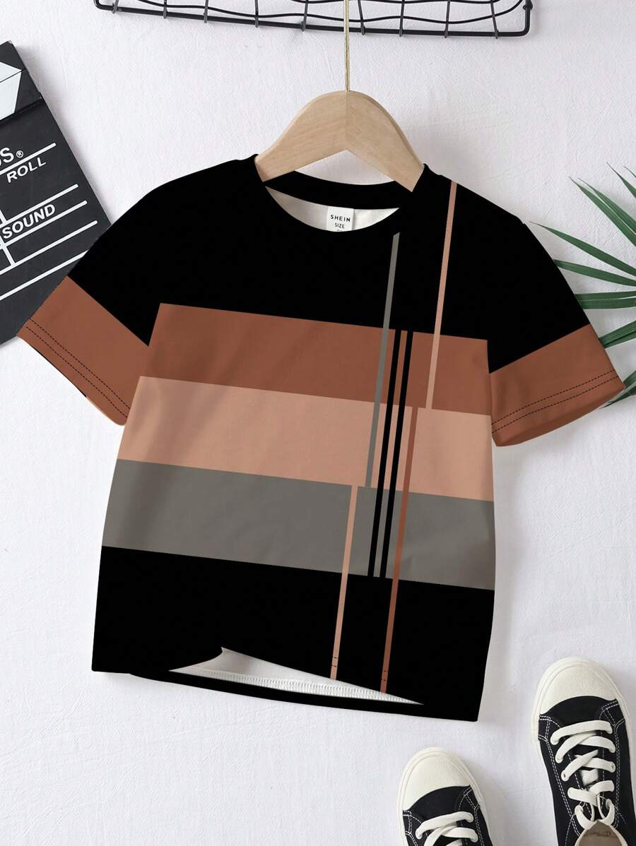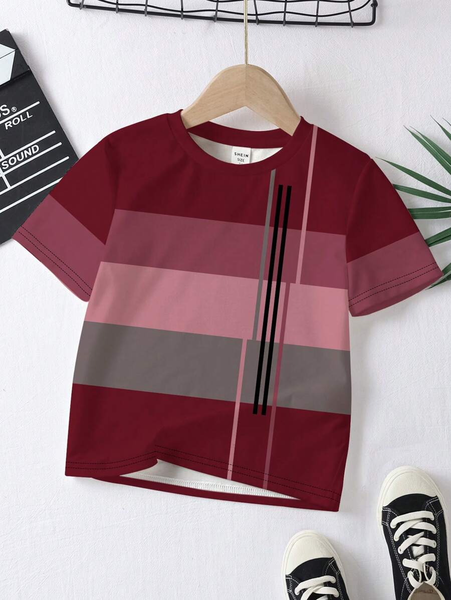 SHEIN Young Boy Casual Striped Pattern Round Neck Loose Short Sleeve T-Shirt, Summer YB00045