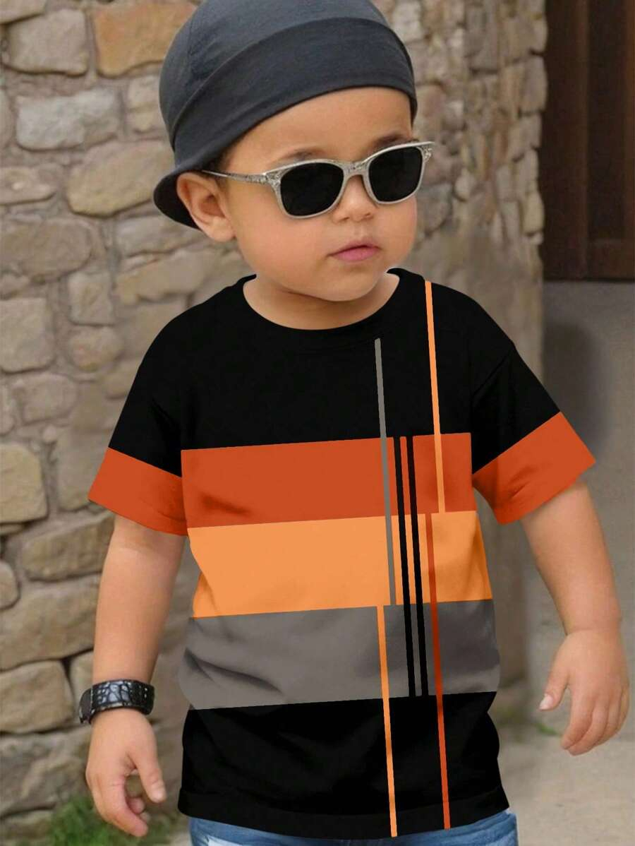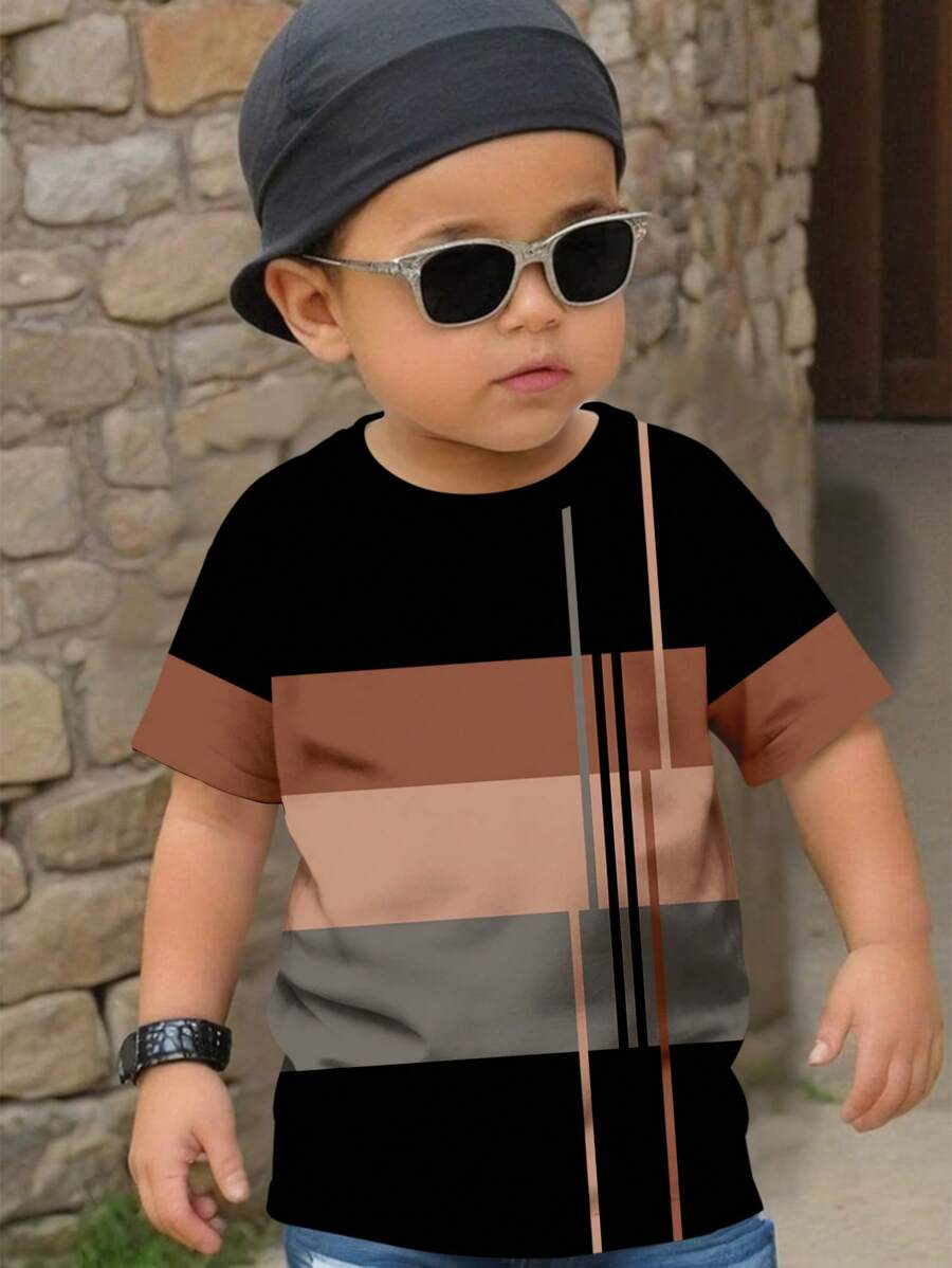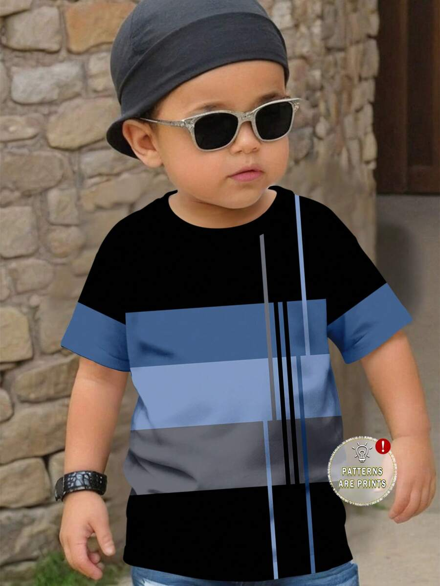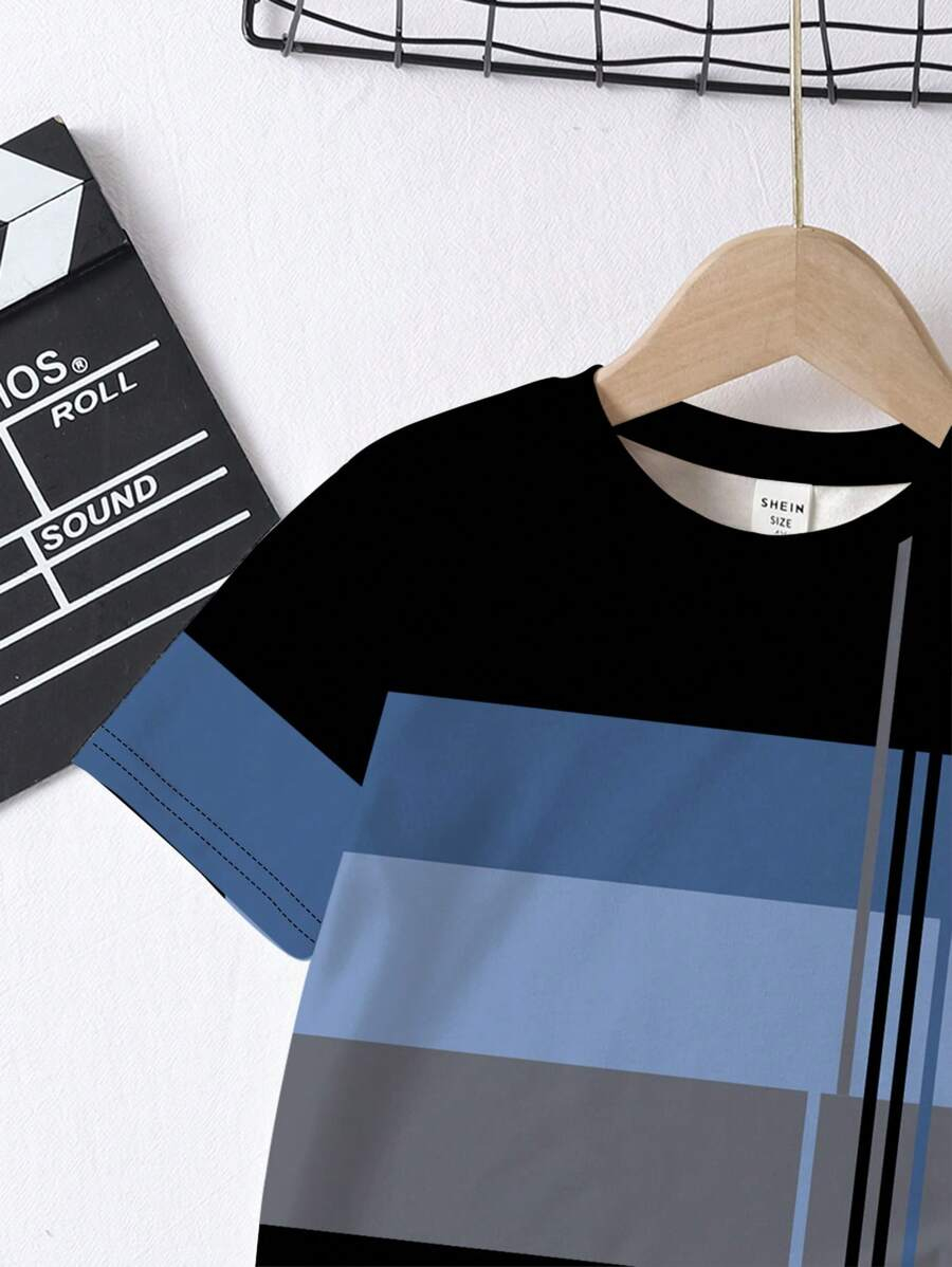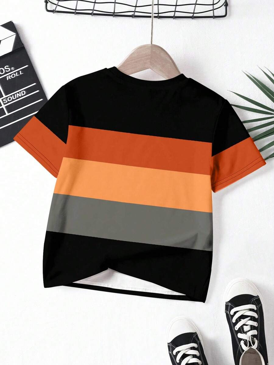 SHEIN Young Boy Casual Striped Pattern Round Neck Loose Short Sleeve T-Shirt, Summer YB00045