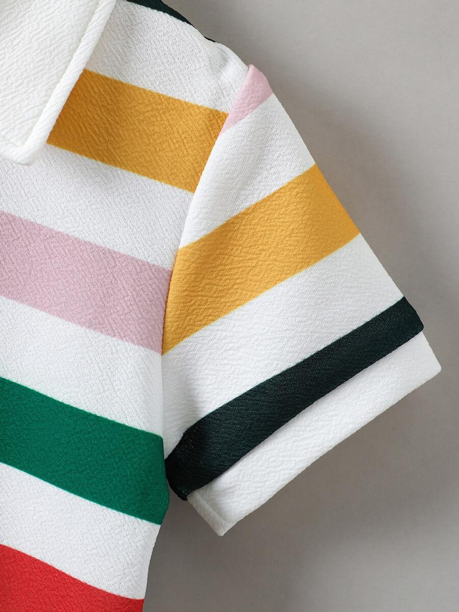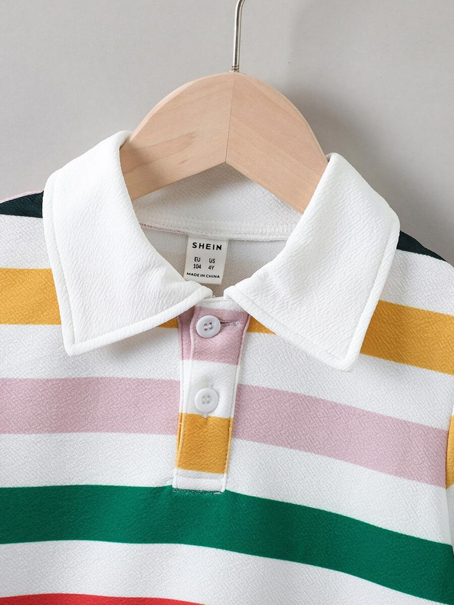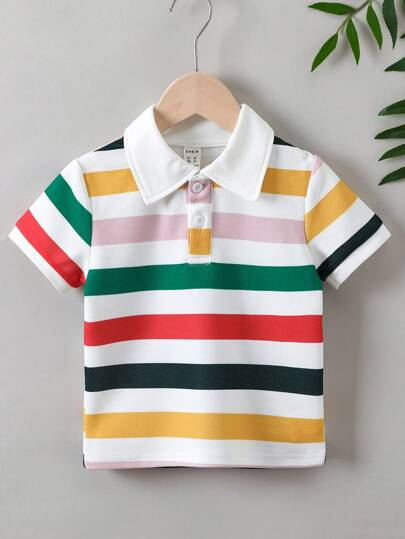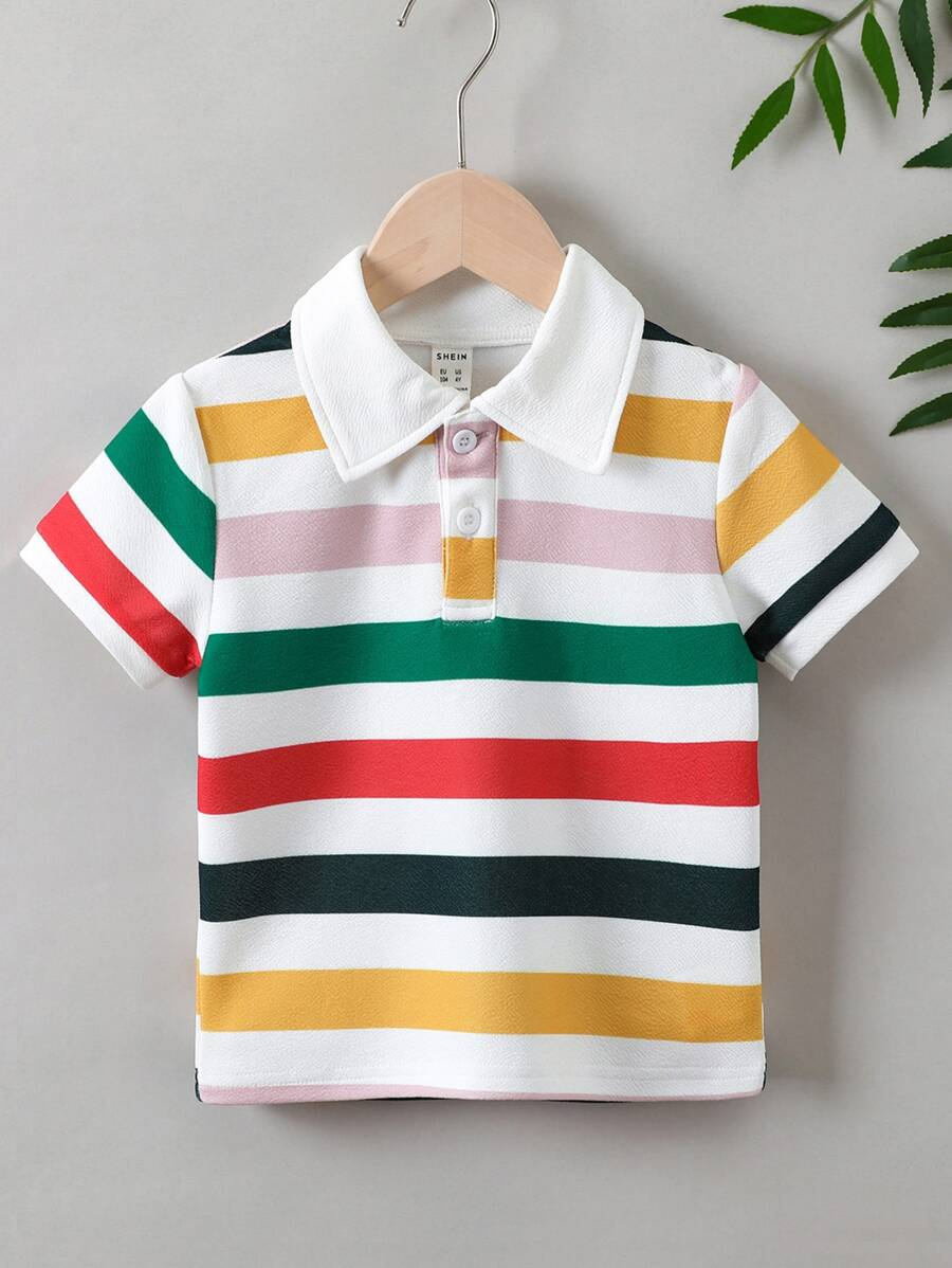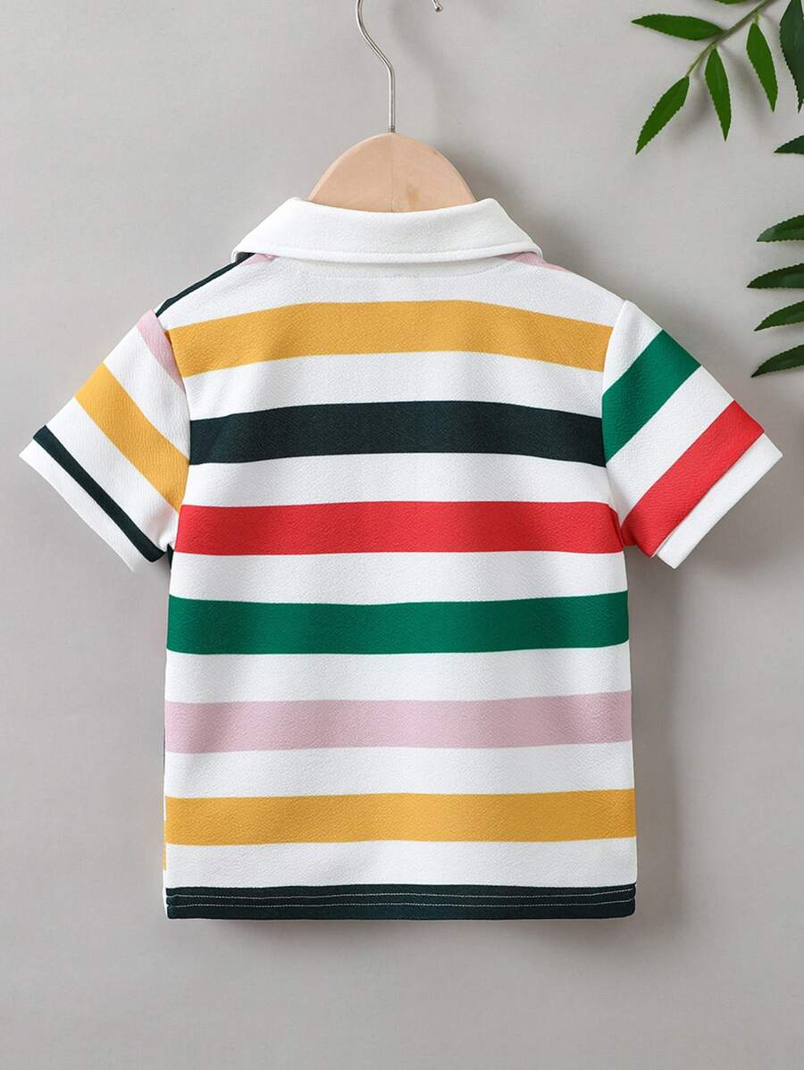 SHEIN Young Boy Colorful Striped Short Sleeve Polo Shirt, Casual & Active Outdoor/Back To School Cloth YB00016