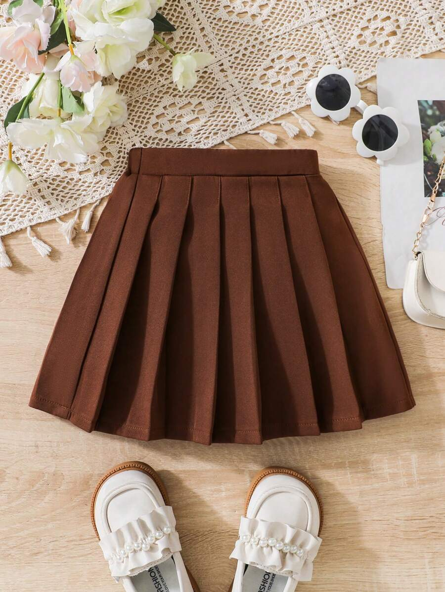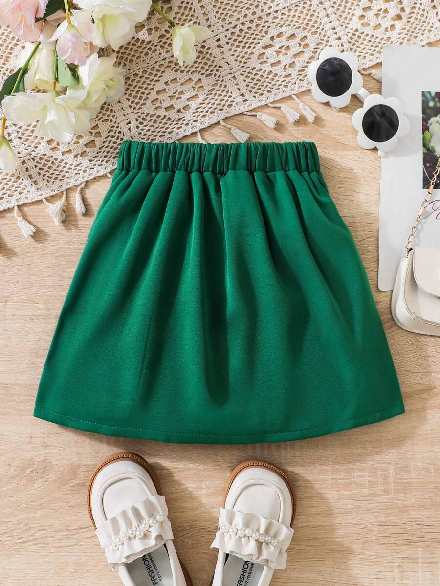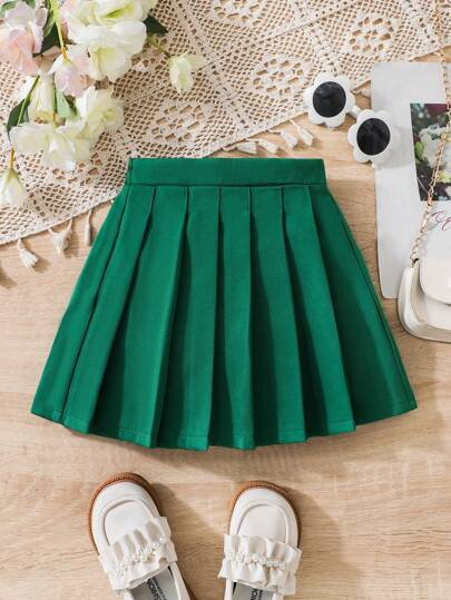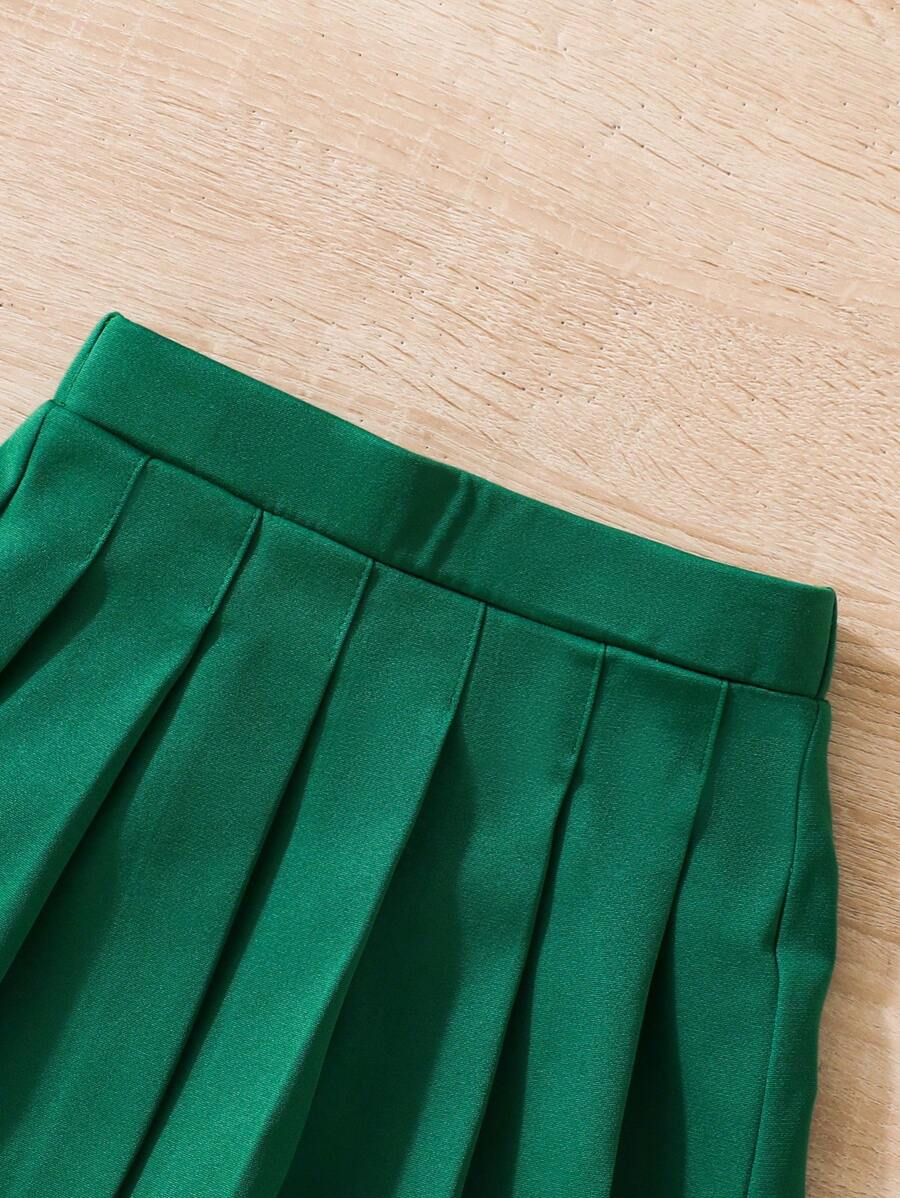 SHEIN Young Girl Pleated Mini Skirt, Fashion Dark Green, Suitable For Spring And Summer YG00049