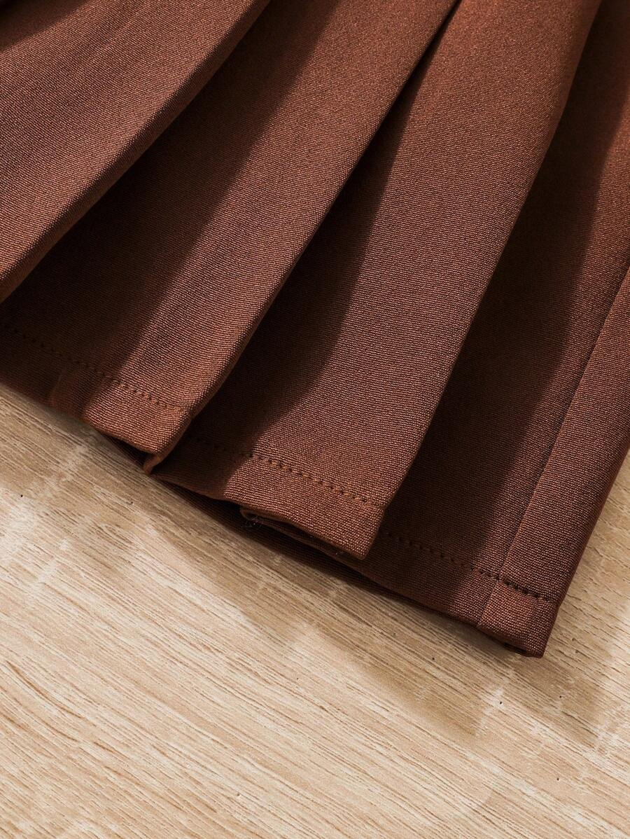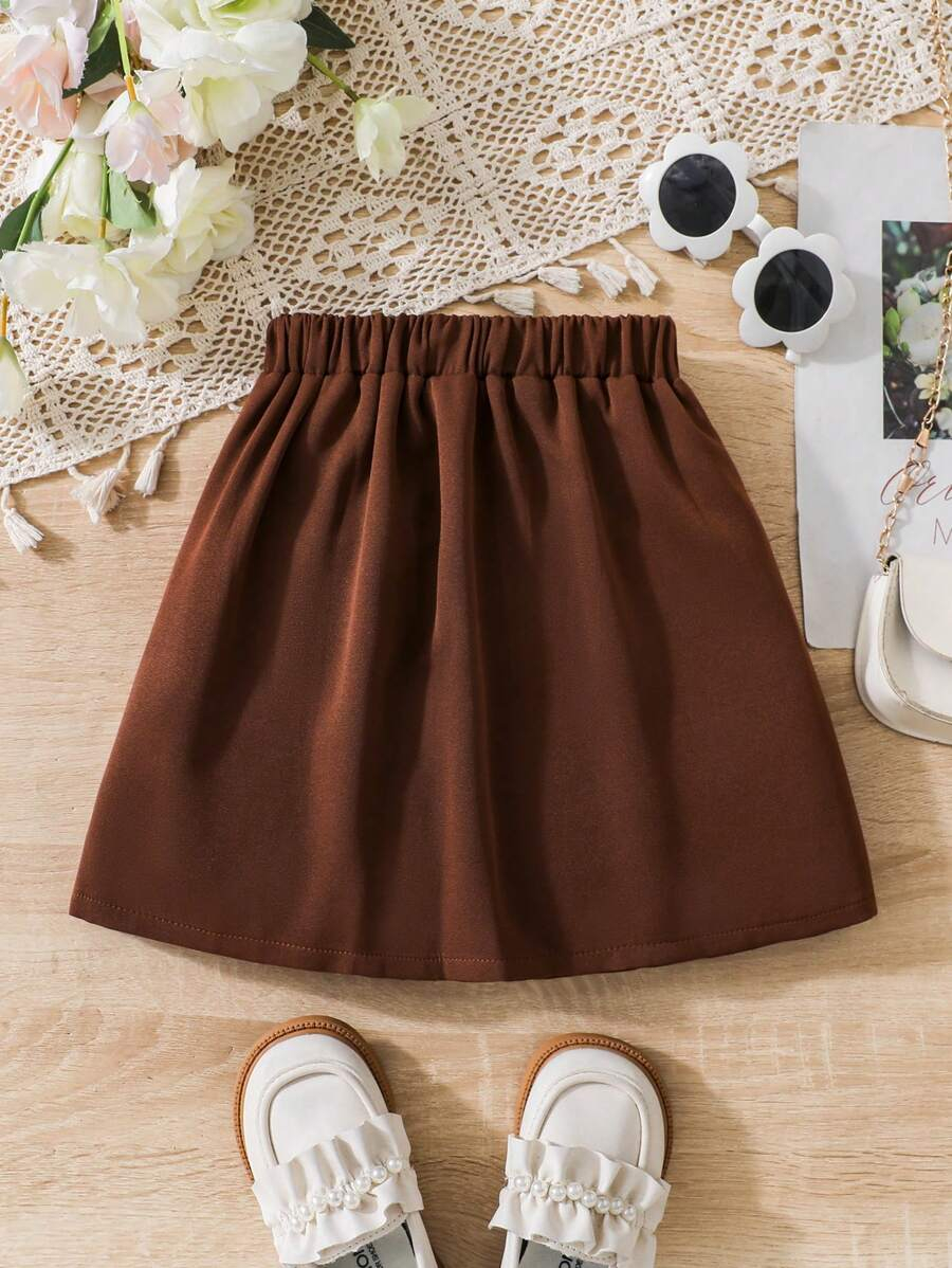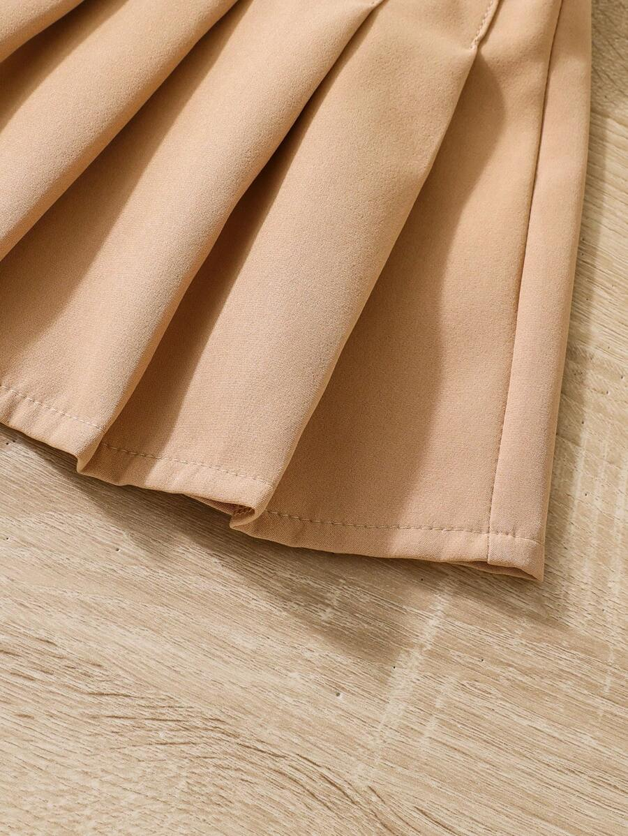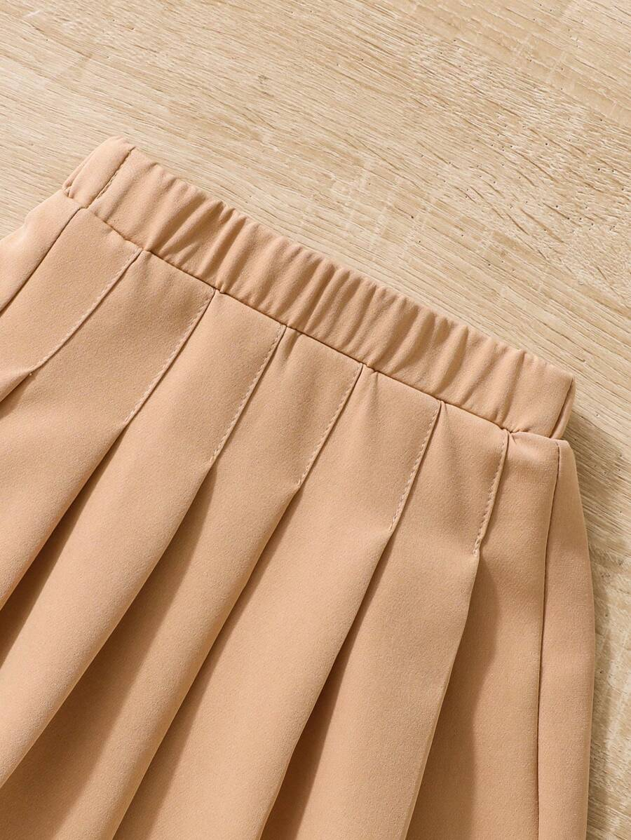 SHEIN Young Girl Pleated Mini Skirt, Fashion Dark Green, Suitable For Spring And Summer YG00049