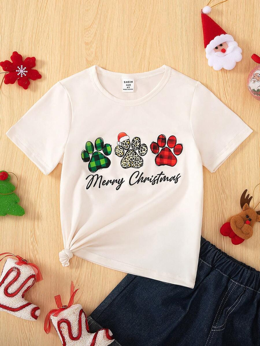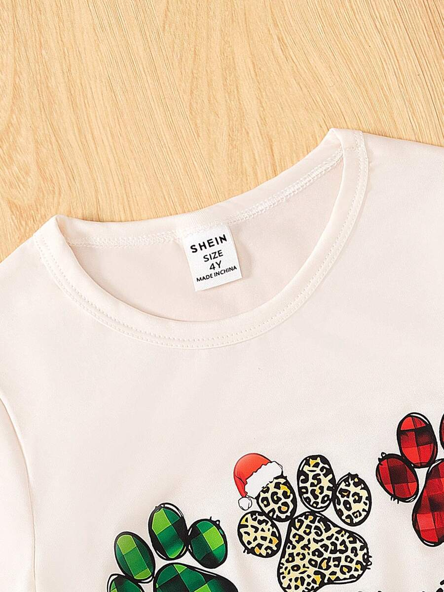 SHEIN Young Girl’ Simple Cute Animal Paw Print Graphic Tee, Casual Outdoor T-Shirt YG00022