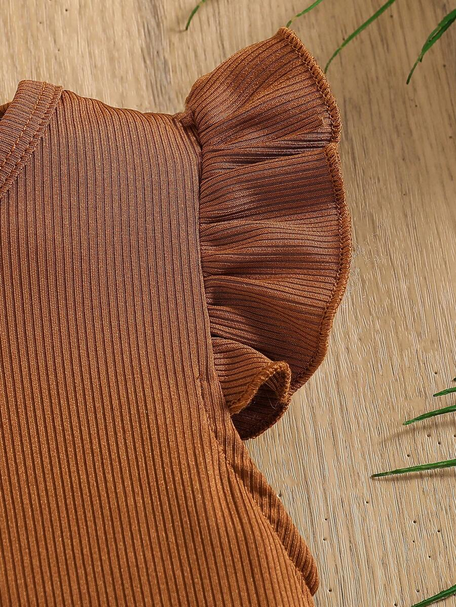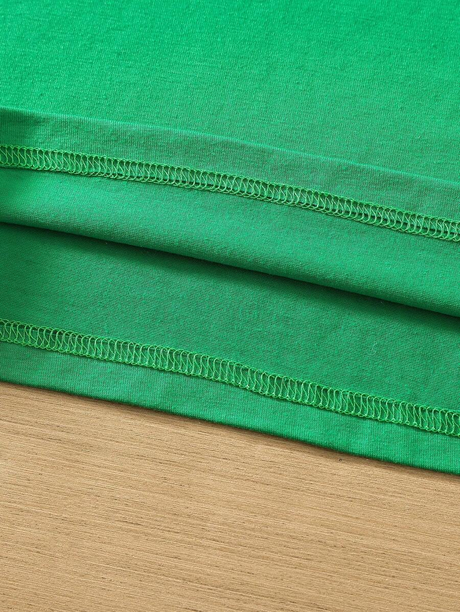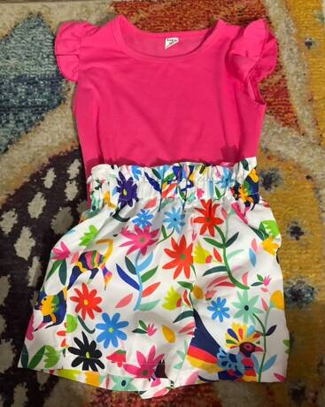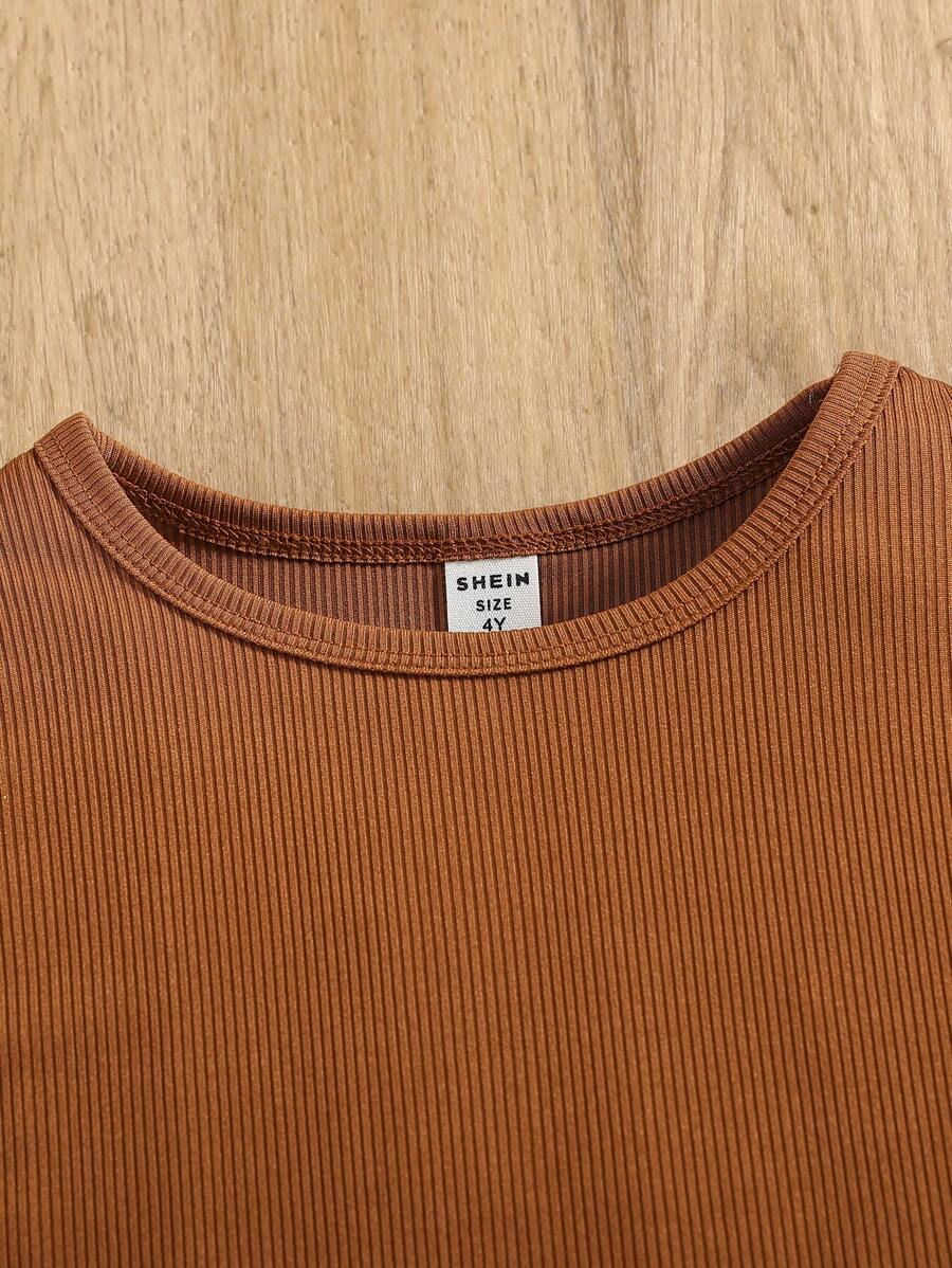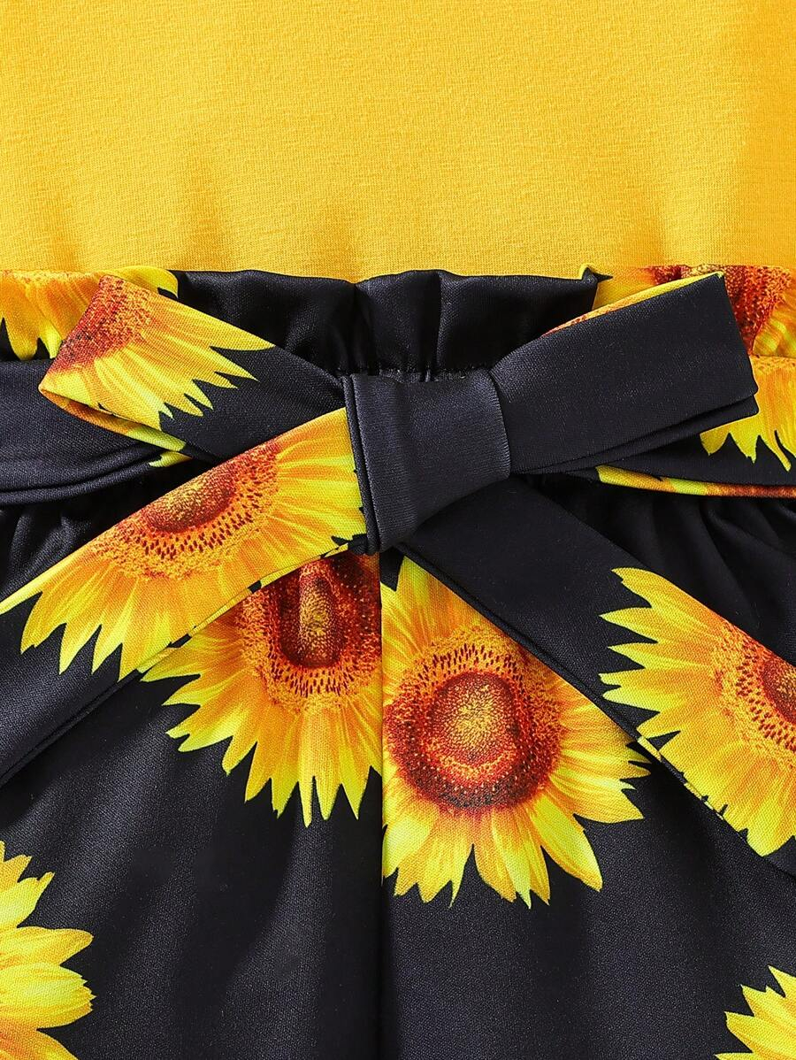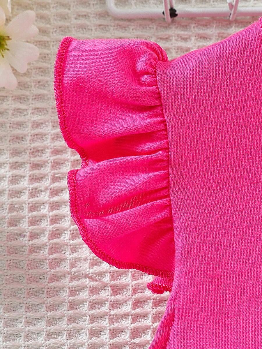 SHEIN Young Girl Summer Vacation Solid Color Cap Sleeve Top And Tropical Print Shorts Outfit YG00096