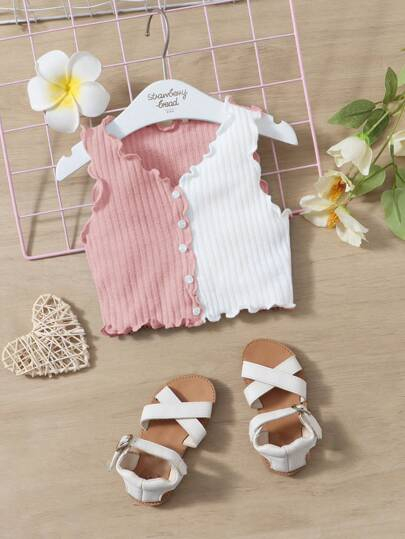 SHEIN Young Girl Two Tone Lettuce Trim Tank Top YG00075