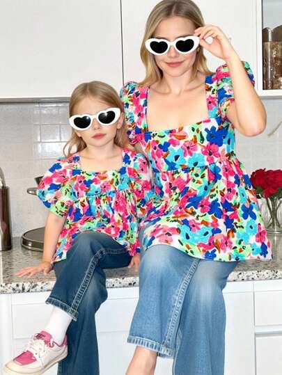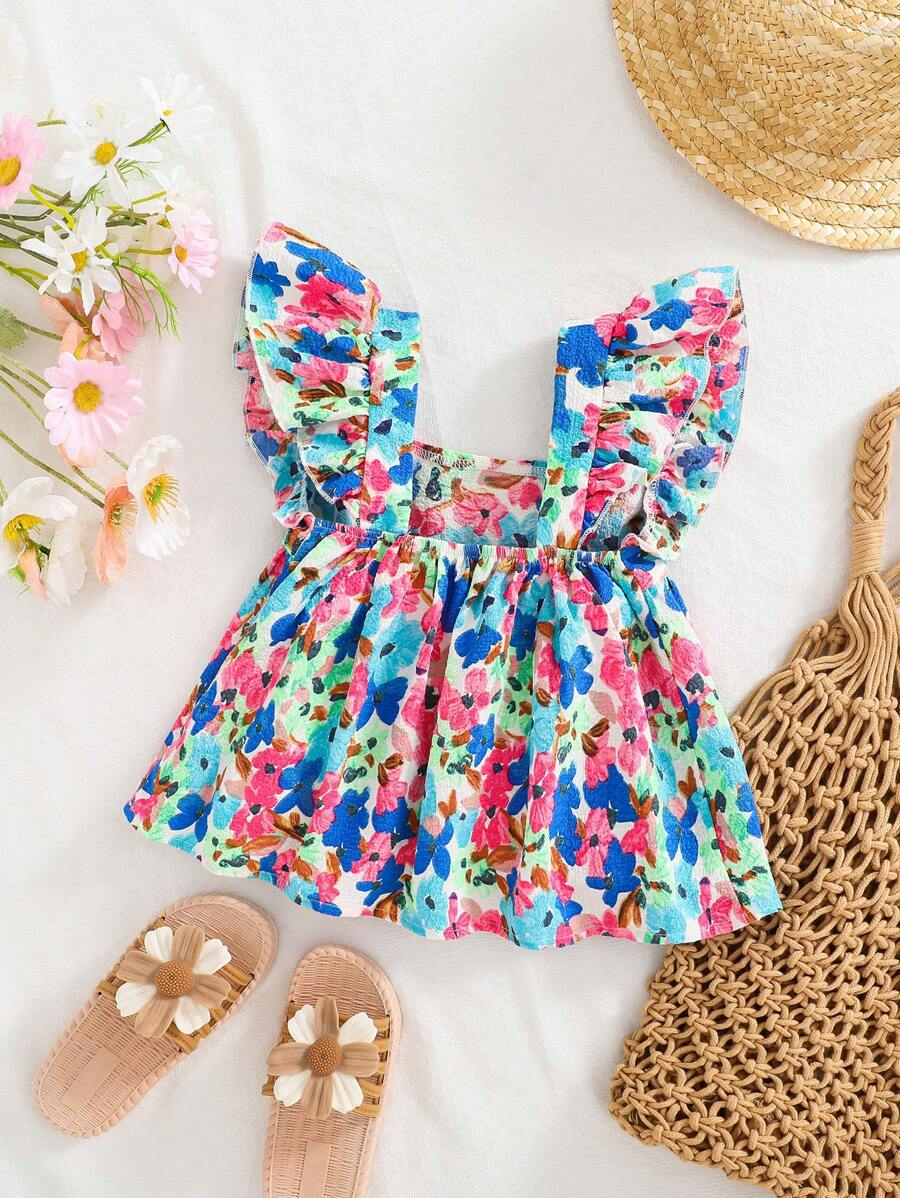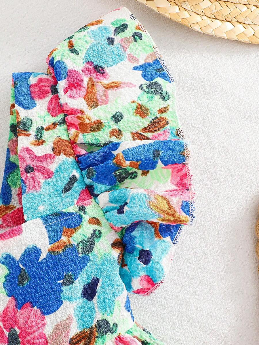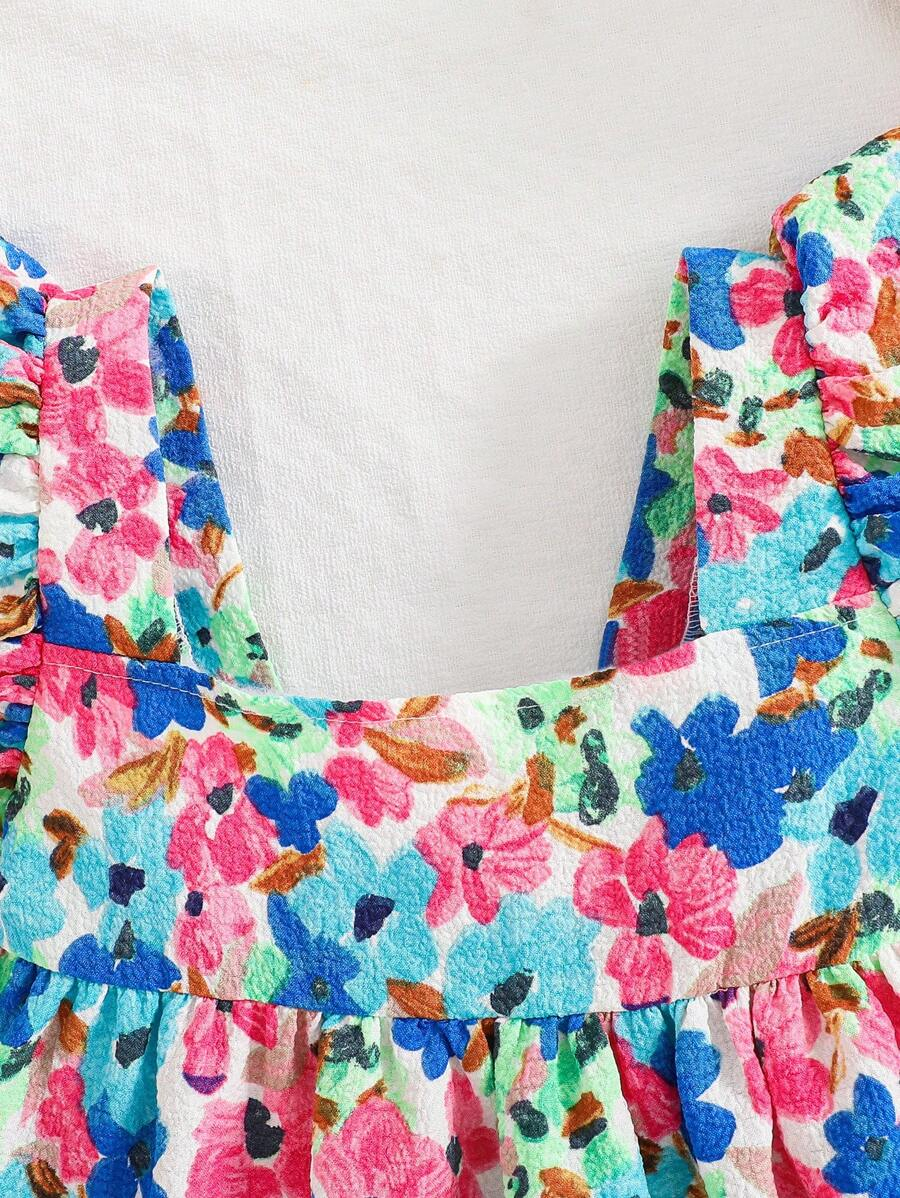SHEIN Young Girl Woven Square Collar Ruffle Trim Casual Blouse YG00053