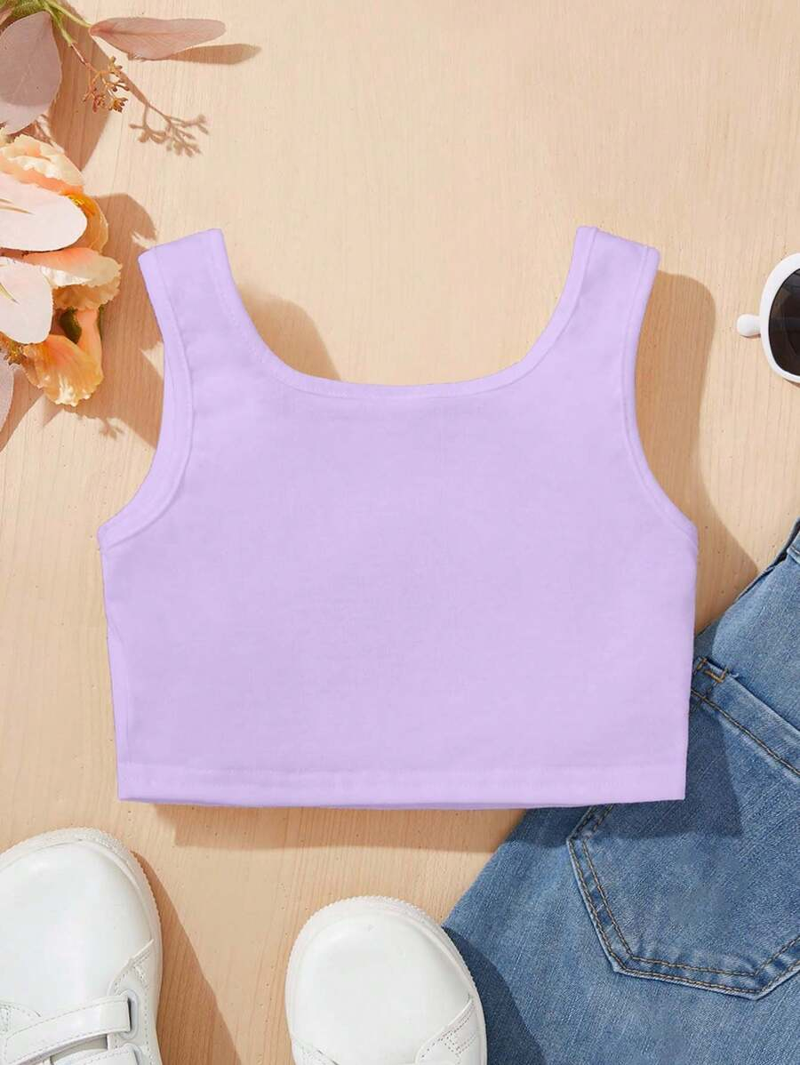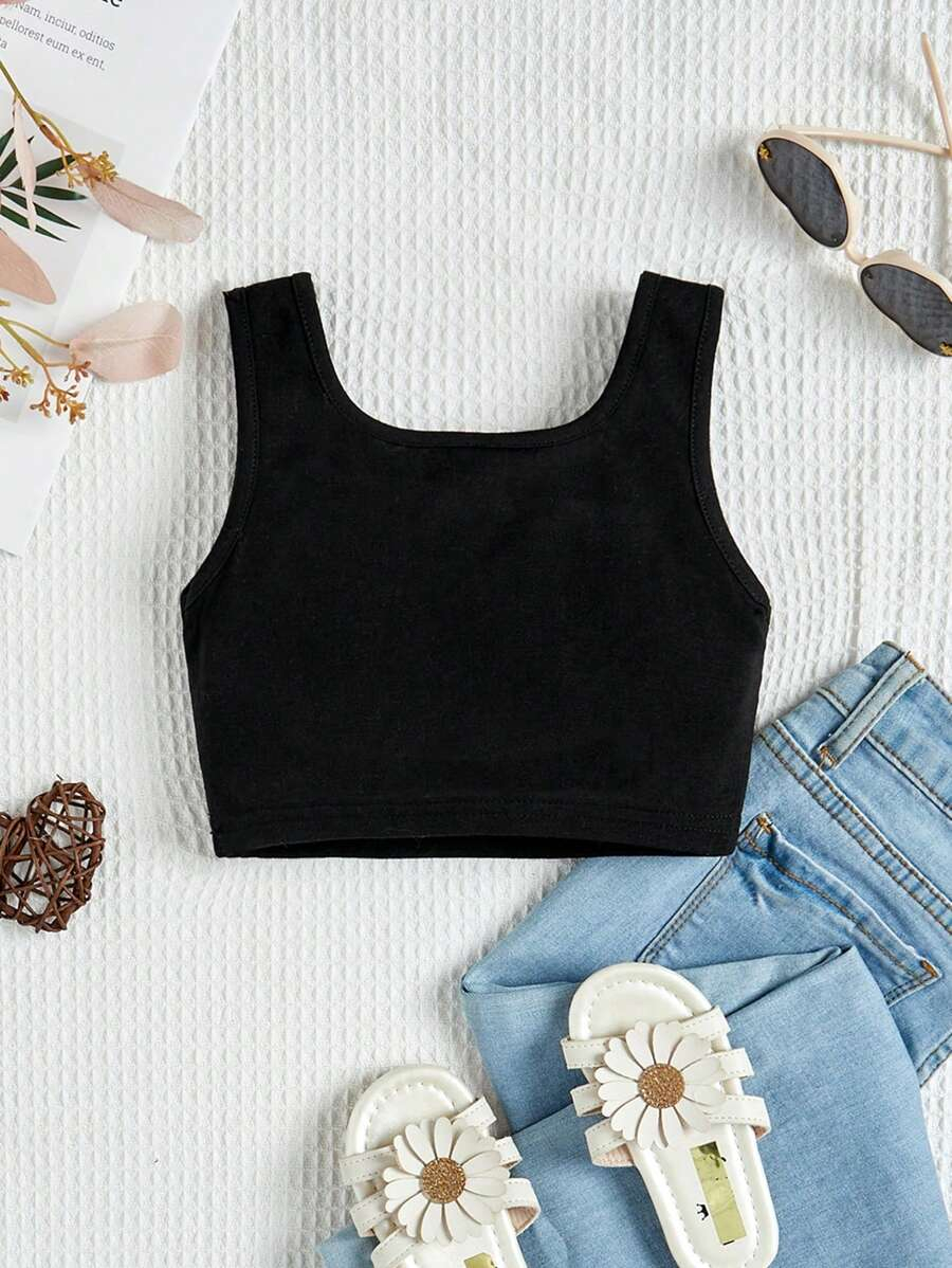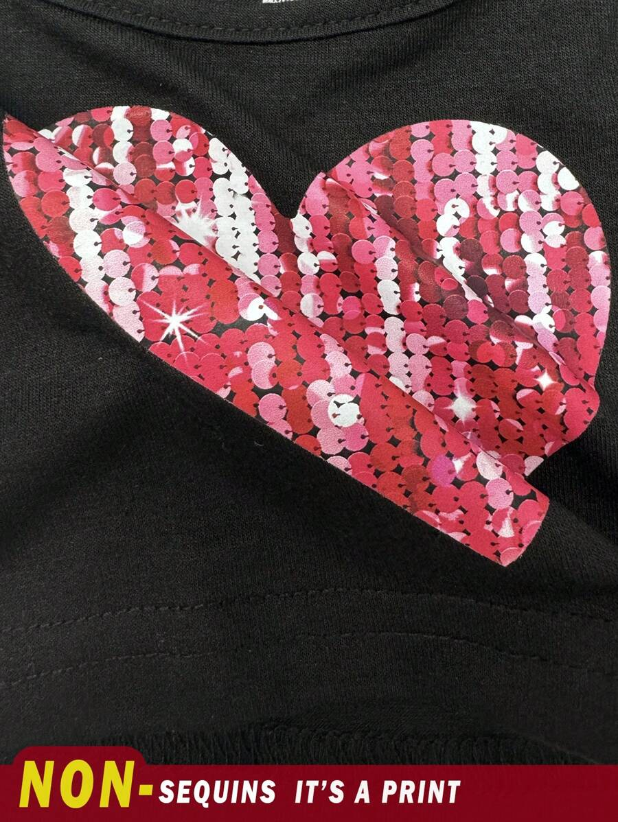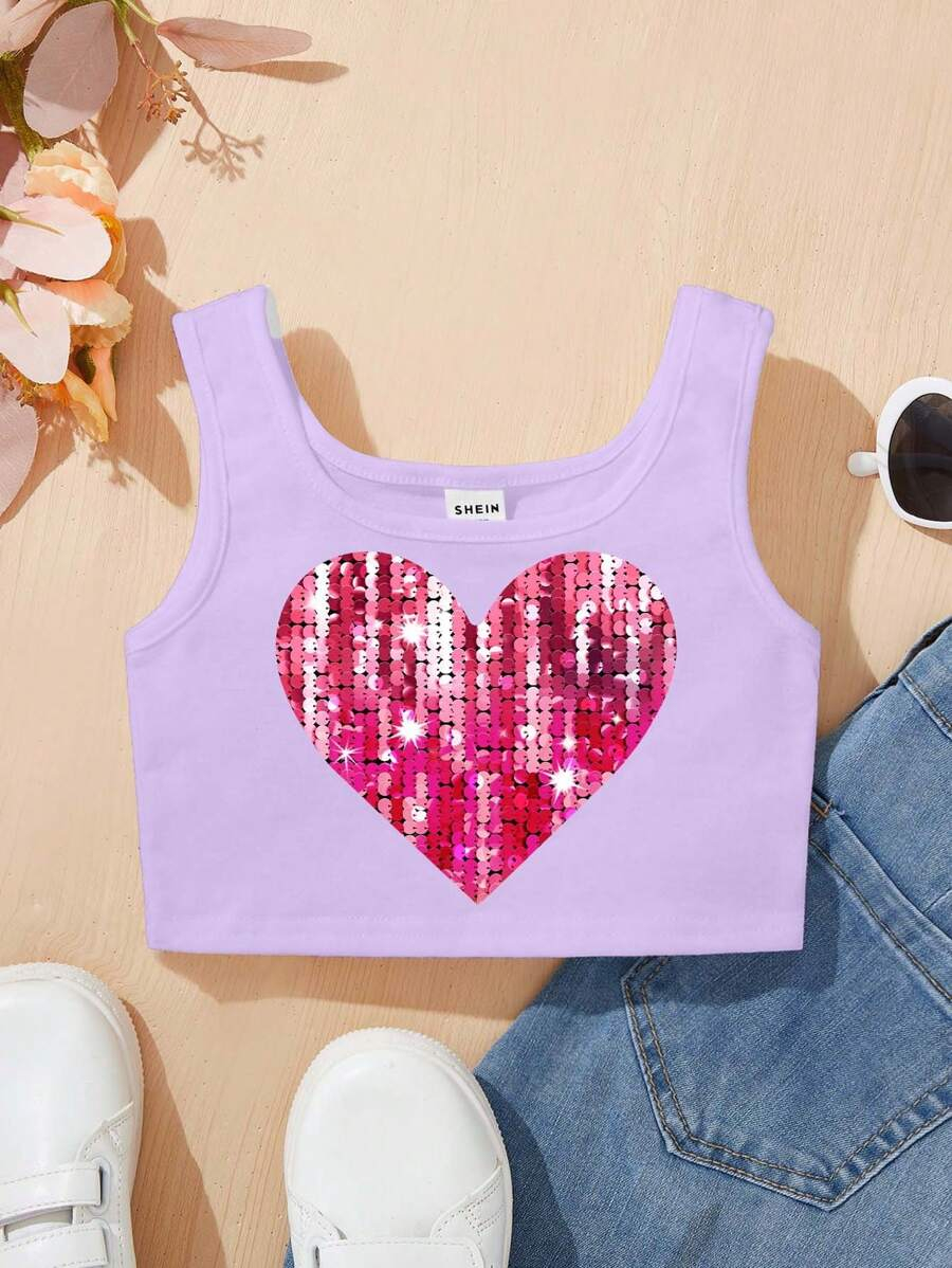 SHEIN Young Girl’s Casual Simple Heart Pattern Sleeveless Tank Top With Round Neckline, Suitable For Summer Teen Girls Crop Topteen Girl Crop Topsblack Crop Top Young Girl YG00029