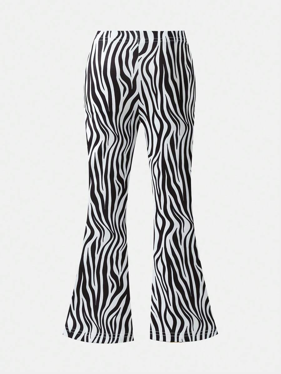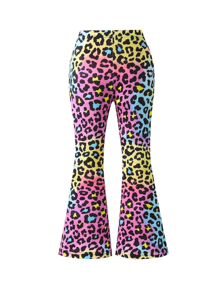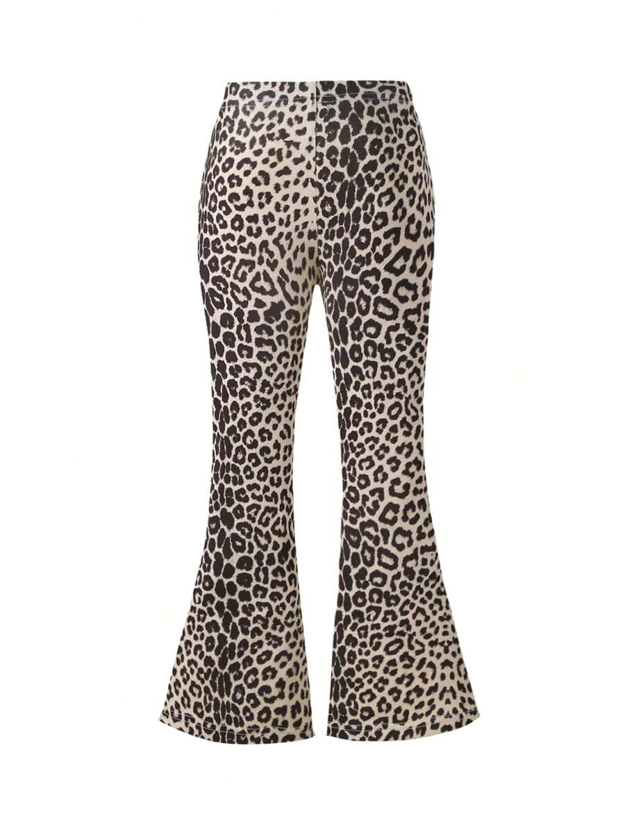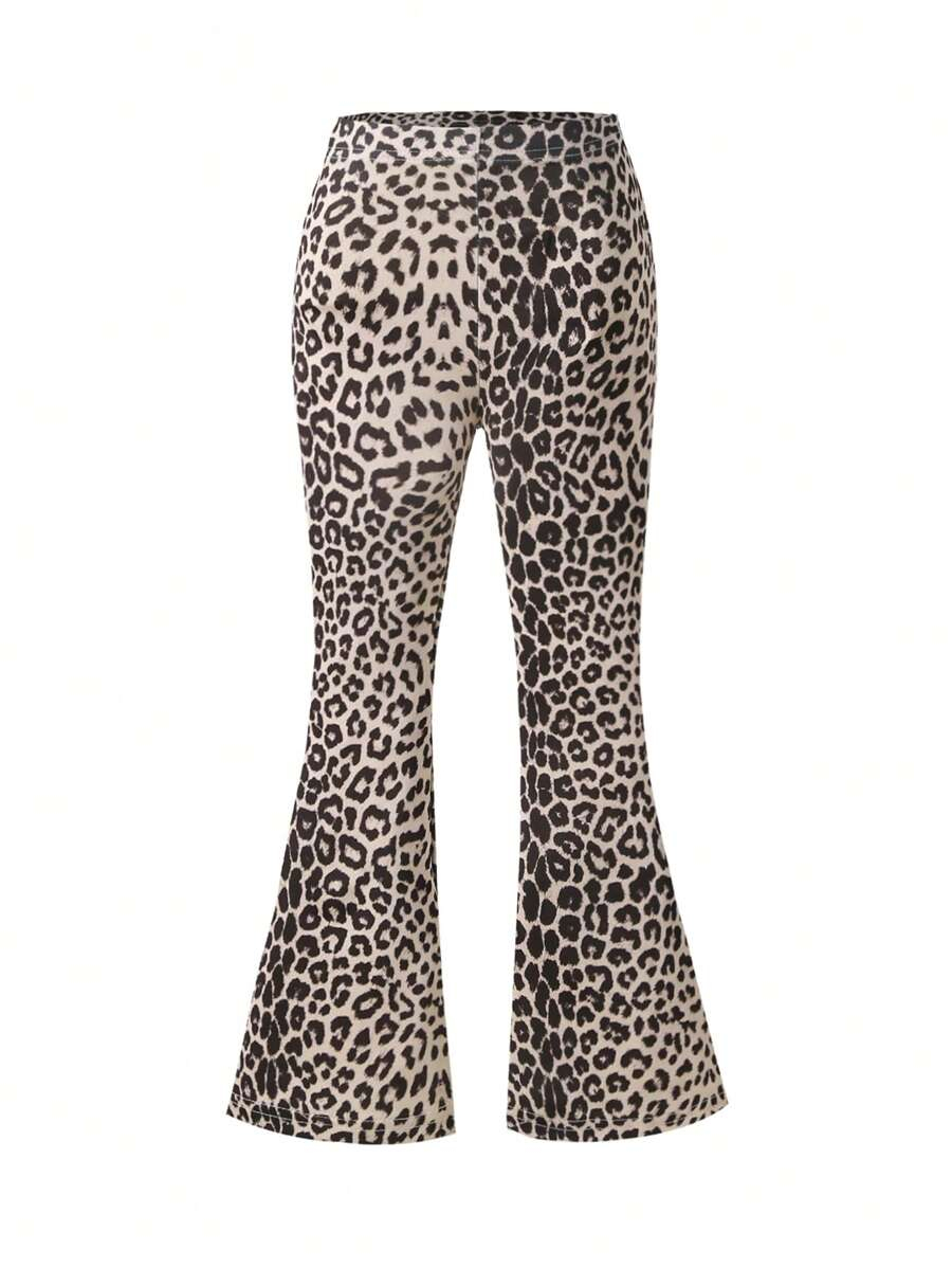 SHEIN Young Girls’ Fashion Animal Print Flare Leg Casual Long Pants, Suitable For Casual Outings In Spring, Summer And Autumn Young Girl Clothes Pants YG00023