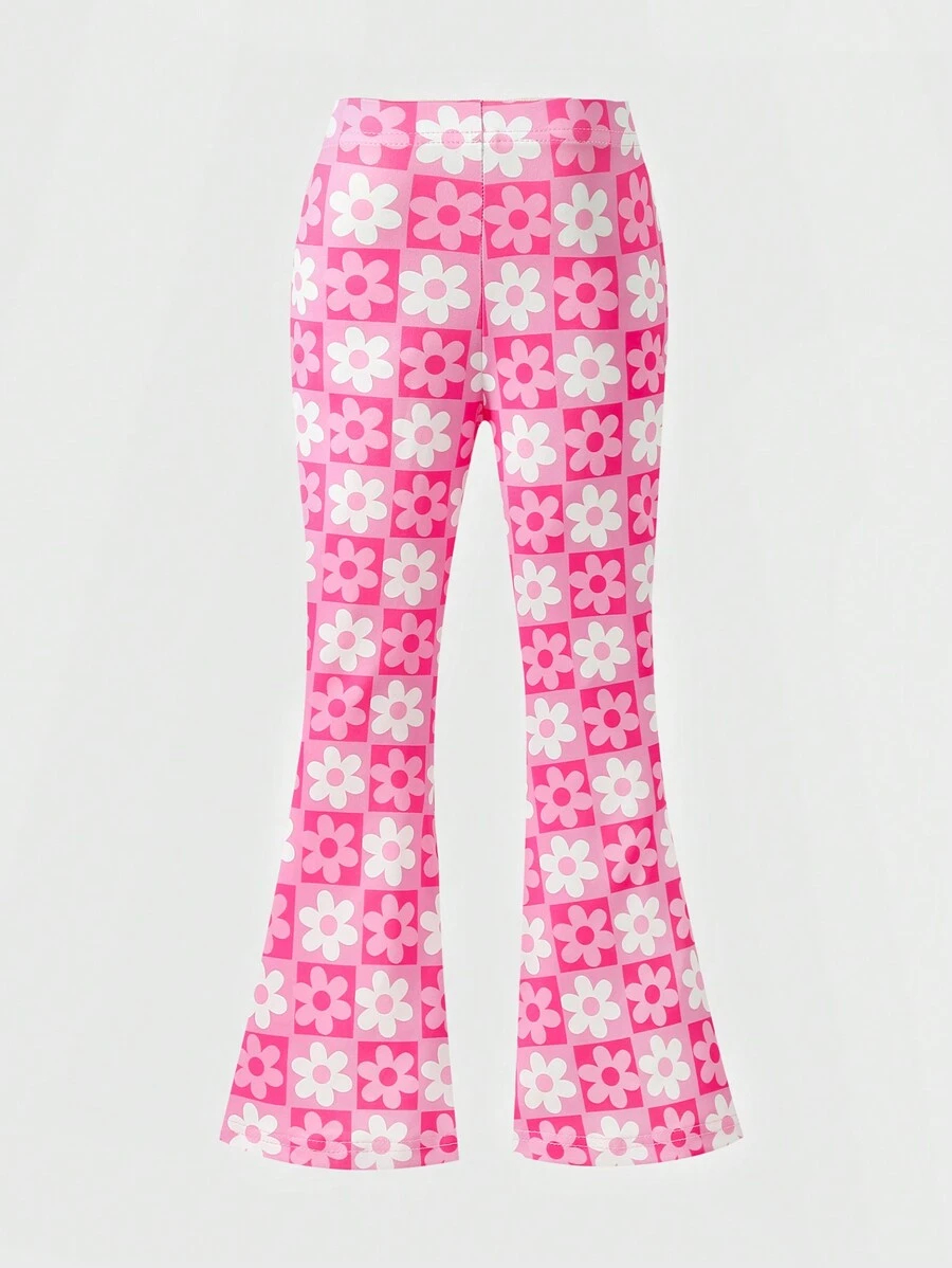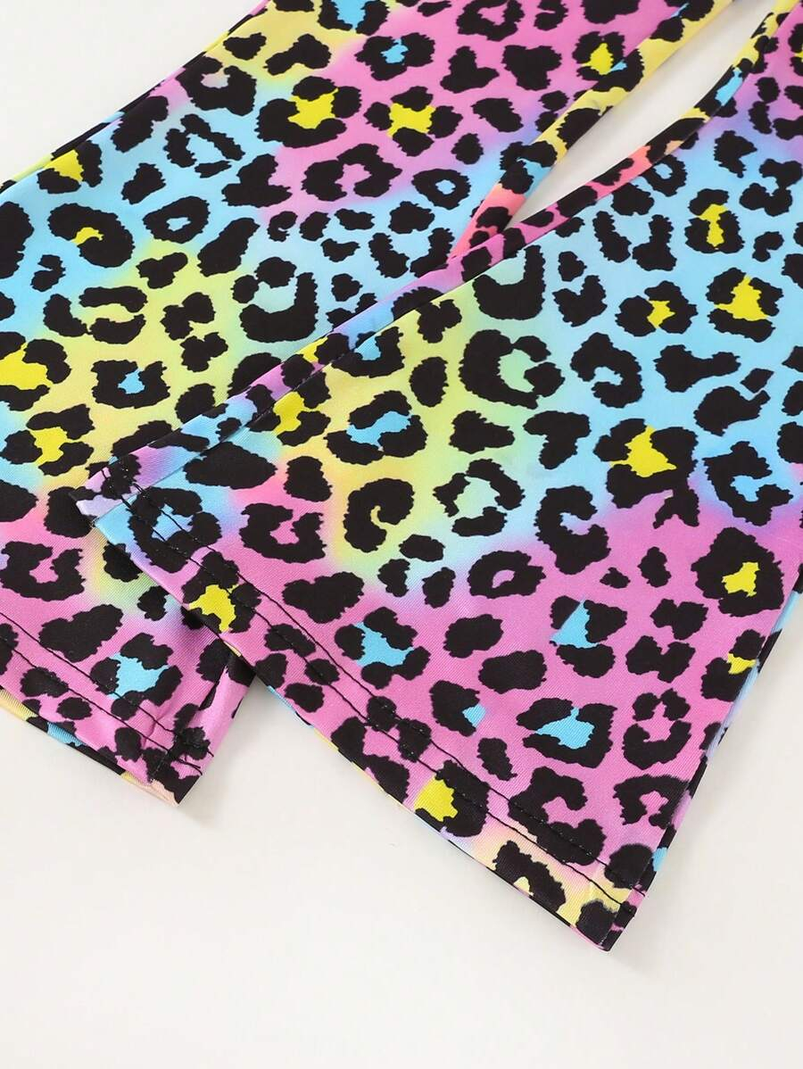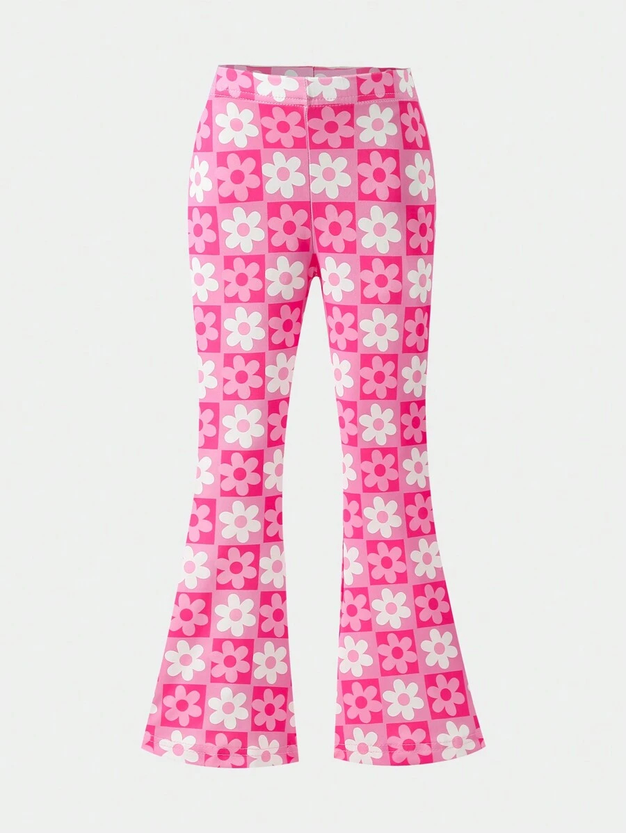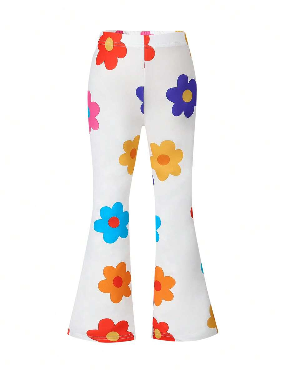 SHEIN Young Girls’ Fashion Animal Print Flare Leg Casual Long Pants, Suitable For Casual Outings In Spring, Summer And Autumn Young Girl Clothes Pants YG00023